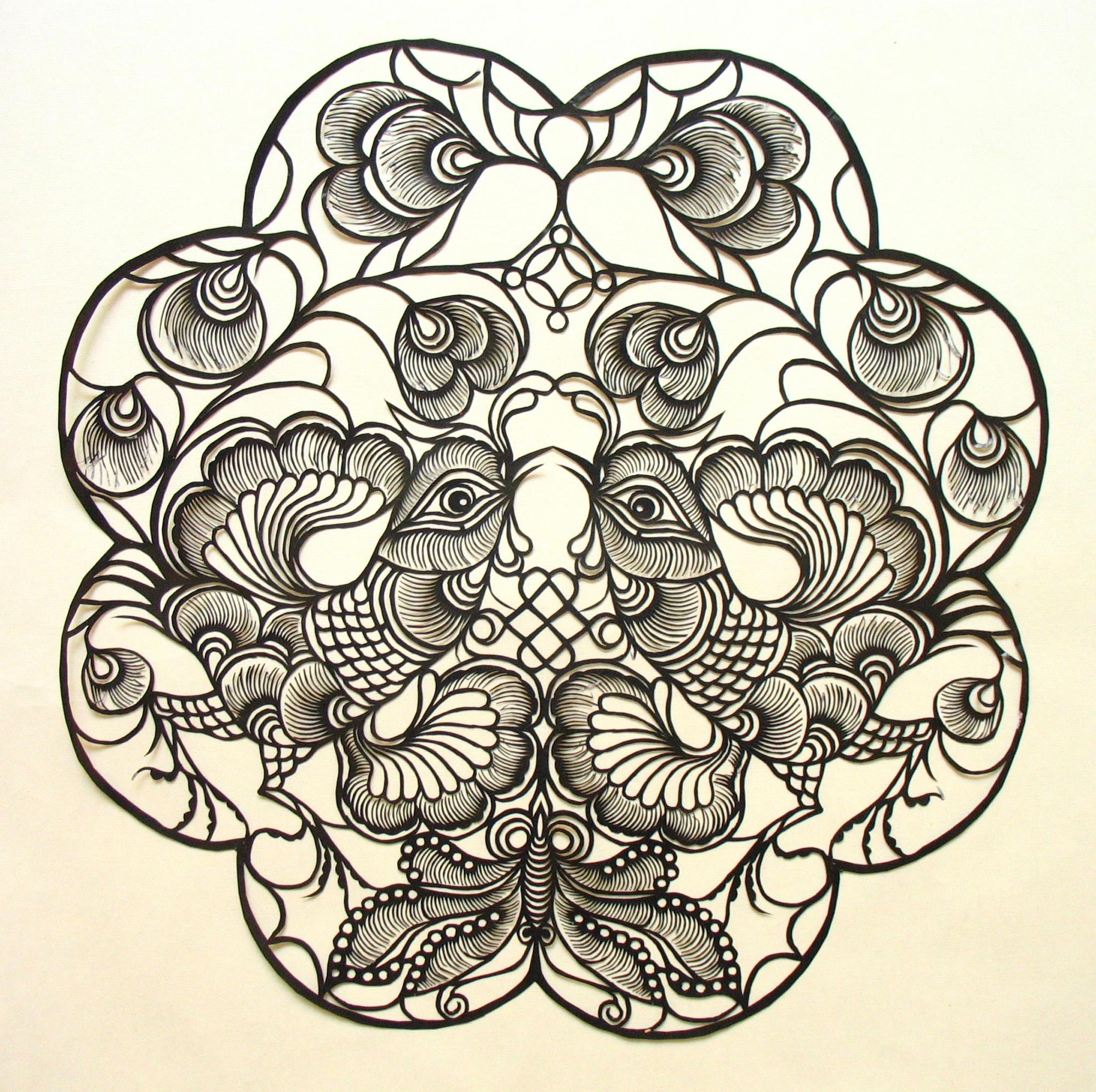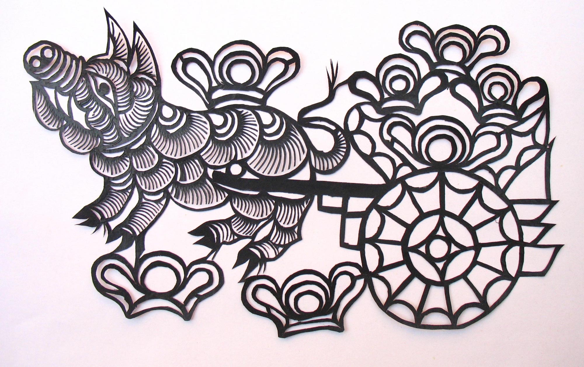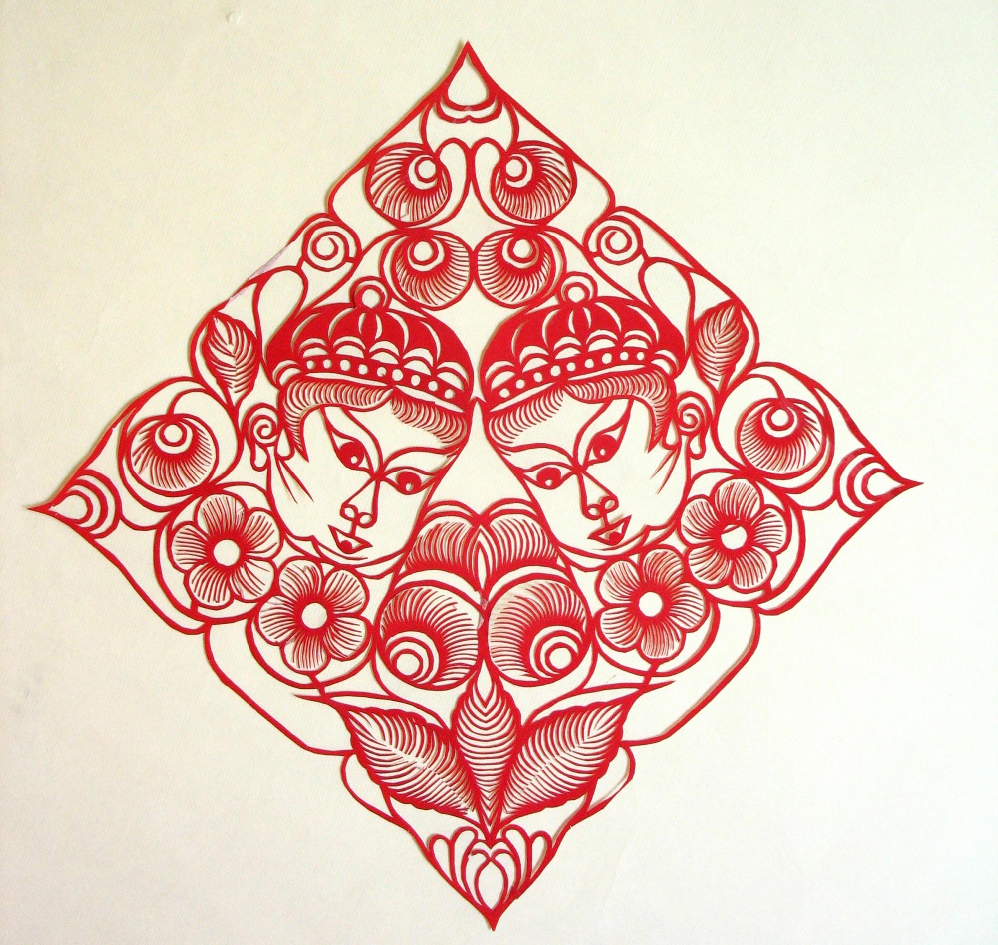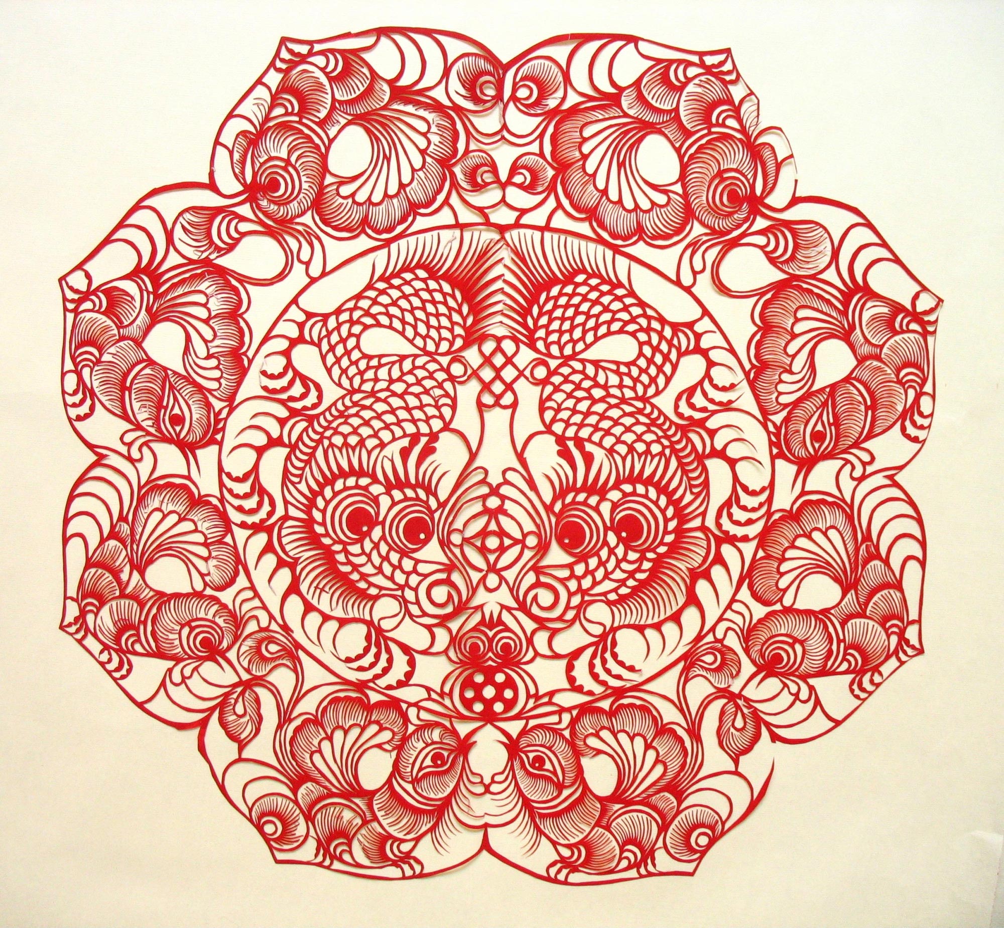 张艳娥的剪纸作品,作者根据自己的思维想象,先折好纸,把折好的纸周围用纸订固定好,再用铅笔勾出所要剪的图案大致轮廓,然后开剪。其艺术特征南北风格兼容,既有南方的细腻清丽、精致典雅,又有北方的古朴浑厚,改传统直线排纹为弧线排纹,作品玲珑剔透。其几十年创作的作品数以千计,代表作有《十二生肖》《二龙戏珠》《太阳鸟》《四大美女》《西游记人物》《戏剧人物》等。