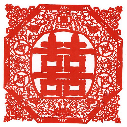 擅长创作题材:她以剪喜期窗花、礼花为主。构成元素虽多为花、乌、鱼、蝶,但变化形态多样,双喜图就能剪出数十种。