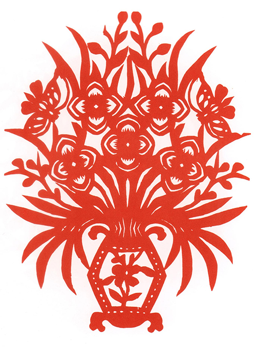 突出艺术特色:她的剪纸构图紧凑,布局匀称,洋溢着热烈的气氛。