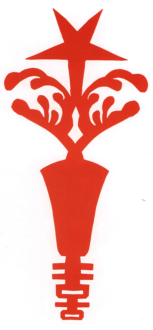 何四娭的剪纸处于一种原生态状况,特别擅长剪鸡剪鸟。她能抓住鸡的特点,看似极简单地几剪却将它们的神态表现出来。如有镂空,也是寥寥几剪,以少胜多,恰到好处。何四娭剪纸的手法极其粗犷、朴实、古拙。