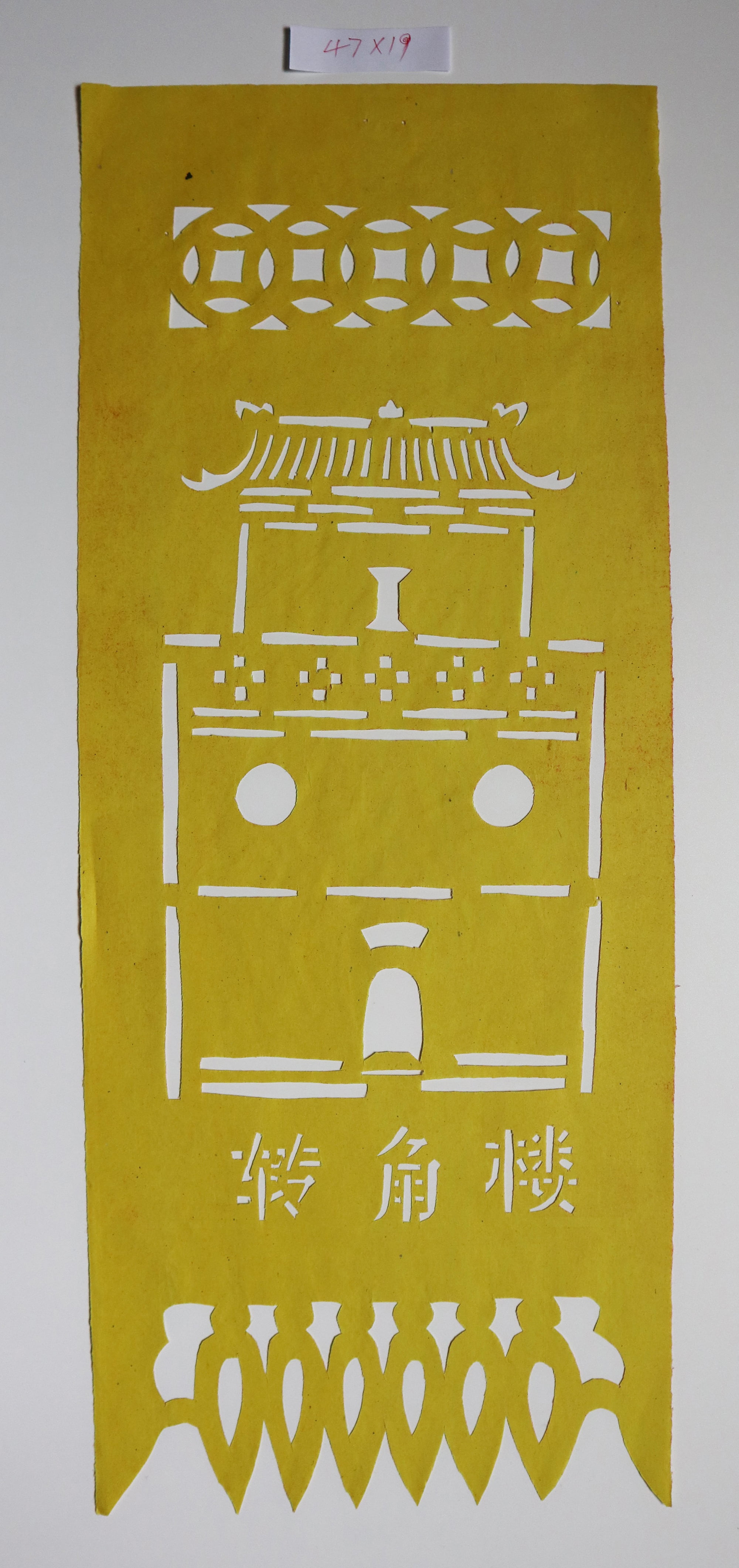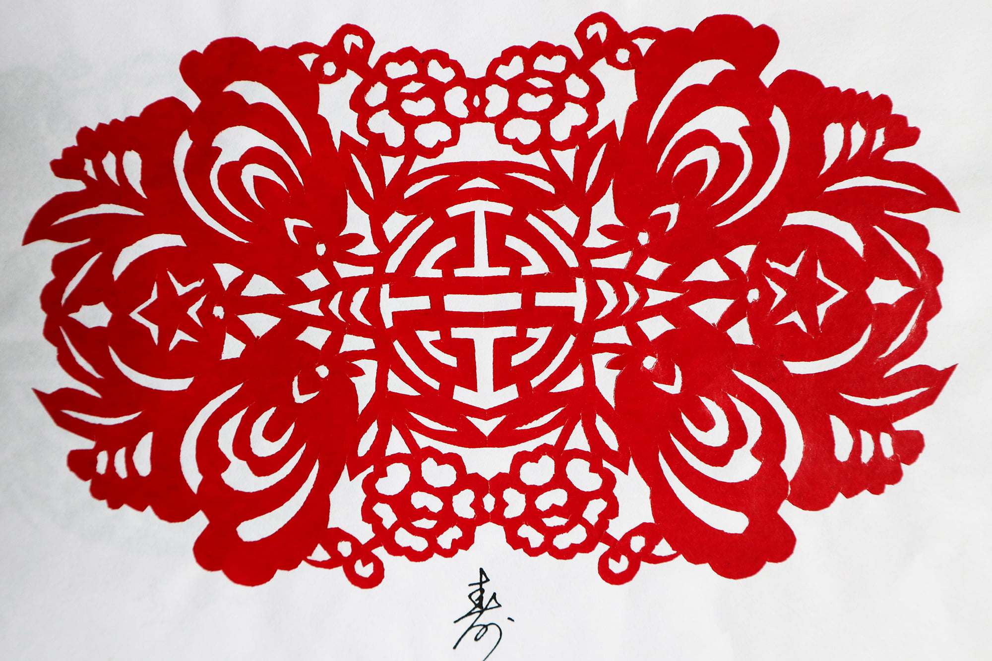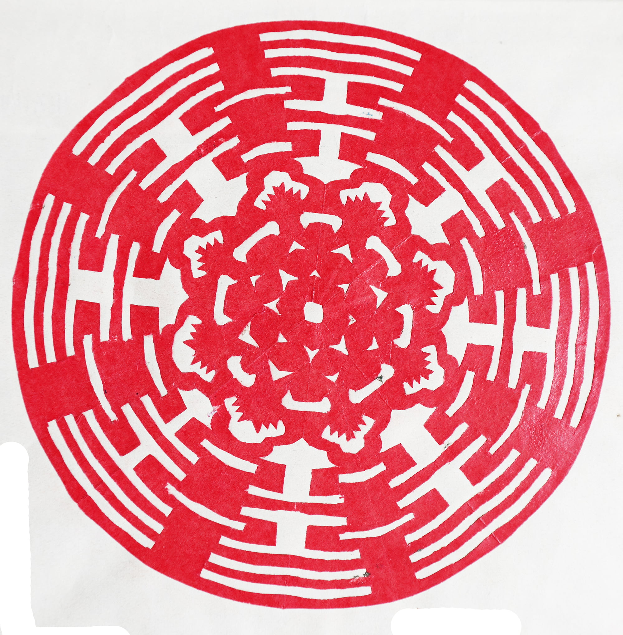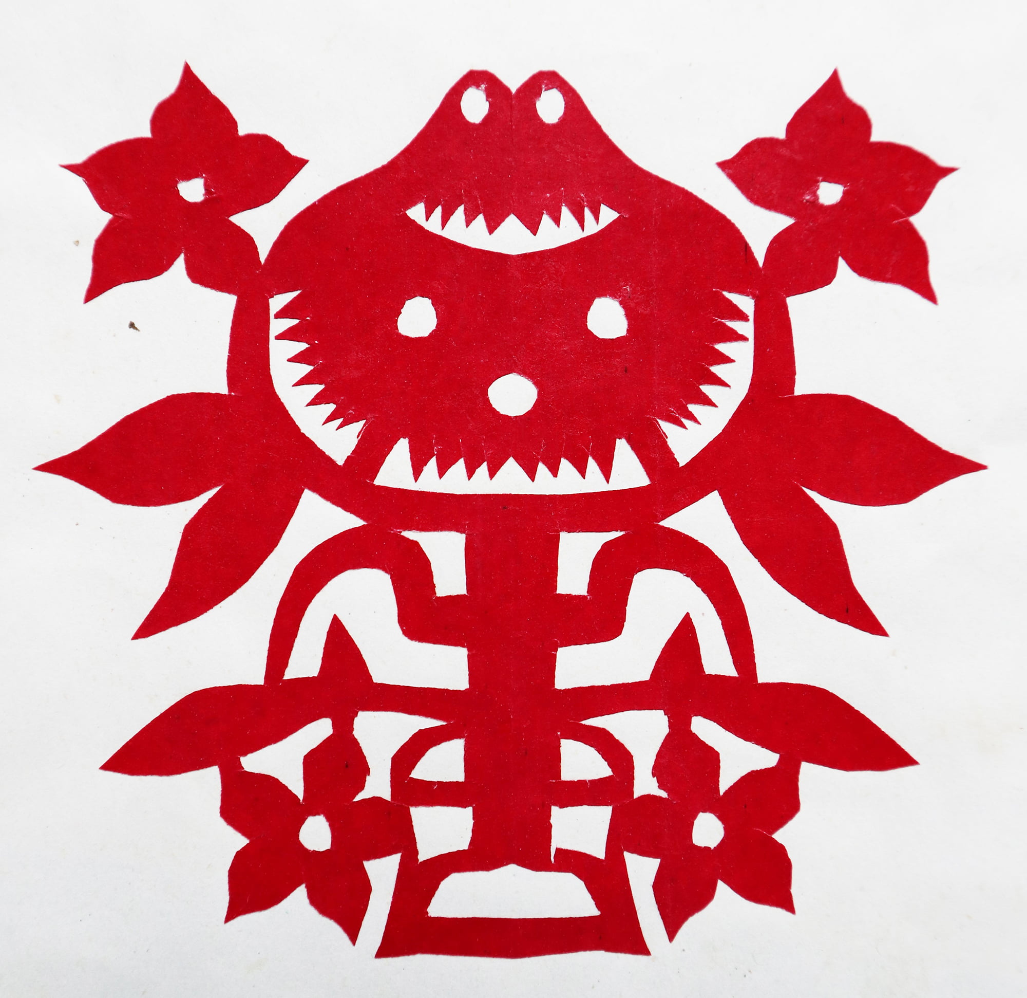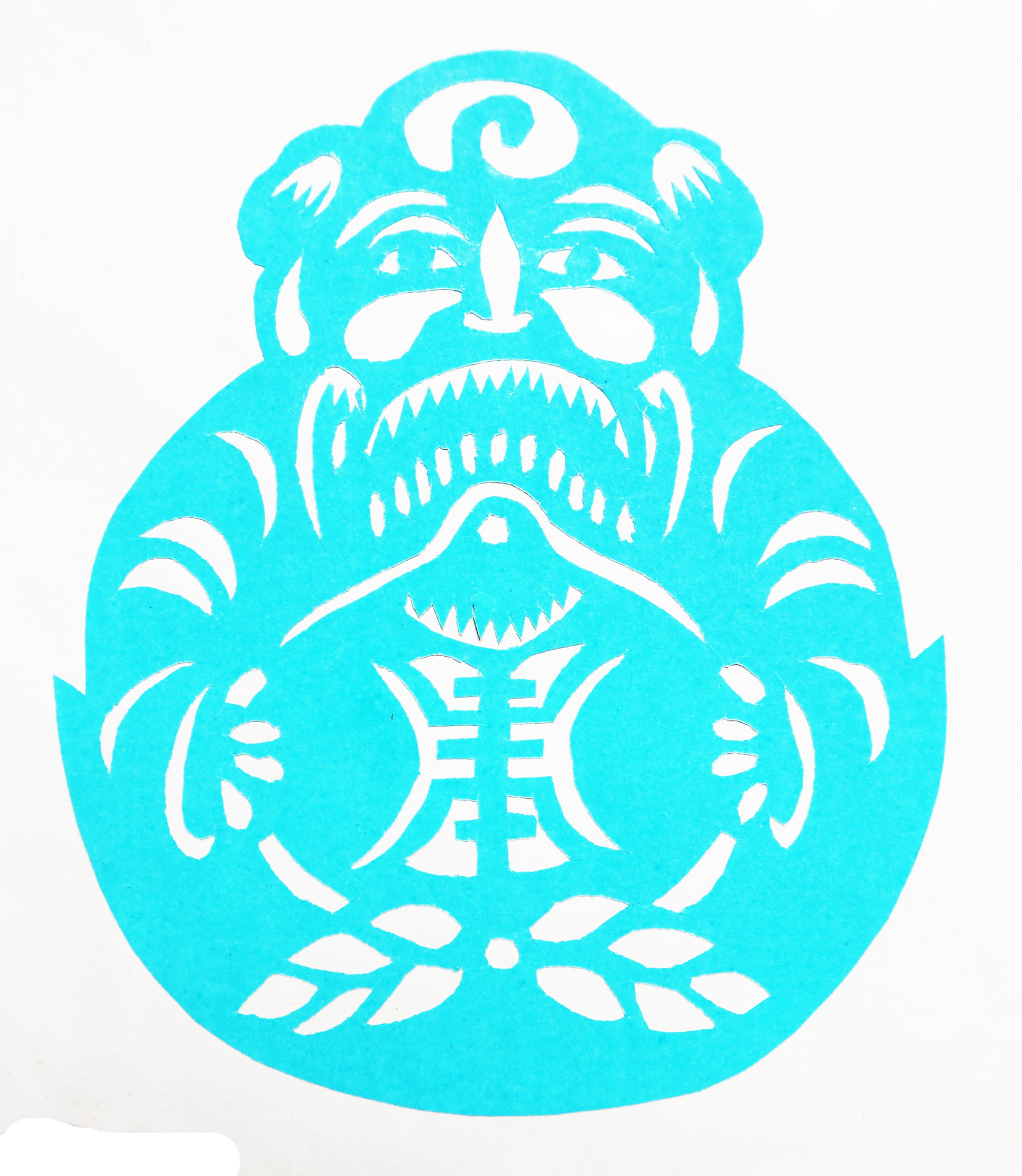 刘普强长期担任校长一职,他怕剪纸创作有不务正业之嫌,剪纸很少在外界展出。退休后时间充裕,他把剪纸作为自娱自乐的文化方式,经常帮村人剪喜花,过年为村人剪门笺。每到村上庙会期间他为村上庙会剪神幡,五色旗、门笺等。