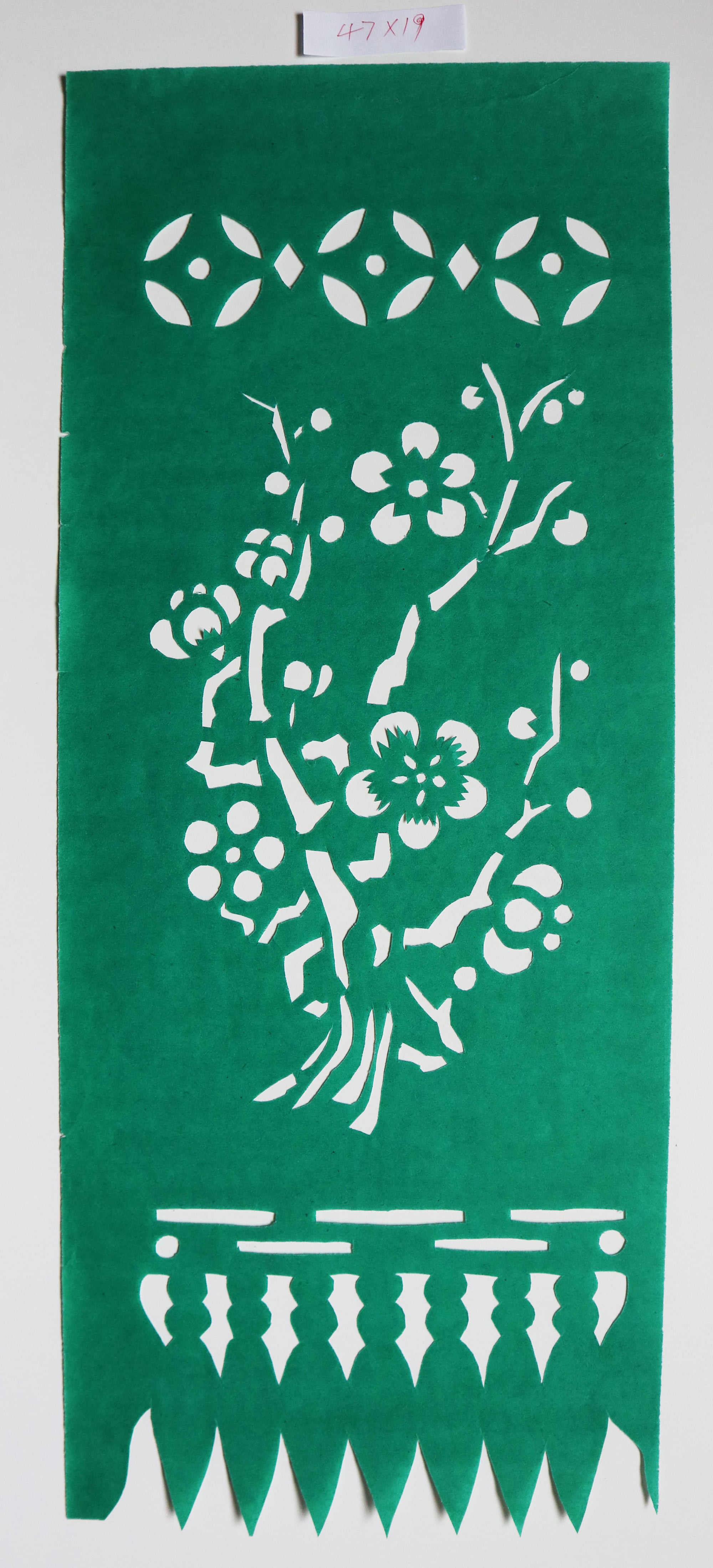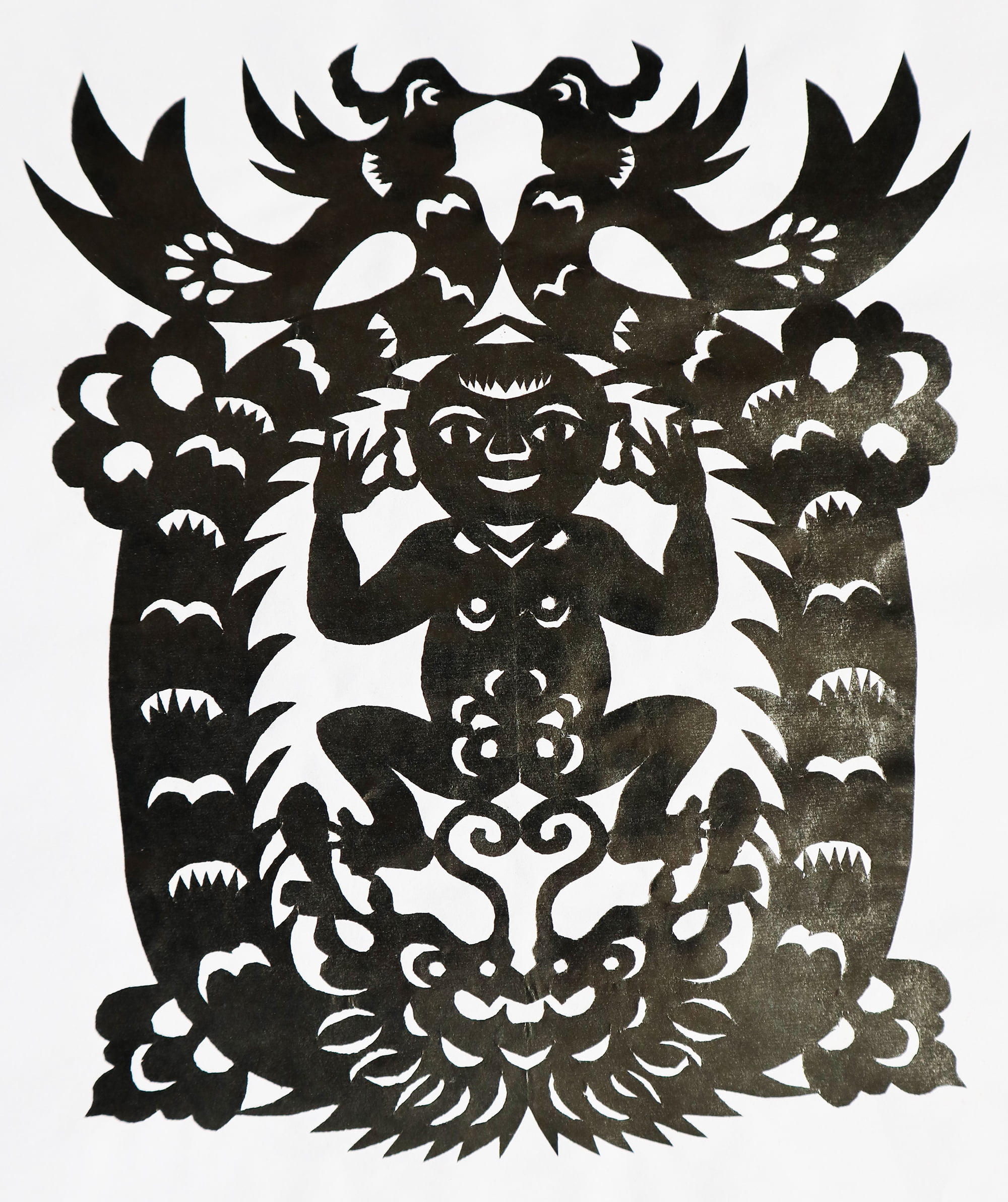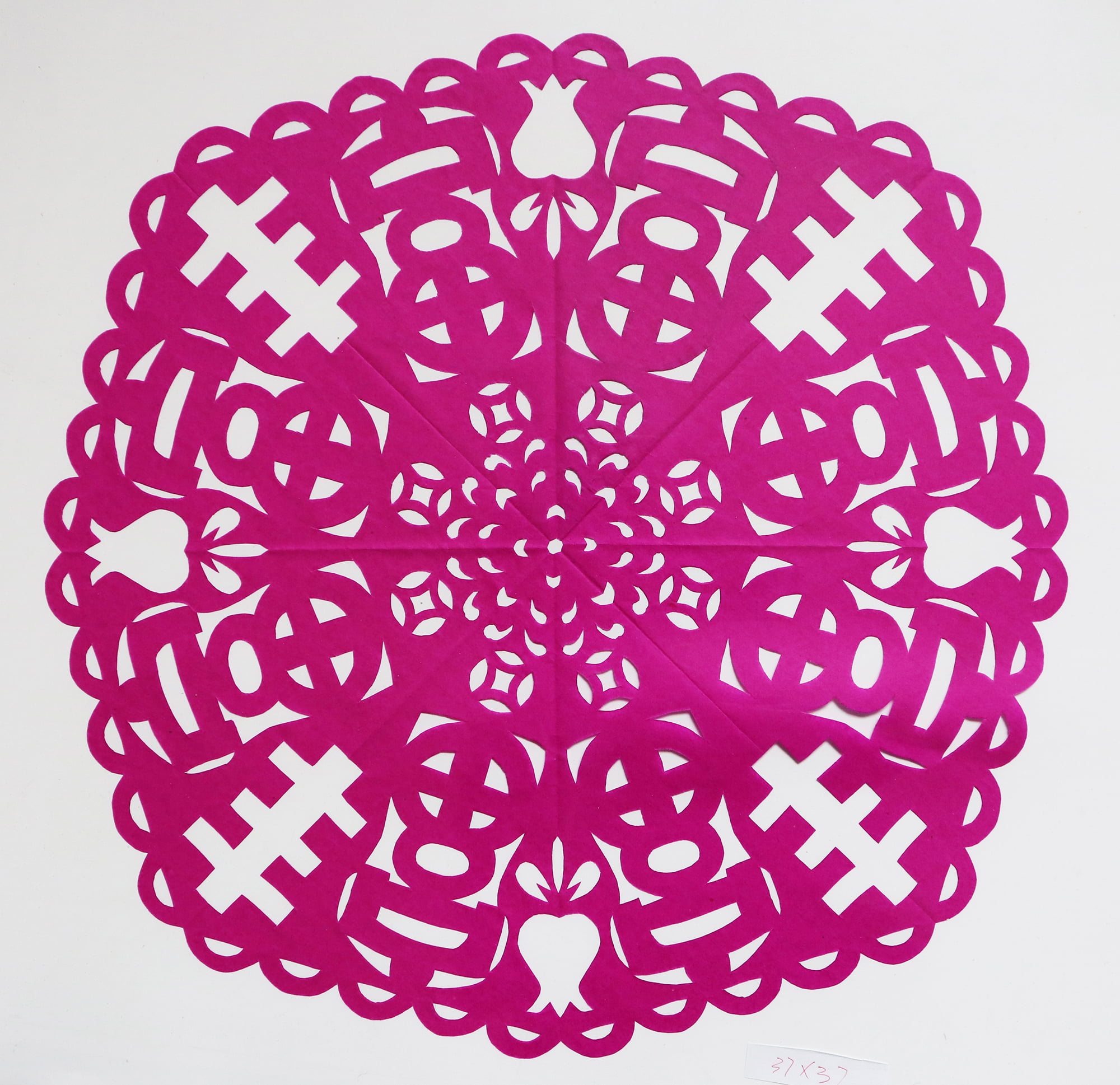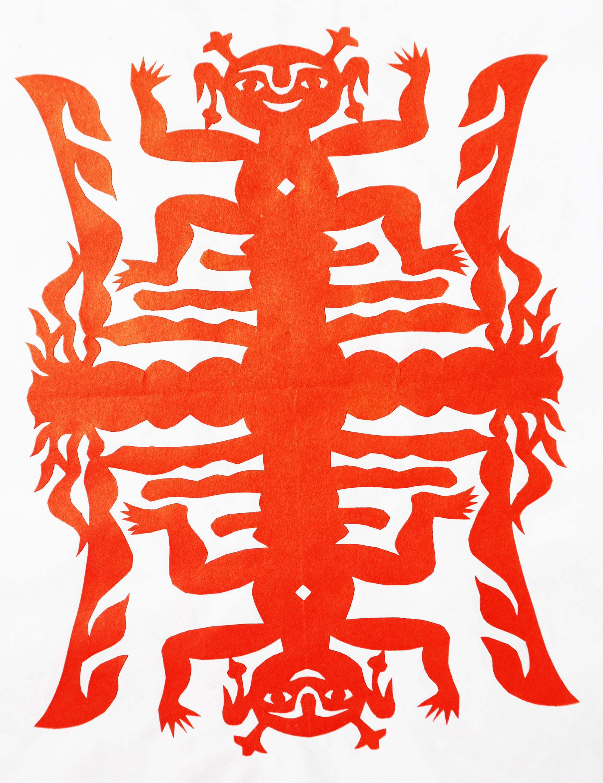 刘普强长期担任校长一职,他怕剪纸创作有不务正业之嫌,剪纸很少在外界展出。退休后时间充裕,他把剪纸作为自娱自乐的文化方式,经常帮村人剪喜花,过年为村人剪门笺。每到村上庙会期间他为村上庙会剪神幡,五色旗、门笺等。