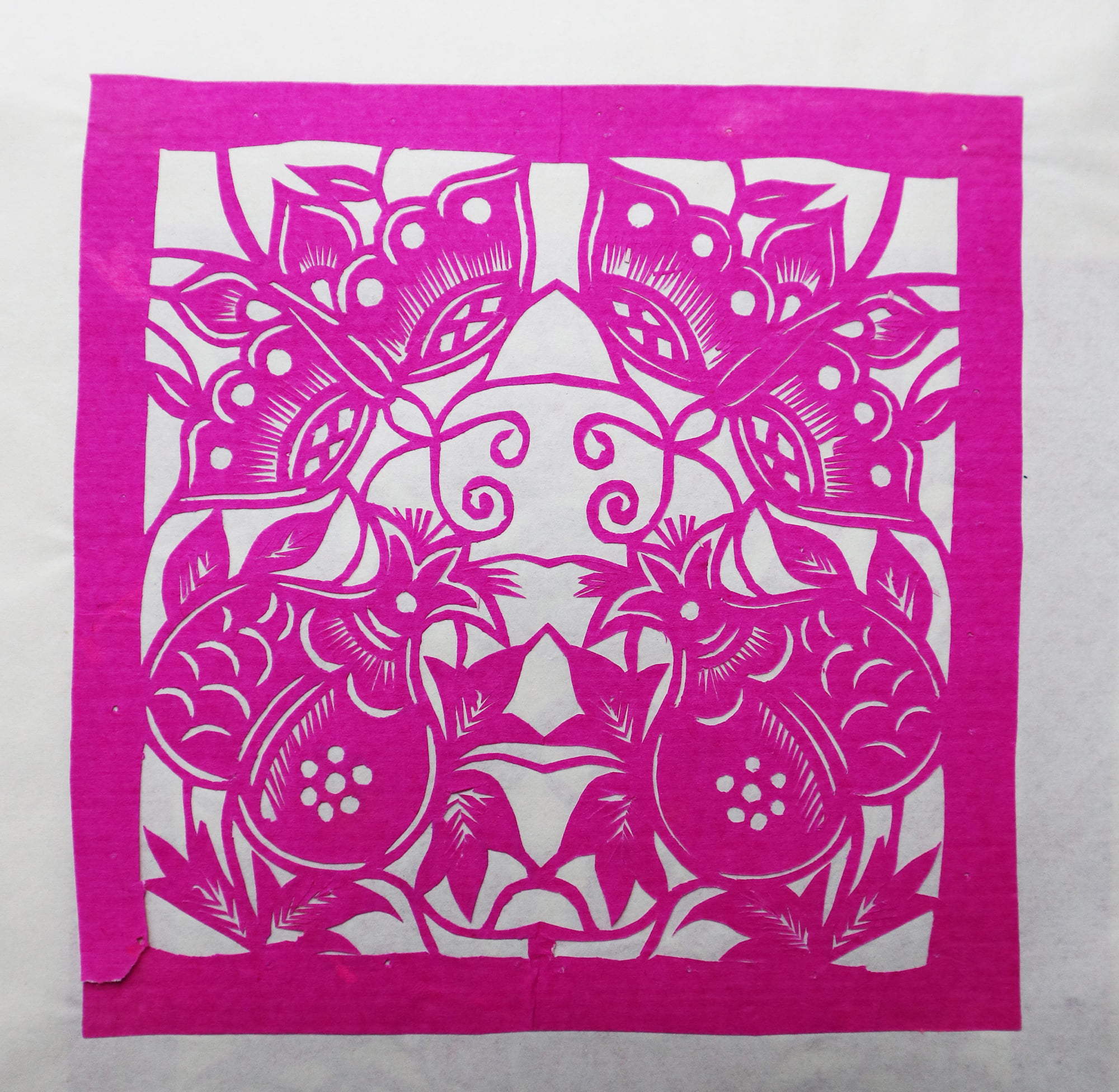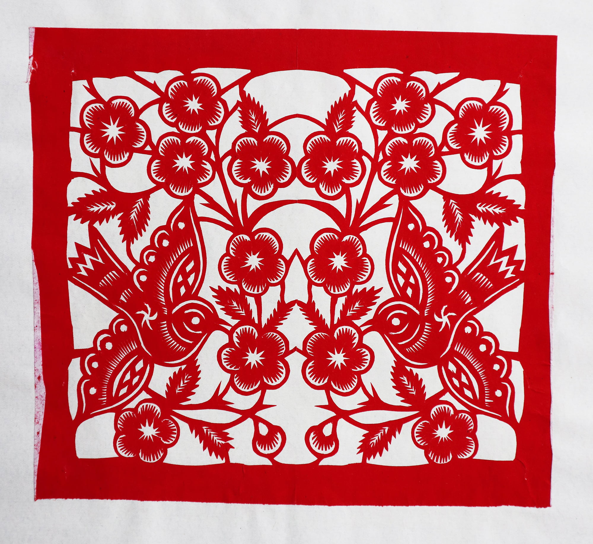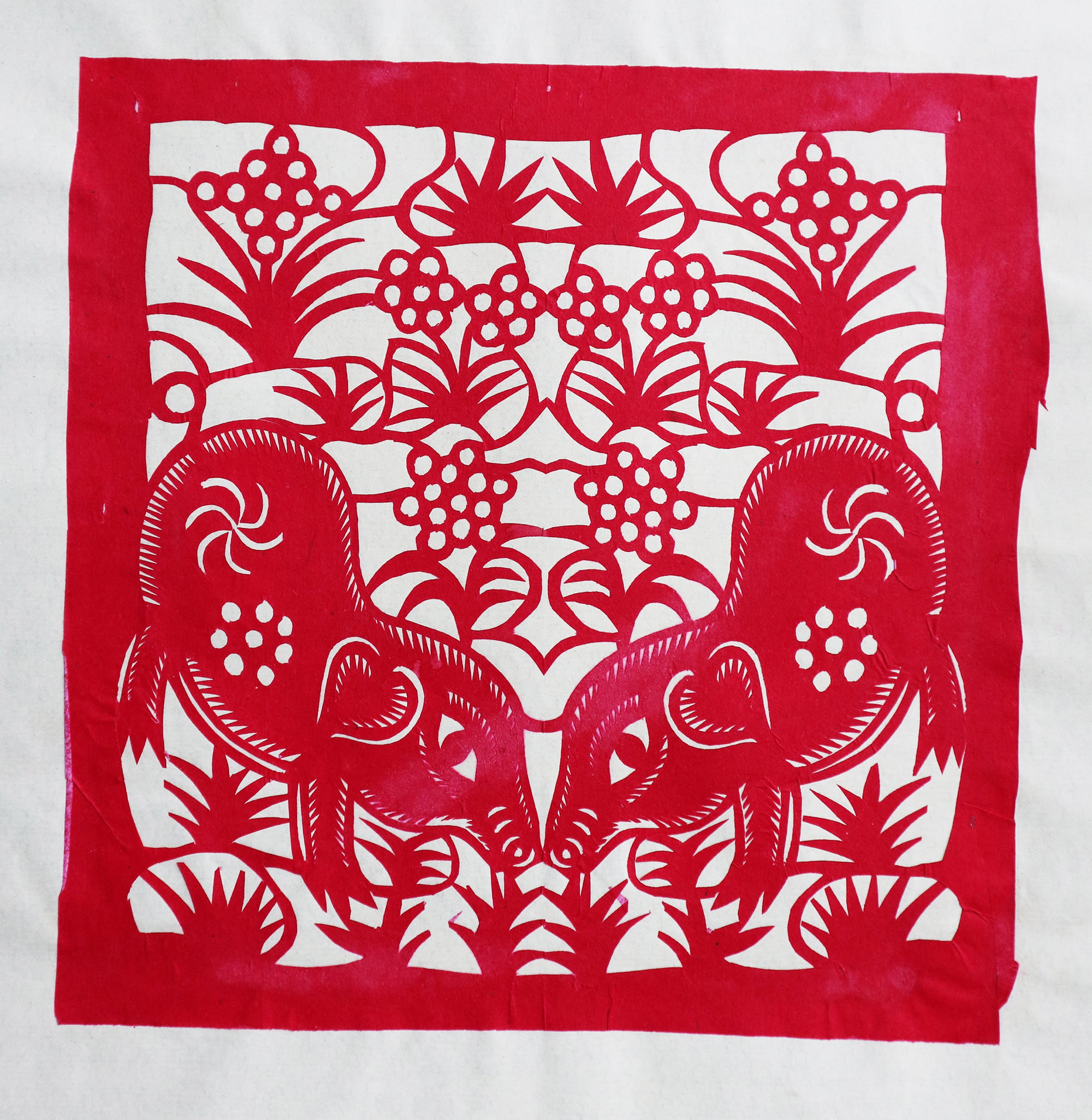 造型秀丽明快,生动传神,剪出的锯齿纹齐刷刷的工整好看,剪出的花草线条圆润流畅,糊的花窗布局新颖好看,色彩搭配艳丽和谐。