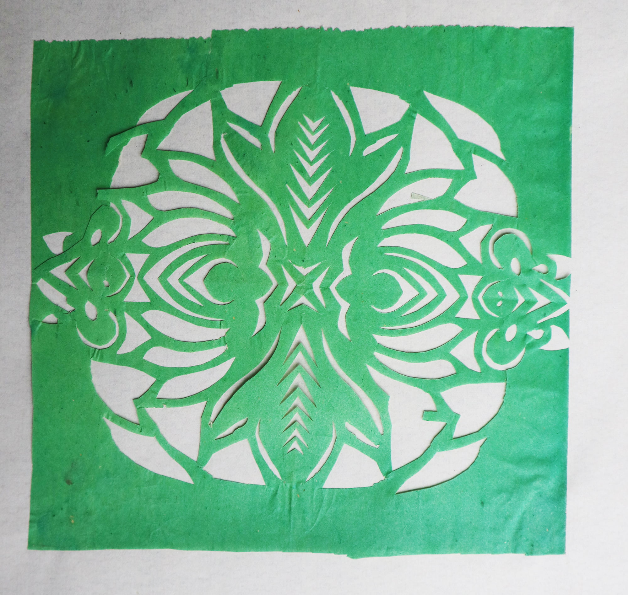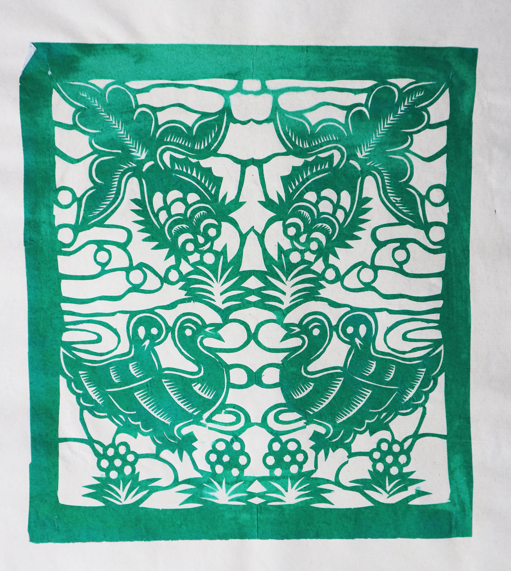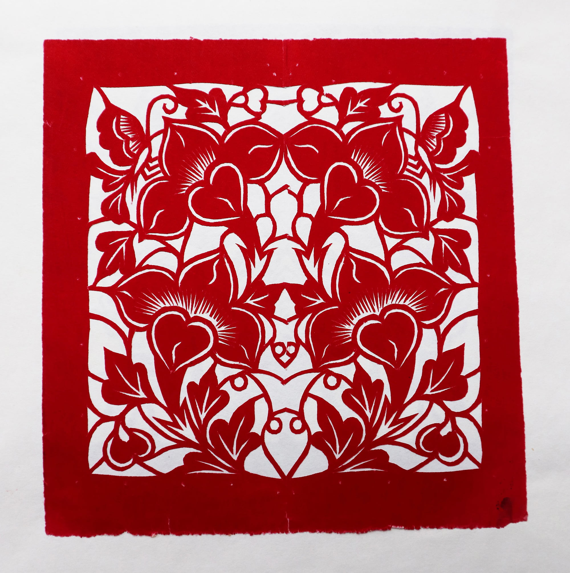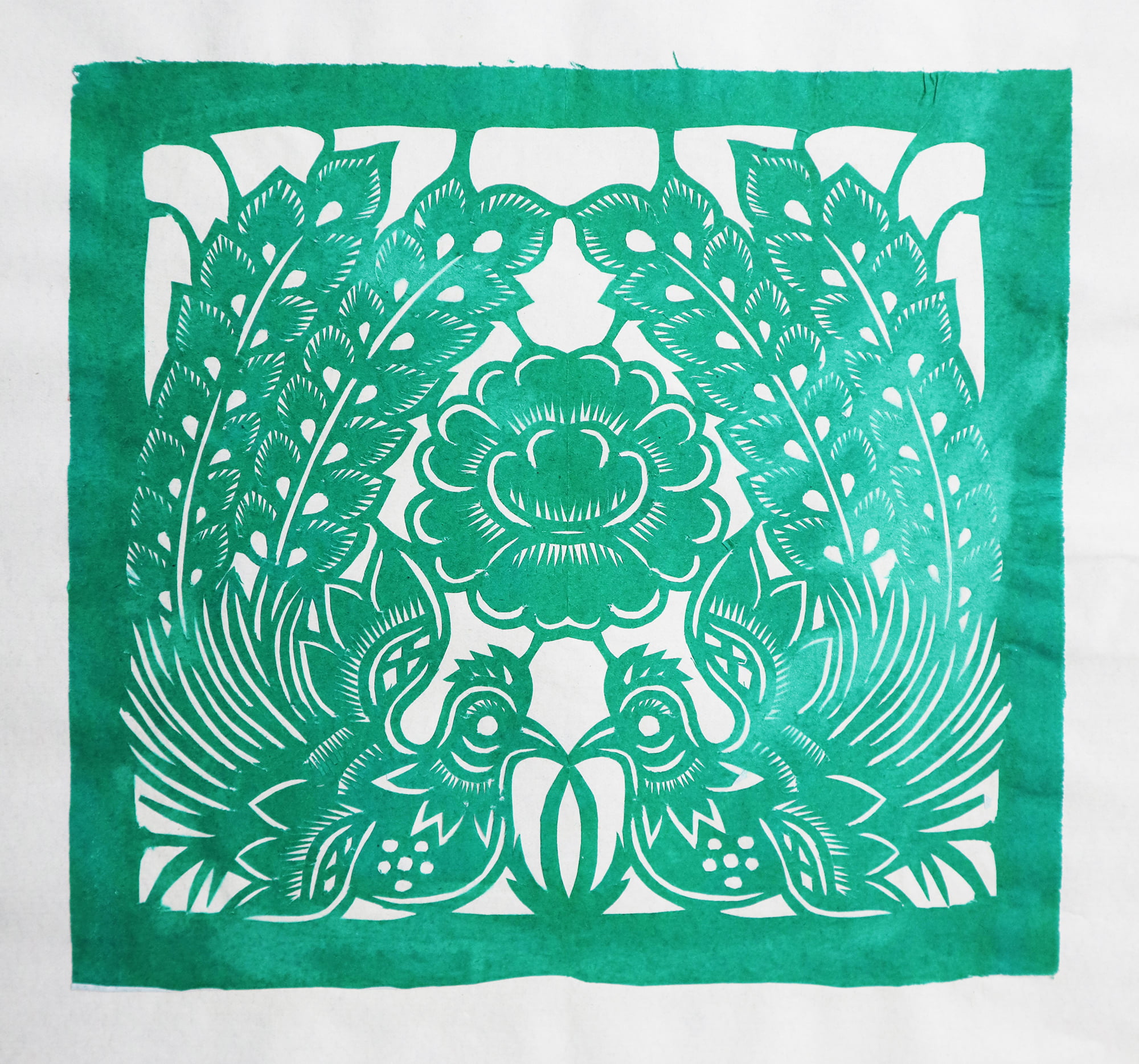 造型秀丽明快,生动传神,剪出的锯齿纹齐刷刷的工整好看,剪出的花草线条圆润流畅,糊的花窗布局新颖好看,色彩搭配艳丽和谐。