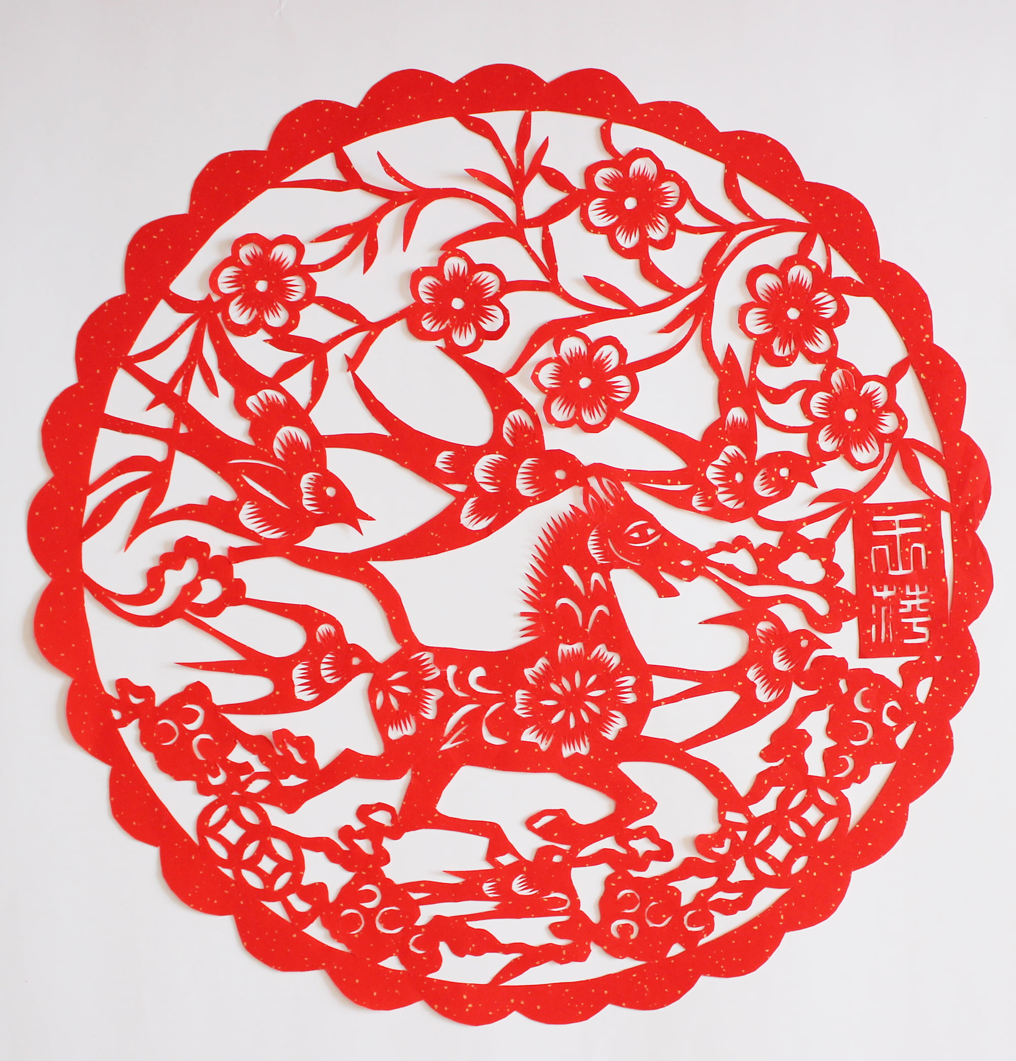 最初接触剪纸是在调到耀州区董家河镇政府上班之后。 1992年冬季,她当时已经26岁,刚刚当了妈妈,一天下午,同事拿来一卷红纸,说他的好友结婚,让给剪一些喜字。当天晚上她就试着用白纸画下来,边琢磨着边剪,剪完后对着灯光放在窗户上一看,效果不错,一下子信心满满,就把那几个样品图案放大比例画好,用红纸剪出来,夜里三点多孩子饿了哭闹,她还不知疲乏。因为白天要上班、照顾孩子,一连几天晚上她都剪到深夜,但是看到剪好后的作品一点都不觉得累,等她把作品交给同事后,大家展开观看后赞不绝口。尽管这样,她对剪纸仍认识模糊,到1992年鸡年的时候,负责的专栏办了一期“鸡”庆有余,主要用剪纸的形式剪了一群鸡和鱼,再有一些花花草草,当时见得少,只是把它们剪成单个的,然后放在纸上再布置粘贴成一副大的画面。