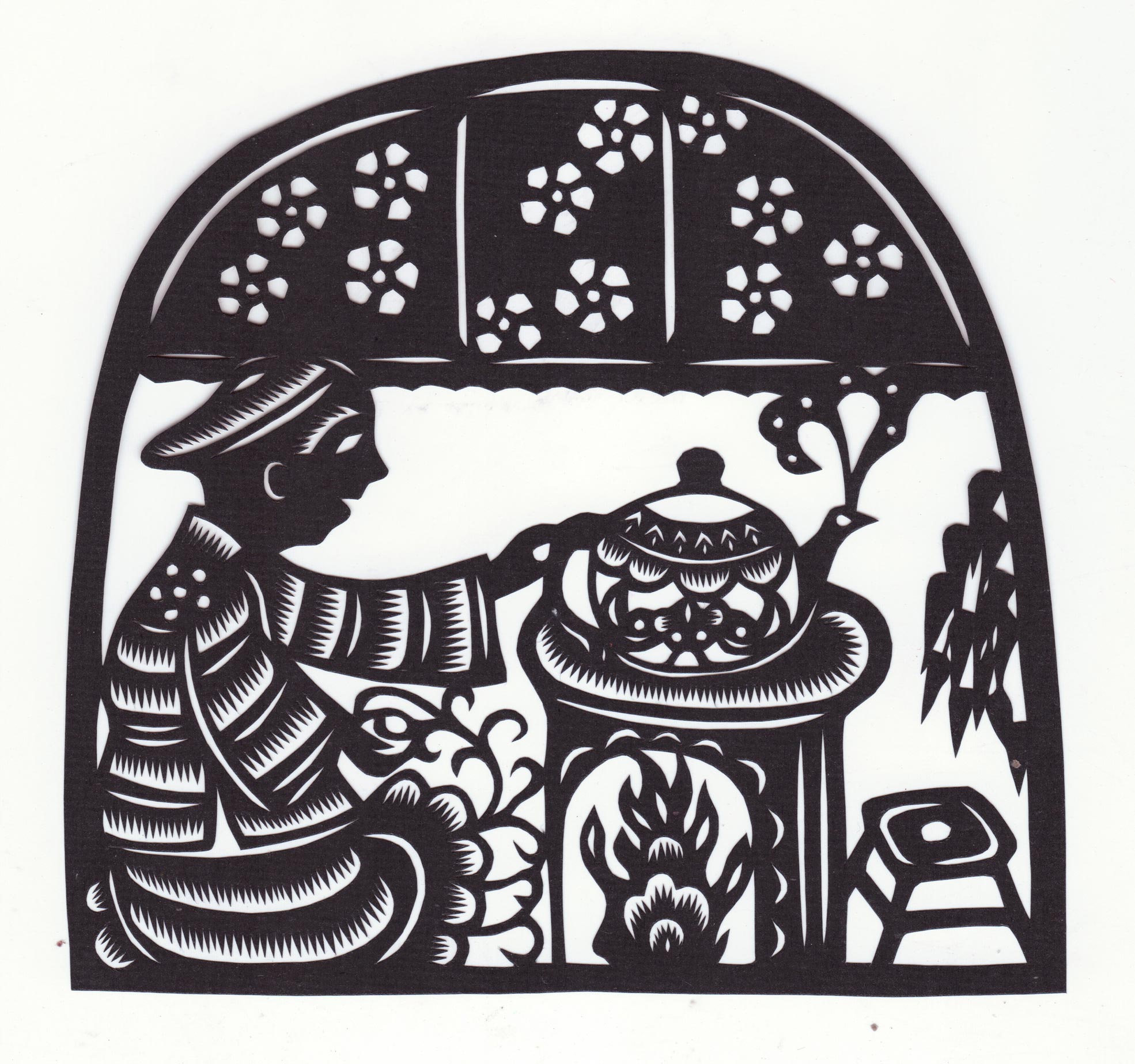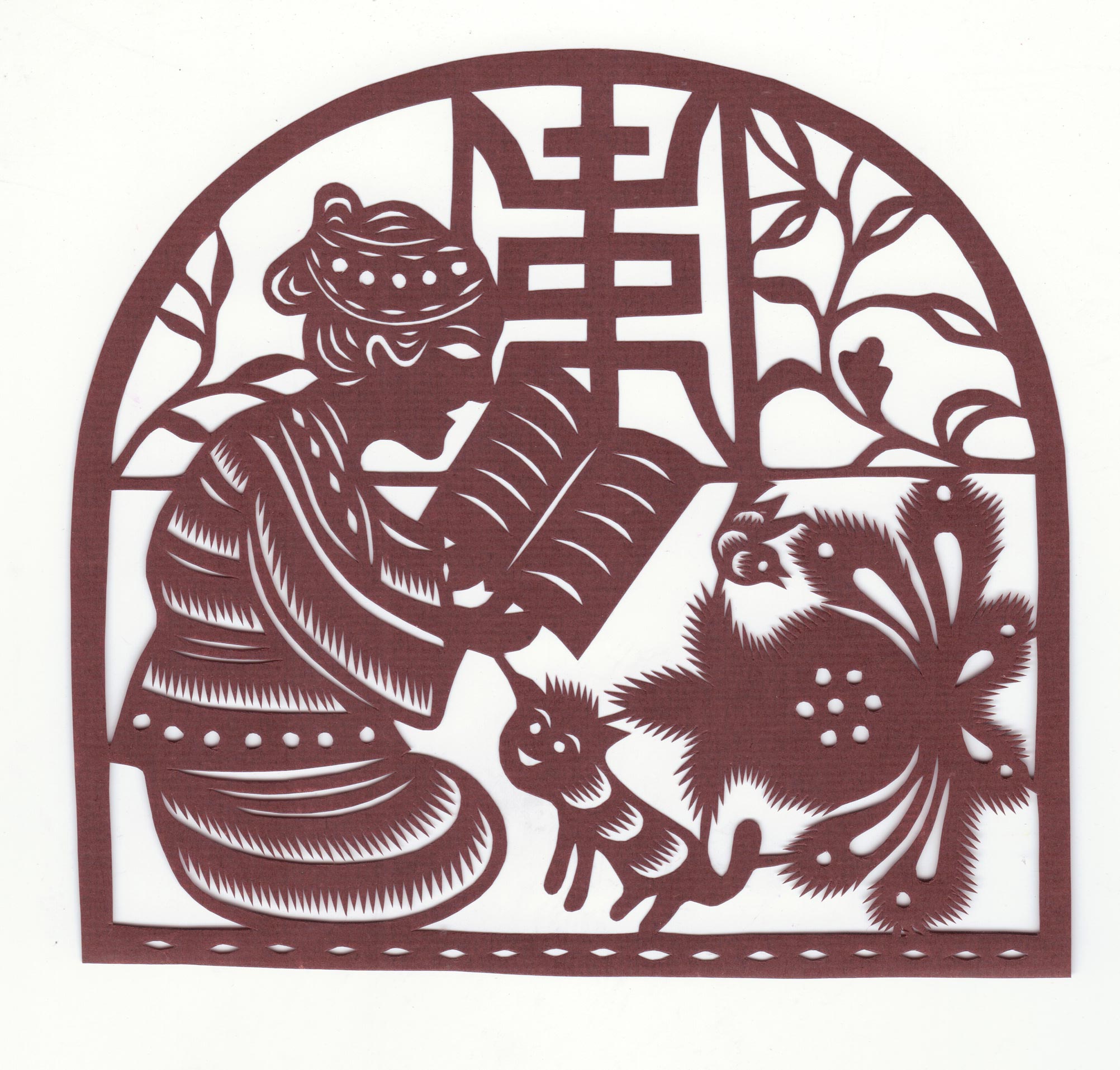 王小雨的剪纸以主体性人物创作为主,人物造型生动有趣,恬静秀美,主题突出,内容丰富,构图聚散有度,黑白布局得当,个性风格鲜明,是府谷剪纸队伍中的后起之秀。