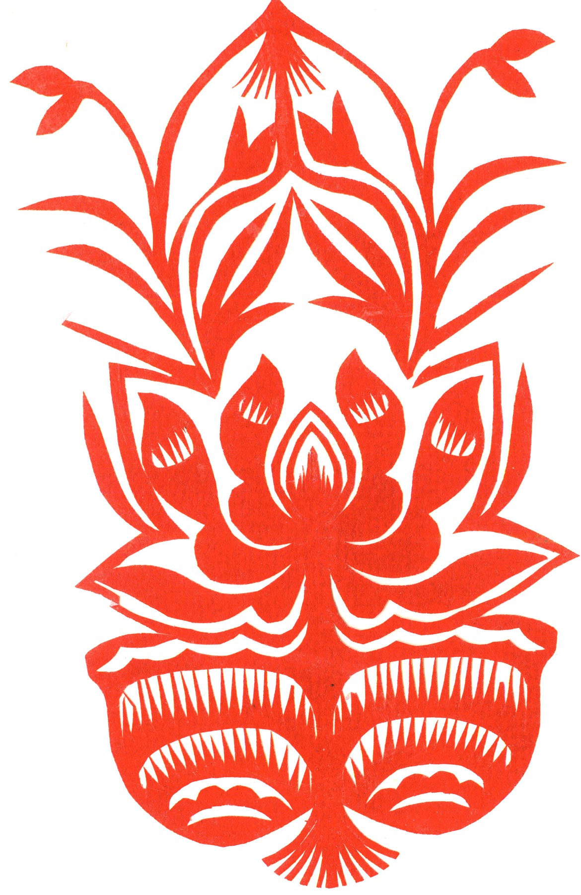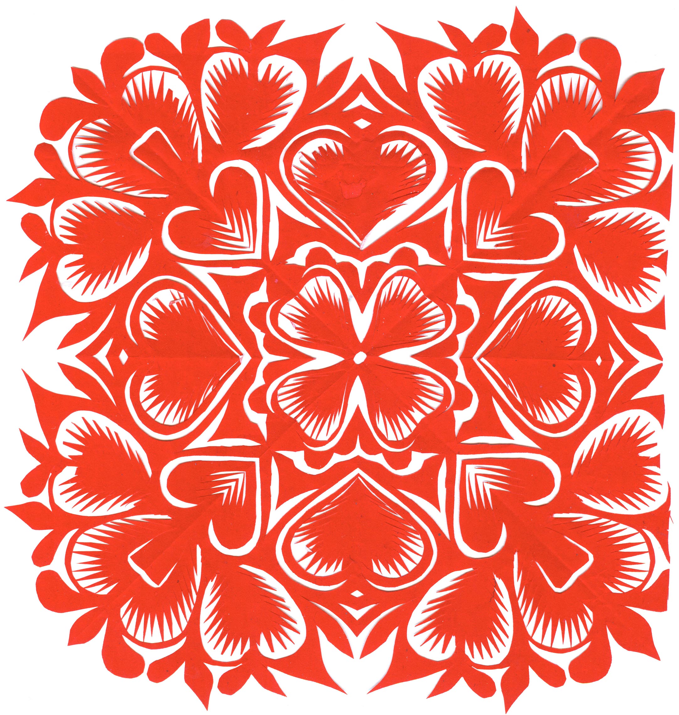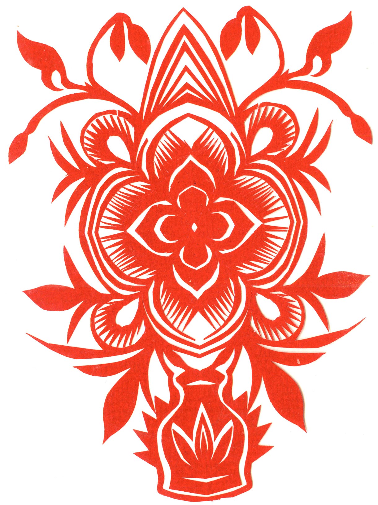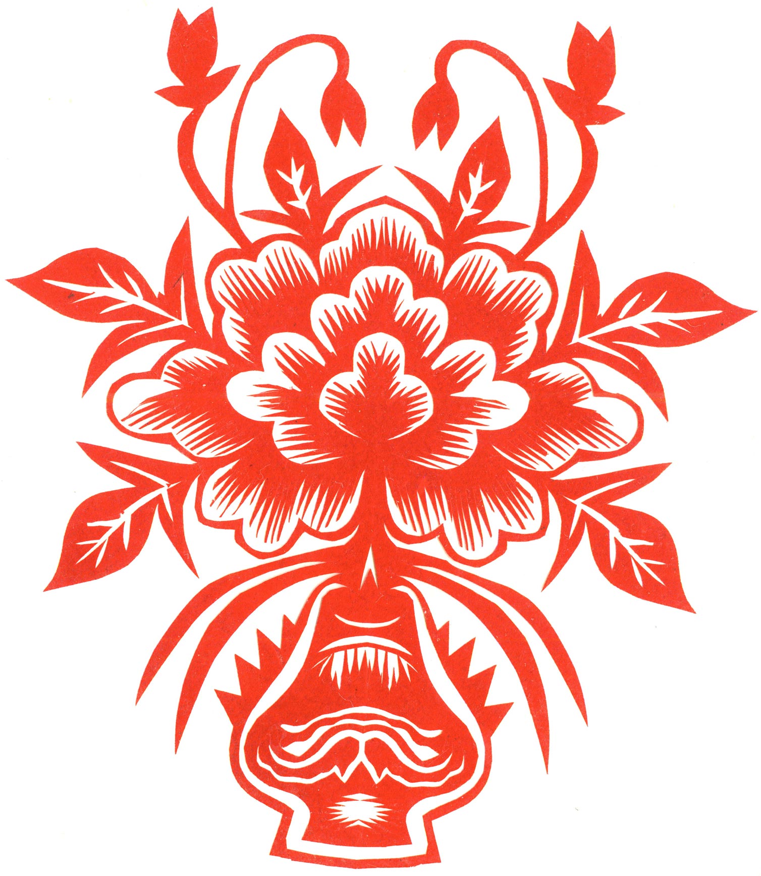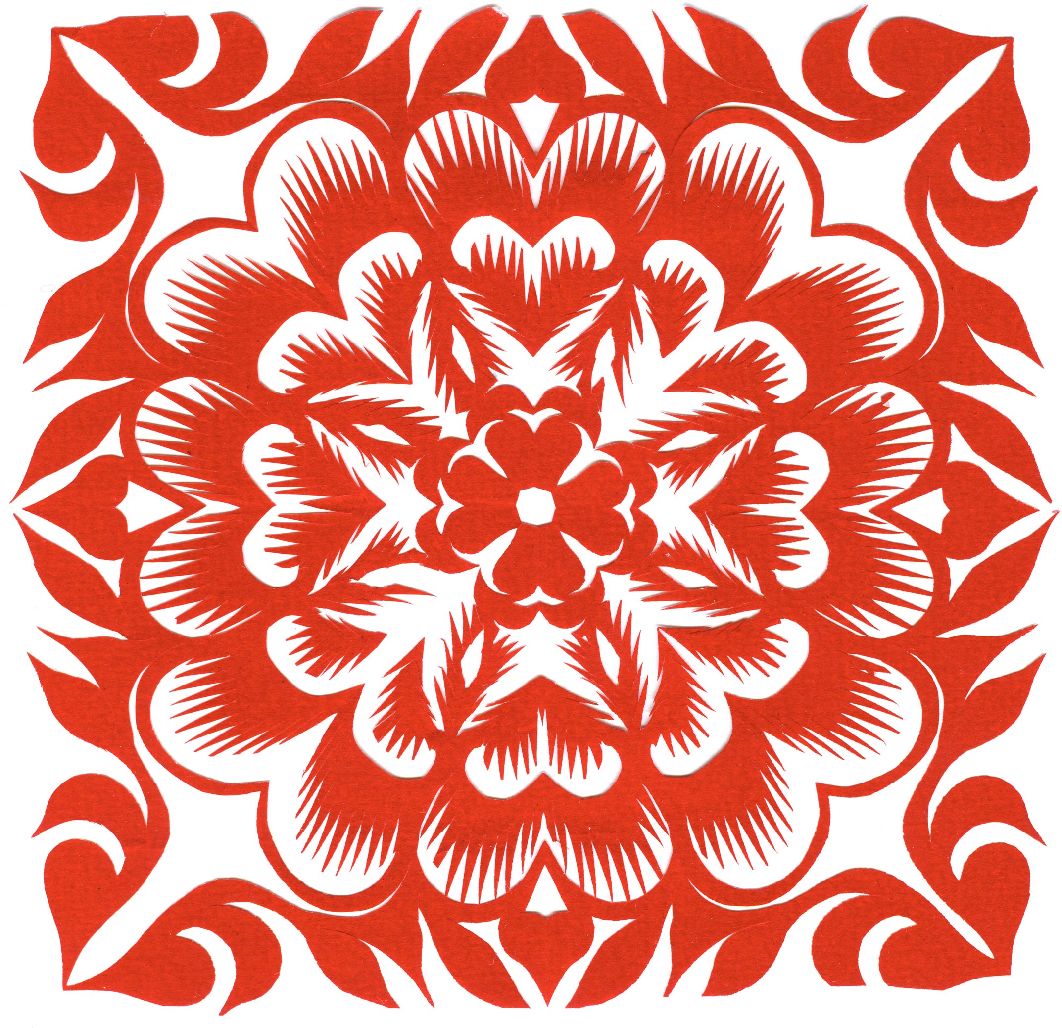 郑国翠兄妹4个,她最小,手也最巧。8岁上学,上了三年学,后因家庭贫困就辍学回家,帮家人干农活,减轻家里负担。从7岁起就看见母亲剪纸好奇,受母亲影响,开始学习剪纸,因为家里的条件不好,纸张有限,就把旧对联从外面撕下来拿回家练习剪纸。最开心的是,每年过年母亲从乡镇的商店里买好多彩色纸,村里人也都拿着纸来家里让妈妈帮她们剪窗花。因为镇上会剪纸的人很少,所以母亲在当时就是村里数一数二的巧人了。母亲剪,她也跟着剪。上学那时候就喜欢剪纸,除了上学、吃饭、写作业、做家务,经常都在废寝忘食地剪窗花,如剪狗、牛、羊常见到的动物,还有凳子、筐子、锄头,后来开始剪自行车、汽车,飞机,村里的人都说称赞她像母亲和外婆,长了一双巧手。她剪的第一幅剪纸是团花,因为喜欢团花,又没有固定的样子,靠自己脑子里想象出的画面,剪出来的样子比较新颖又好看,此后村里人每年过年便都来找母亲和她剪窗花。过年用的剪纸都是自己冒剪的,还会剪结婚和白事上用的剪纸,有时还剪一些教育宣传等方面的剪纸。同时还学会做鞋、鞋垫,都是跟奶奶学的。