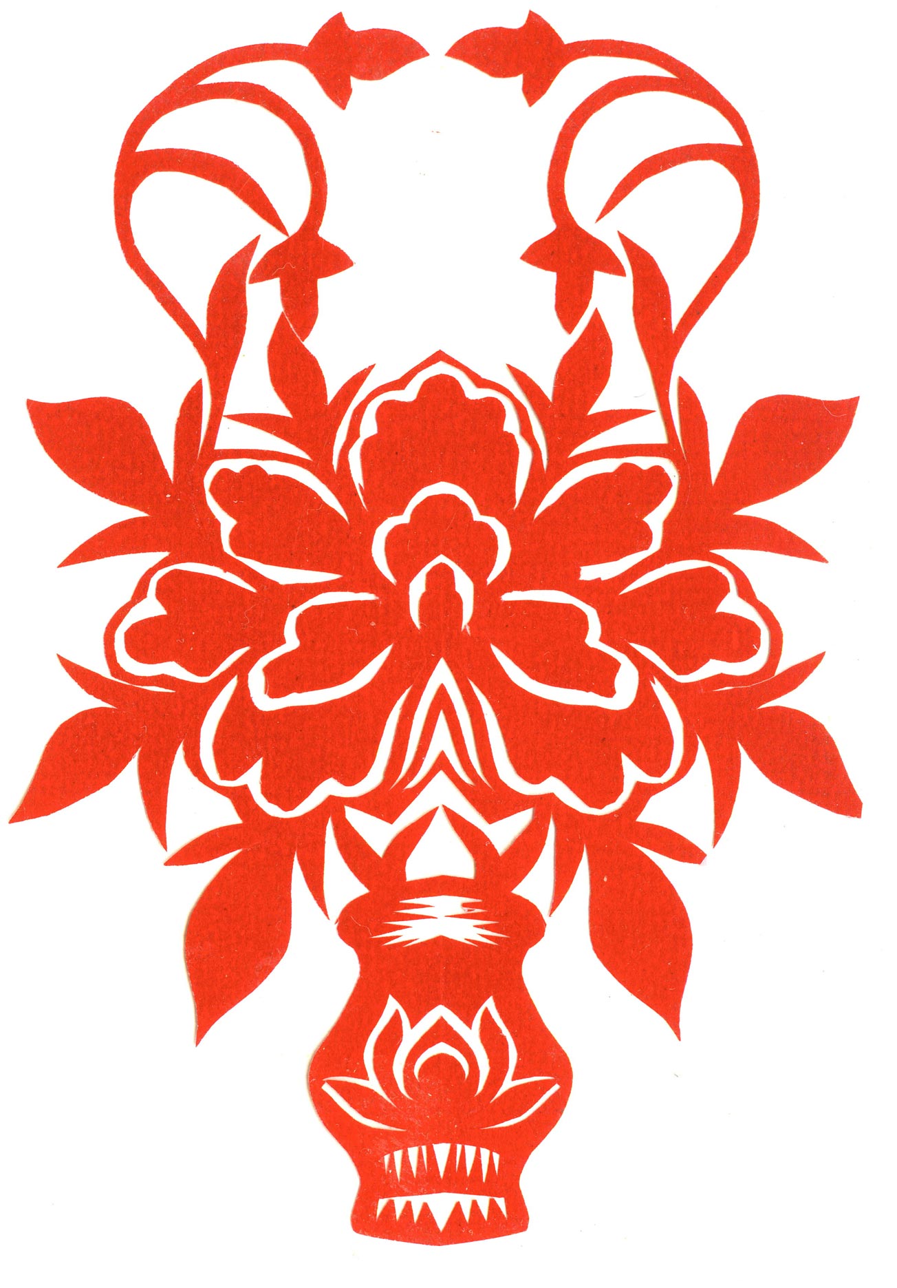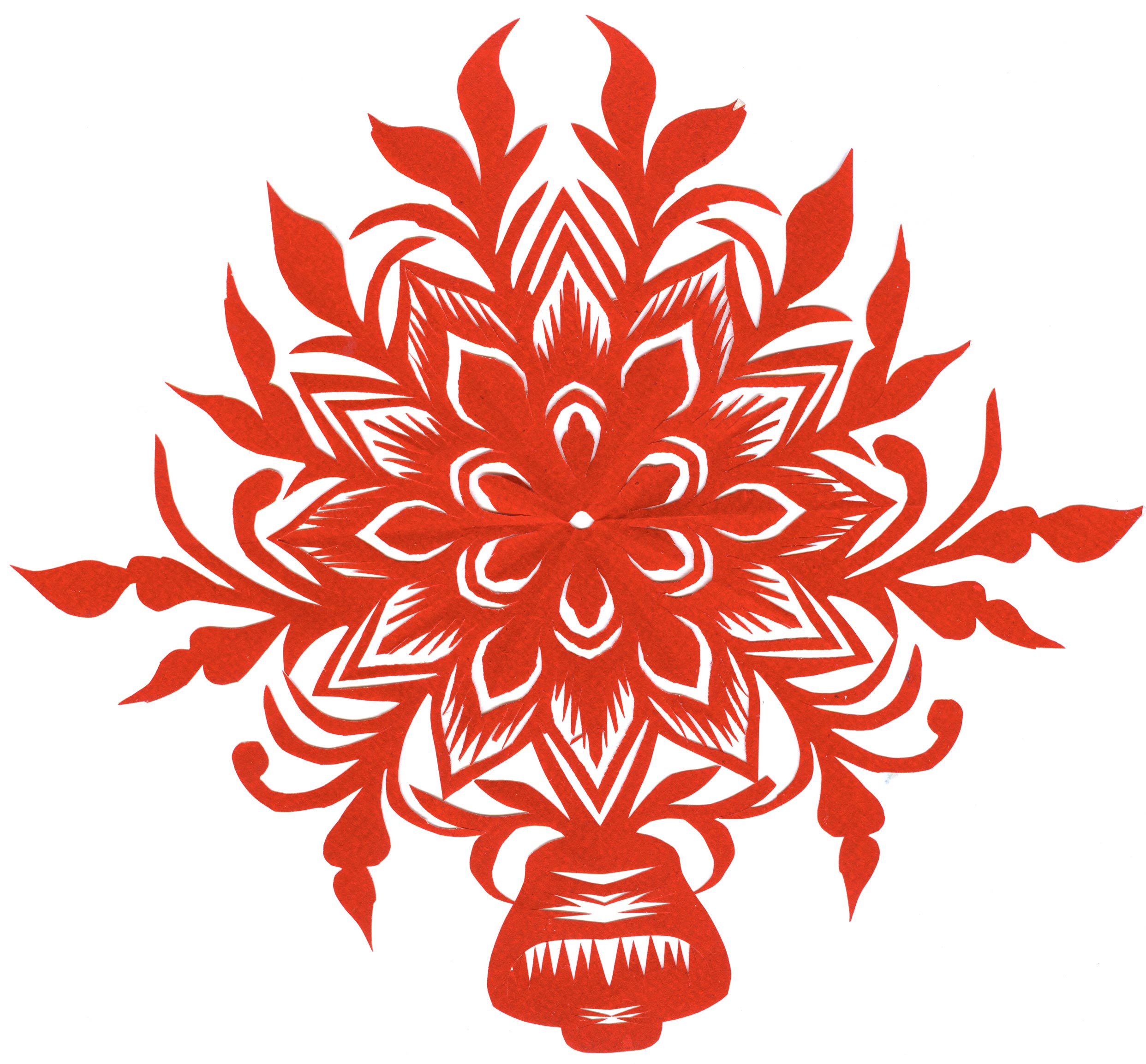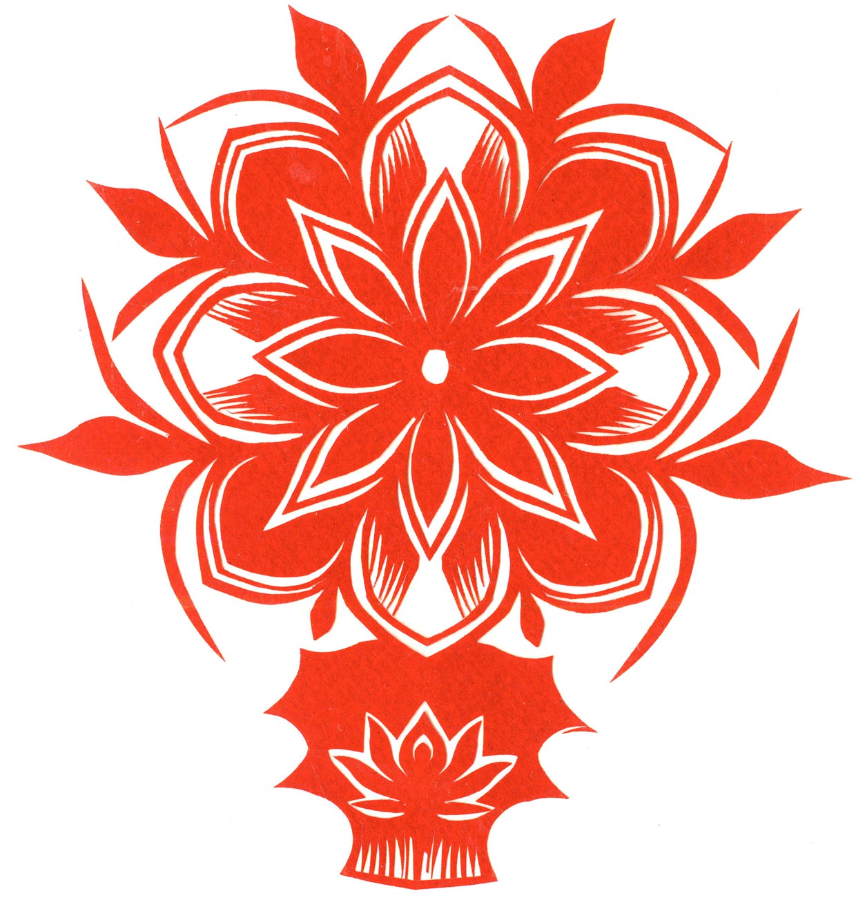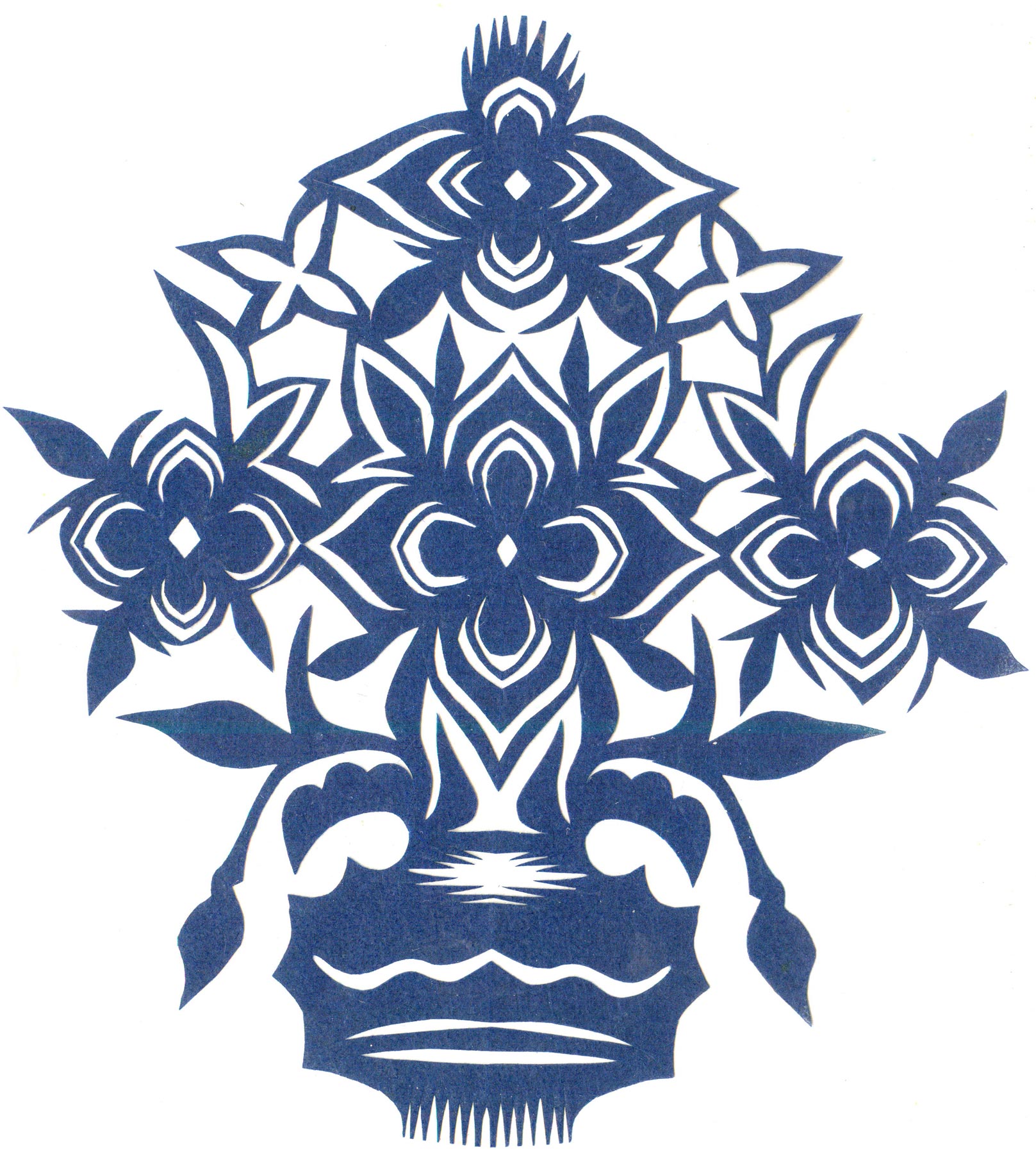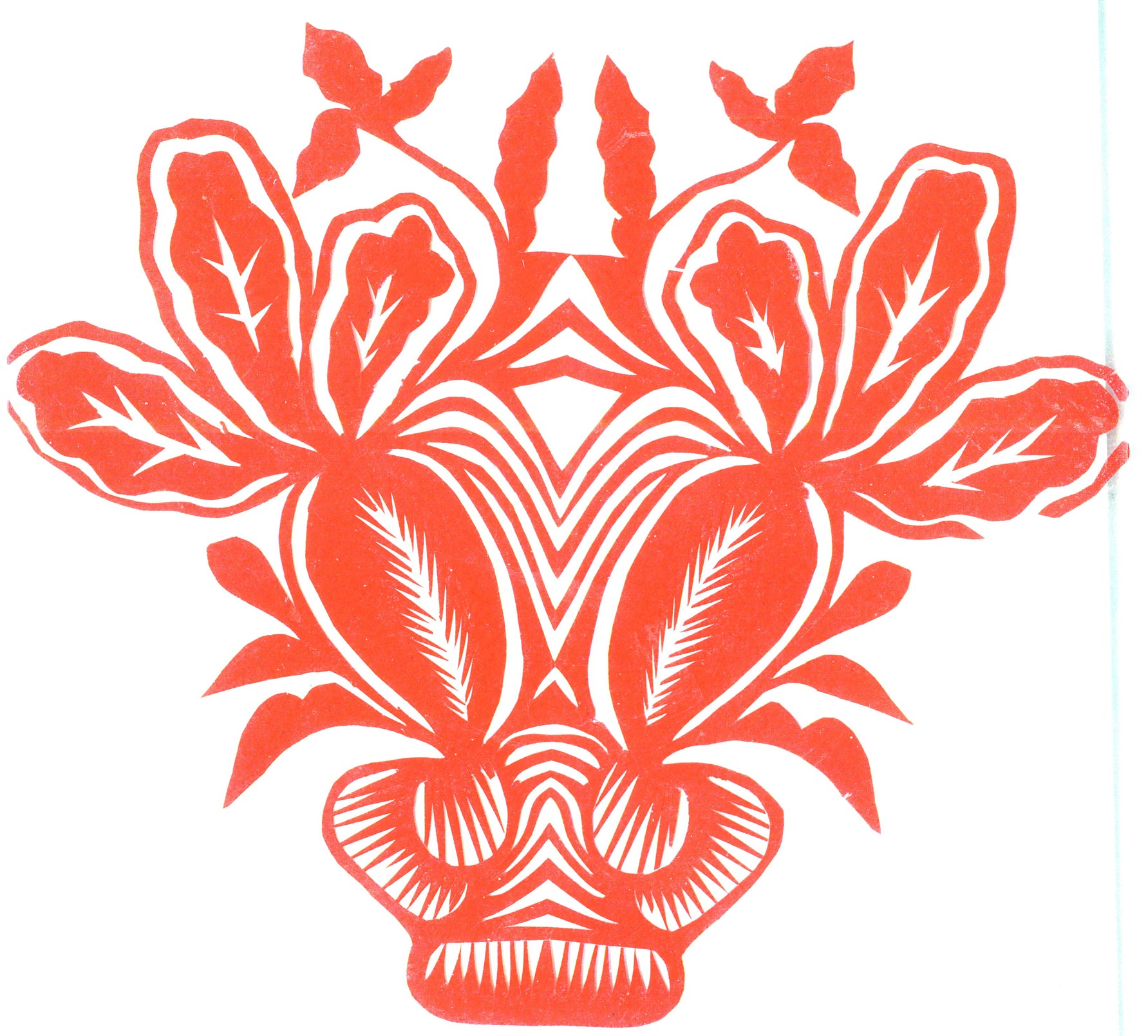 郑国翠兄妹4个,她最小,手也最巧。8岁上学,上了三年学,后因家庭贫困就辍学回家,帮家人干农活,减轻家里负担。从7岁起就看见母亲剪纸好奇,受母亲影响,开始学习剪纸,因为家里的条件不好,纸张有限,就把旧对联从外面撕下来拿回家练习剪纸。最开心的是,每年过年母亲从乡镇的商店里买好多彩色纸,村里人也都拿着纸来家里让妈妈帮她们剪窗花。因为镇上会剪纸的人很少,所以母亲在当时就是村里数一数二的巧人了。母亲剪,她也跟着剪。上学那时候就喜欢剪纸,除了上学、吃饭、写作业、做家务,经常都在废寝忘食地剪窗花,如剪狗、牛、羊常见到的动物,还有凳子、筐子、锄头,后来开始剪自行车、汽车,飞机,村里的人都说称赞她像母亲和外婆,长了一双巧手。她剪的第一幅剪纸是团花,因为喜欢团花,又没有固定的样子,靠自己脑子里想象出的画面,剪出来的样子比较新颖又好看,此后村里人每年过年便都来找母亲和她剪窗花。过年用的剪纸都是自己冒剪的,还会剪结婚和白事上用的剪纸,有时还剪一些教育宣传等方面的剪纸。同时还学会做鞋、鞋垫,都是跟奶奶学的。