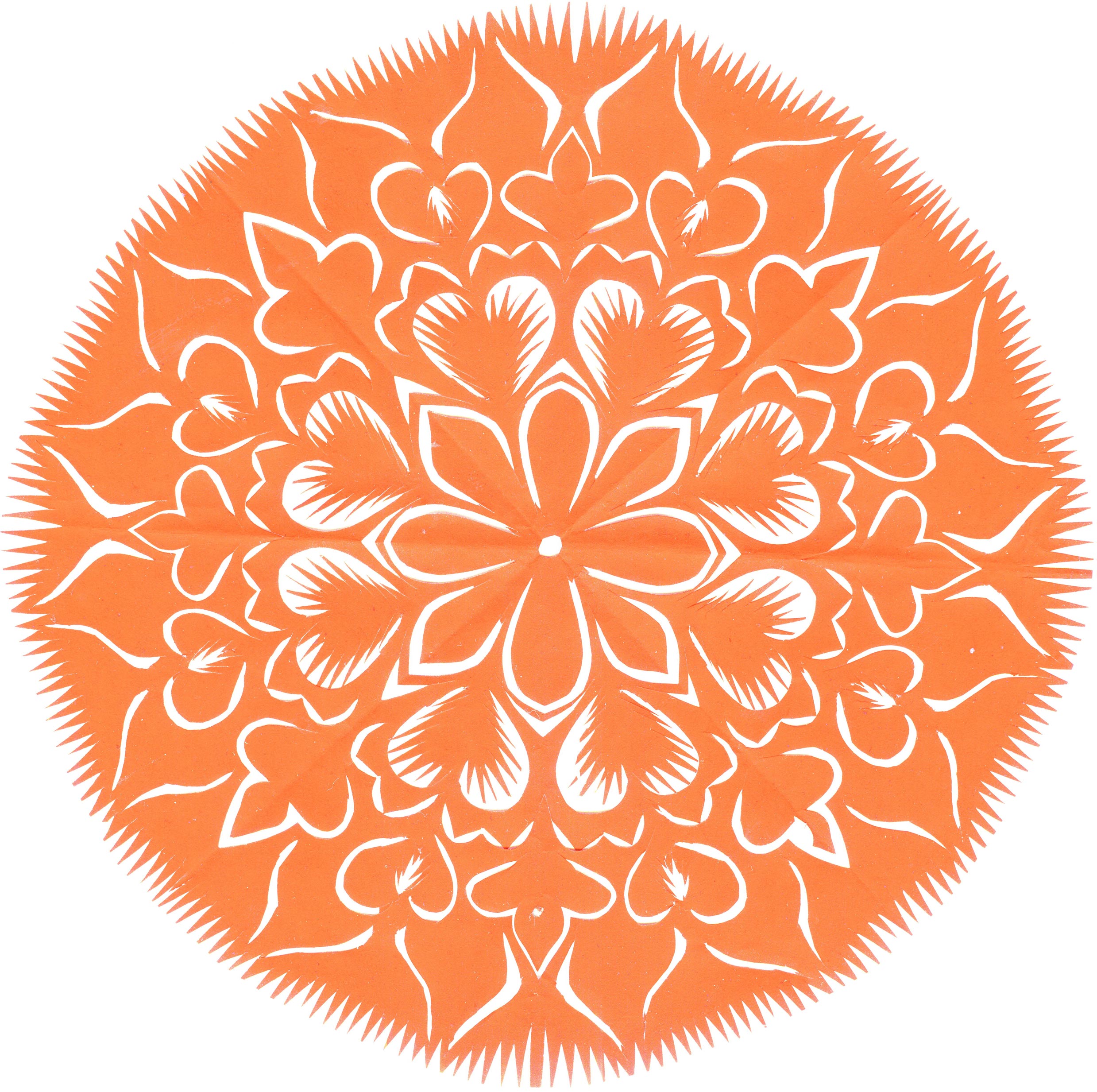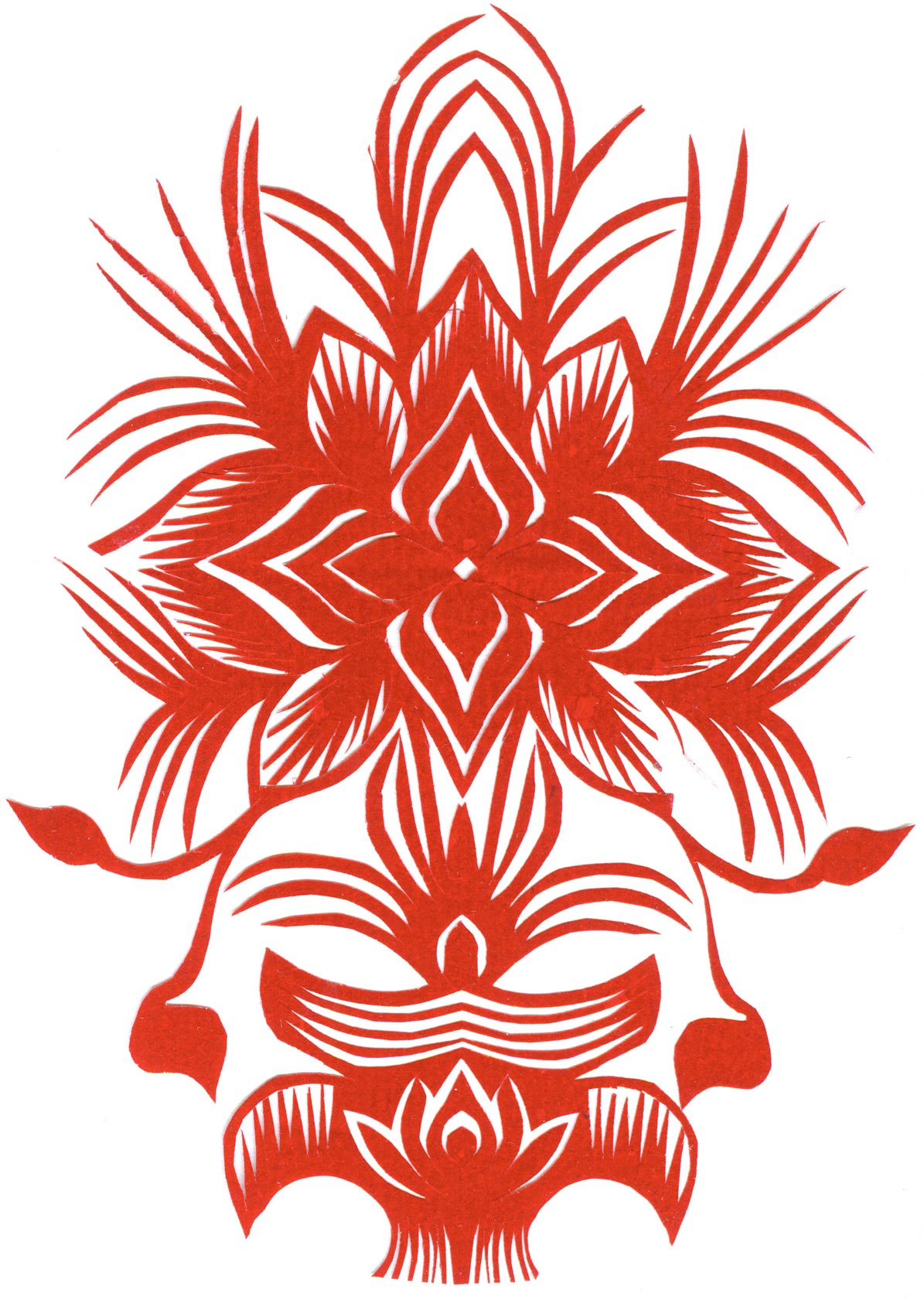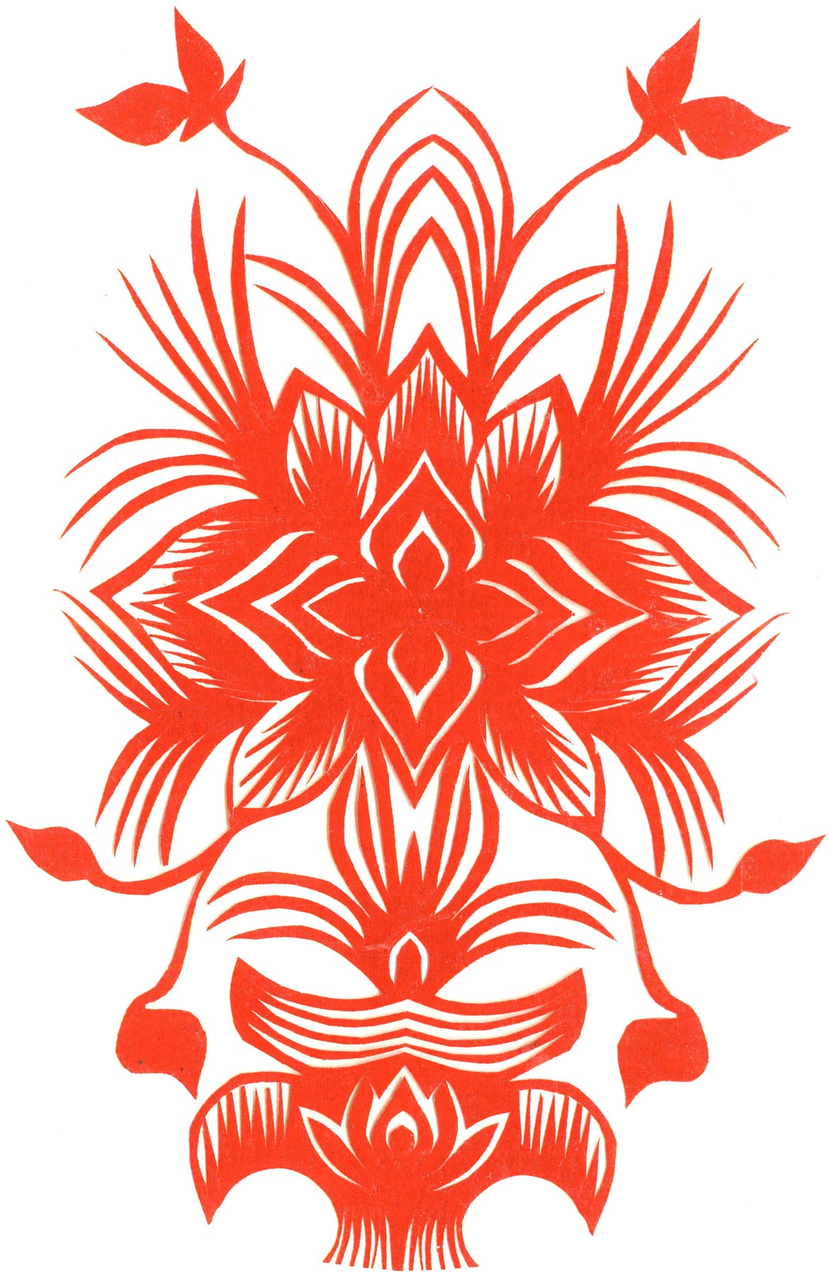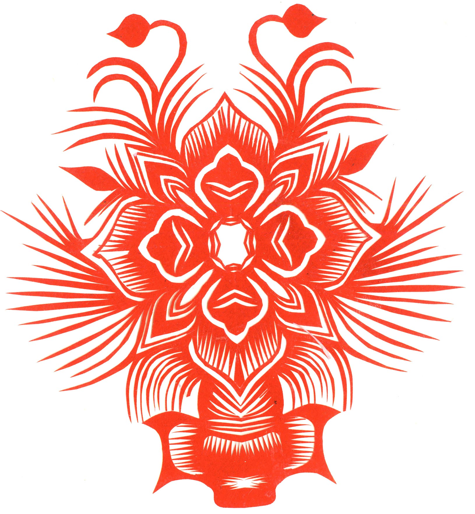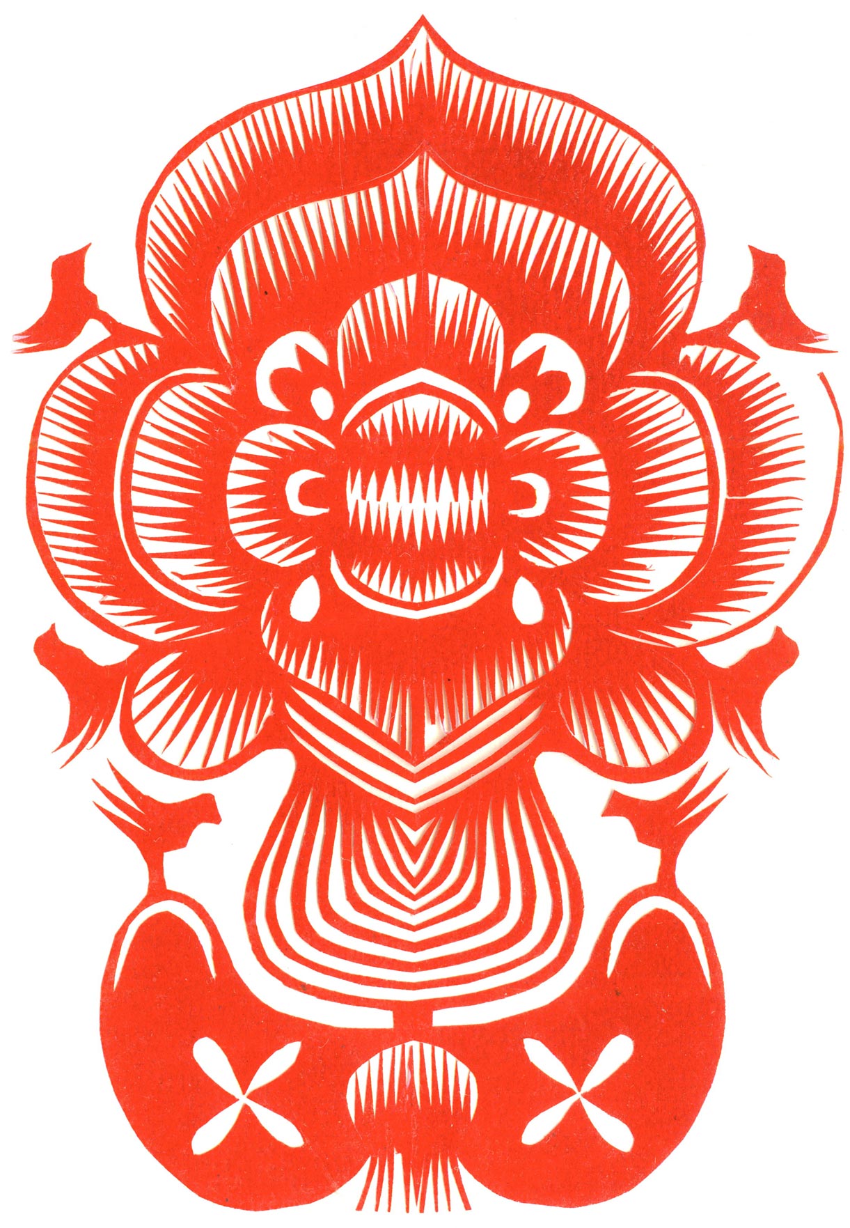 郑国翠兄妹4个,她最小,手也最巧。8岁上学,上了三年学,后因家庭贫困就辍学回家,帮家人干农活,减轻家里负担。从7岁起就看见母亲剪纸好奇,受母亲影响,开始学习剪纸,因为家里的条件不好,纸张有限,就把旧对联从外面撕下来拿回家练习剪纸。最开心的是,每年过年母亲从乡镇的商店里买好多彩色纸,村里人也都拿着纸来家里让妈妈帮她们剪窗花。因为镇上会剪纸的人很少,所以母亲在当时就是村里数一数二的巧人了。母亲剪,她也跟着剪。上学那时候就喜欢剪纸,除了上学、吃饭、写作业、做家务,经常都在废寝忘食地剪窗花,如剪狗、牛、羊常见到的动物,还有凳子、筐子、锄头,后来开始剪自行车、汽车,飞机,村里的人都说称赞她像母亲和外婆,长了一双巧手。她剪的第一幅剪纸是团花,因为喜欢团花,又没有固定的样子,靠自己脑子里想象出的画面,剪出来的样子比较新颖又好看,此后村里人每年过年便都来找母亲和她剪窗花。过年用的剪纸都是自己冒剪的,还会剪结婚和白事上用的剪纸,有时还剪一些教育宣传等方面的剪纸。同时还学会做鞋、鞋垫,都是跟奶奶学的。