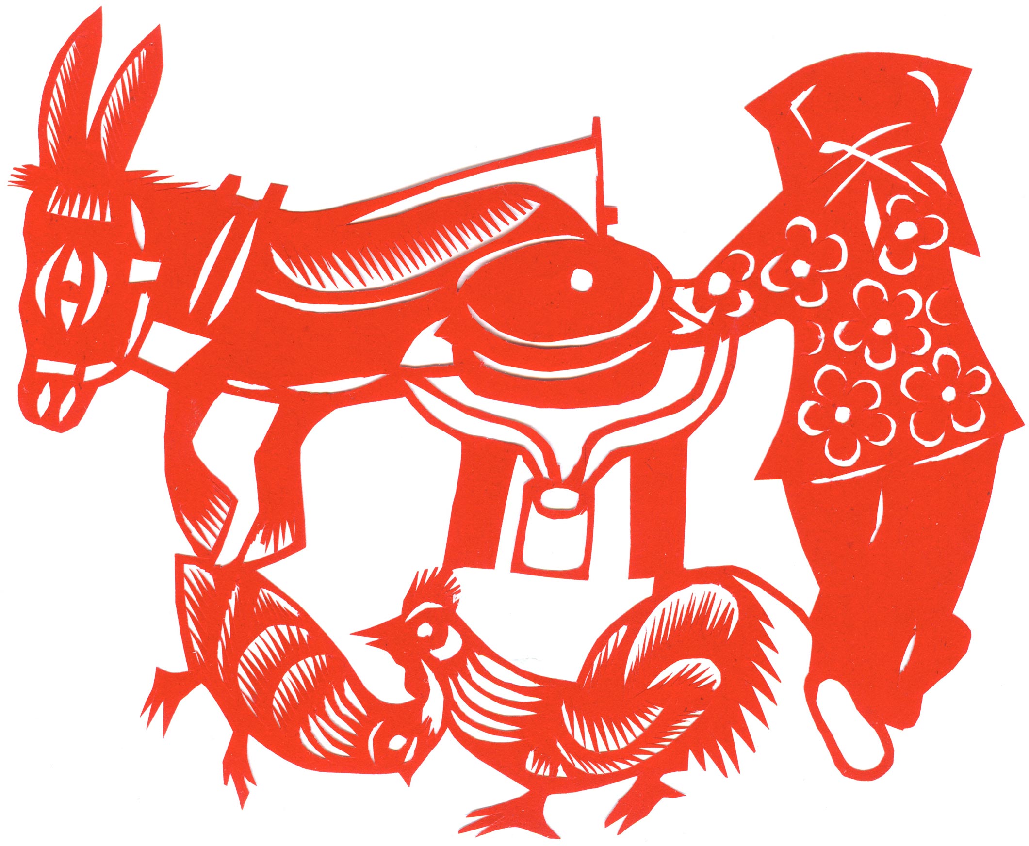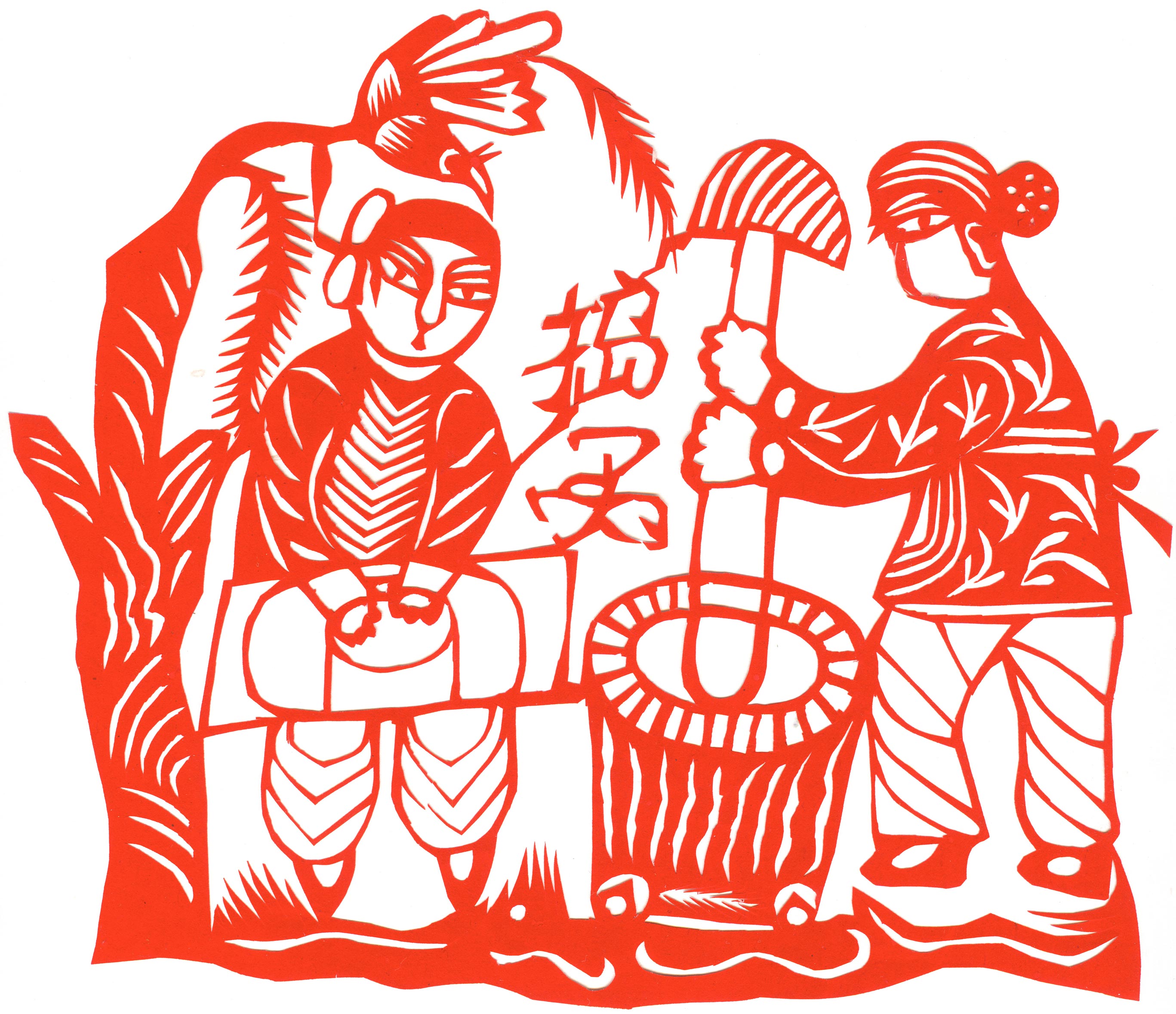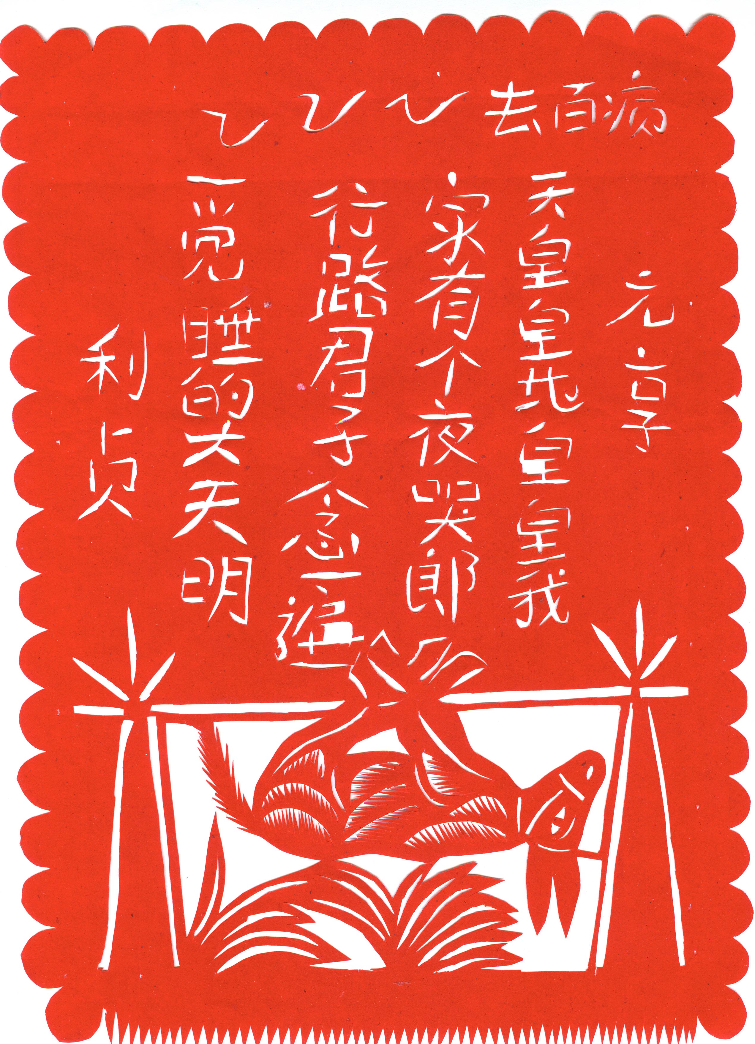 郑国翠1971年11月结婚的,当时20岁。婆家是榆阳区人。公公务农,没有上过学,也没有手艺,就爱好放羊。婆婆家庭主妇,针线活做的相当好,但不会剪纸。丈夫白怀生,小学文化,一边务农一边修农用机器养家,非常支持和理解妻子的剪纸爱好。婚后生育4个孩子。1974年大儿子出生,老人还有5个孩子没有成家,所以没办法帮忙照顾孩子。1979年第二个孩子出生,2个孩子没人带,只有靠老公一人务农,一年收入几百元。1984年,第三个孩子出生。1987年小女儿出生。孩子陆续要上学,都要花钱,丈夫的收入有限。自己想干个什么来钱的活,就开始了做豆腐,那时候豆腐1斤3毛钱,加工一锅豆腐才4元钱,虽然起早贪黑也赚不了多少钱,可至少4个孩子能够吃饱穿暖,上学念书。就这样一做就是18年,但再忙她也没有放弃剪纸,孩子们睡觉了坚持创作剪纸。