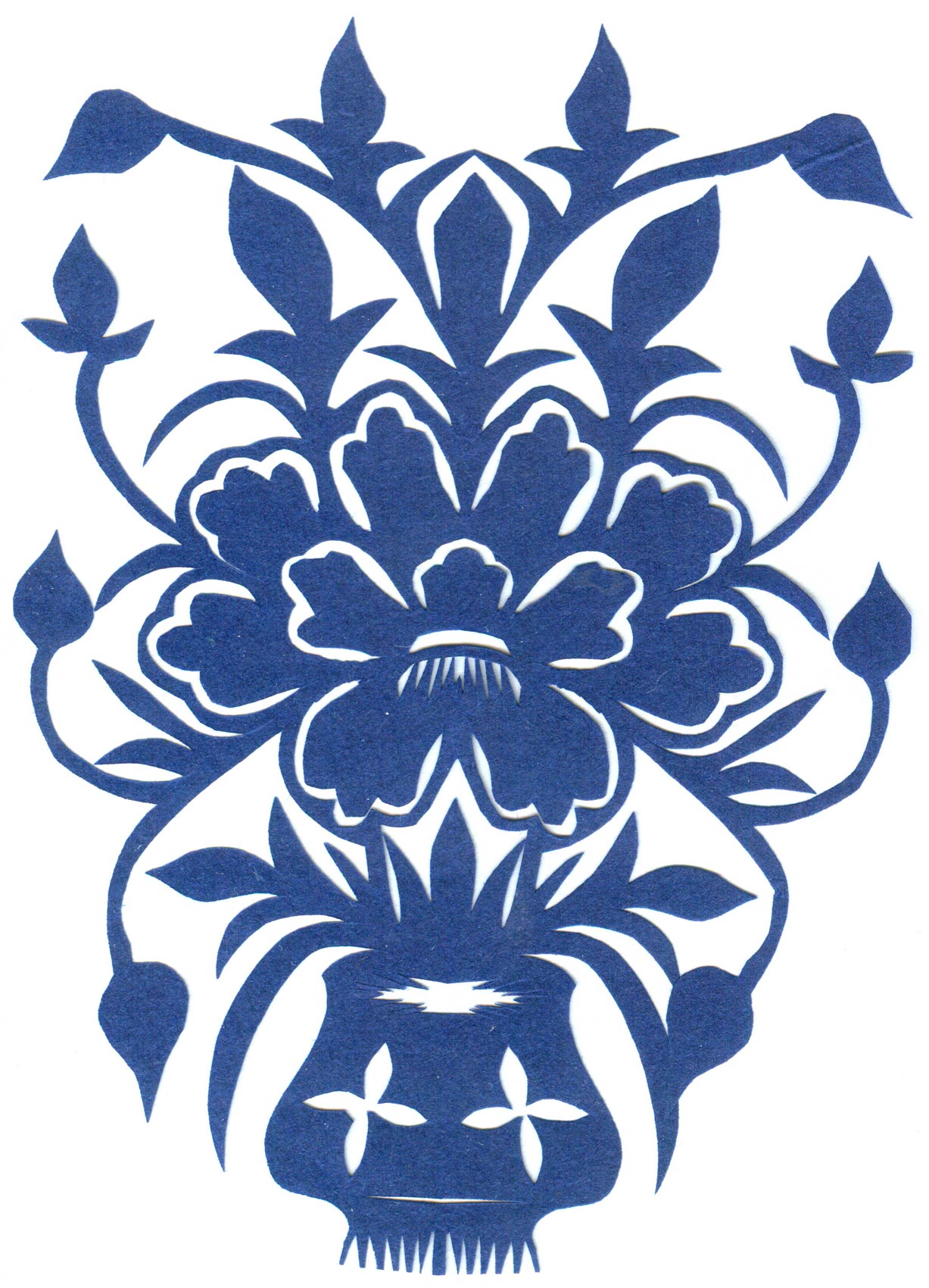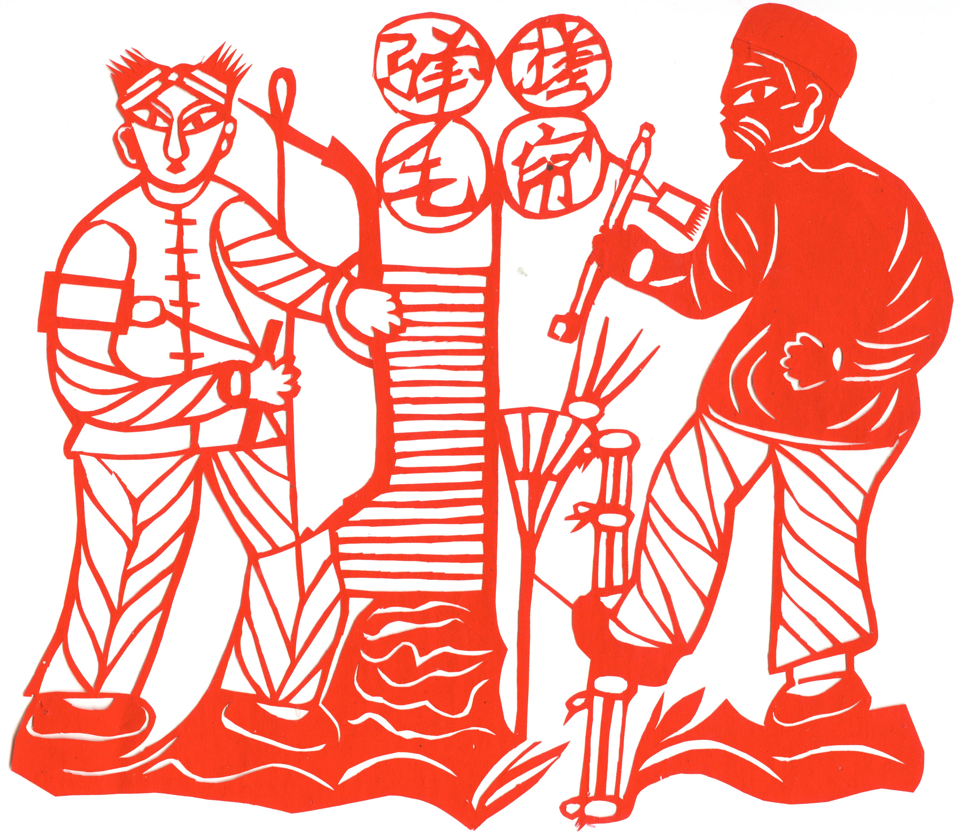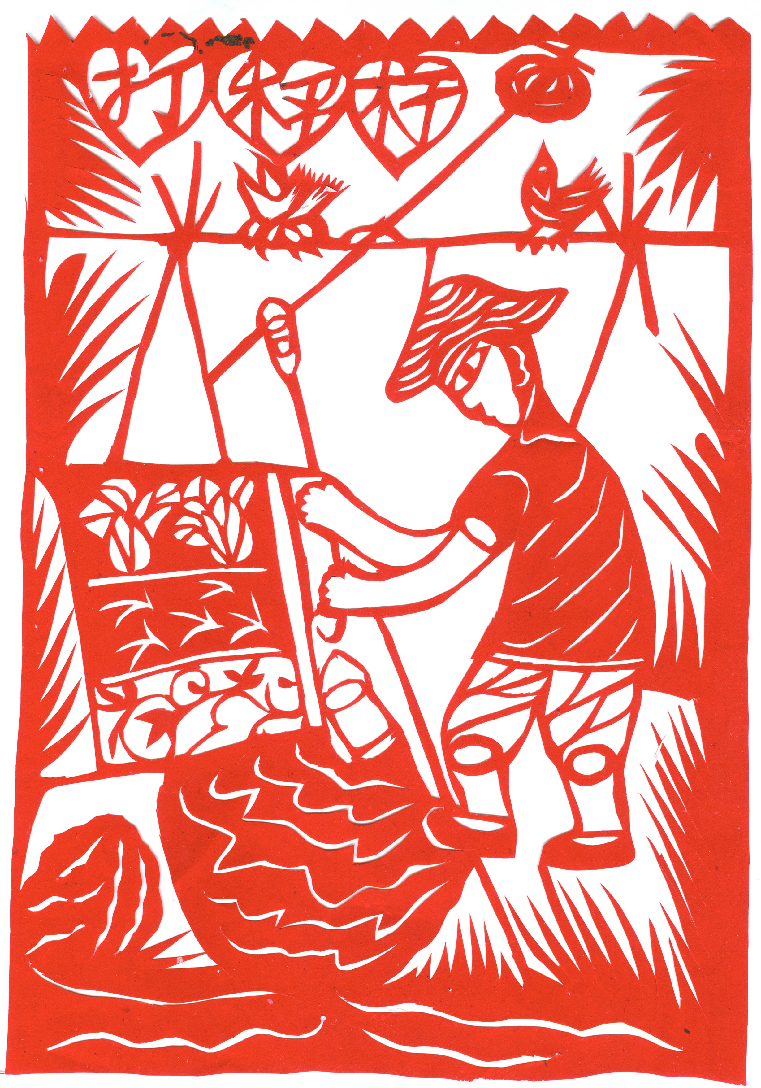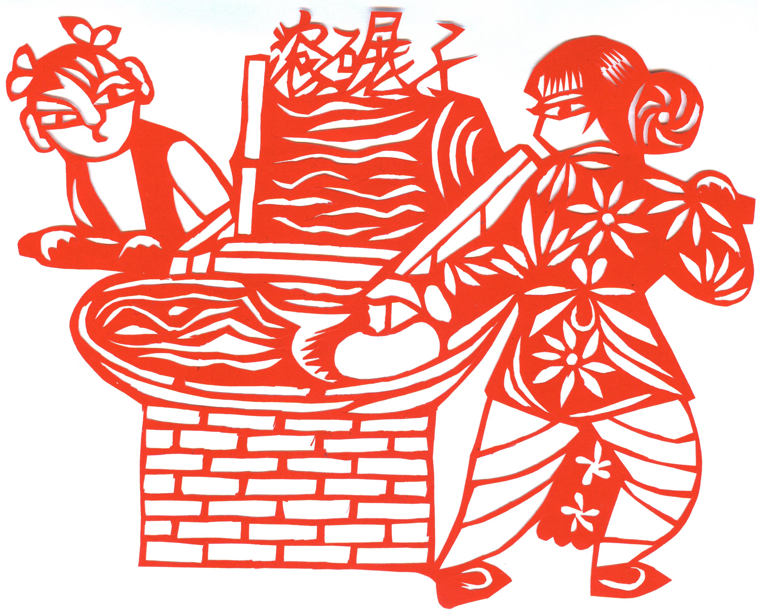 郑国翠1971年11月结婚的,当时20岁。婆家是榆阳区人。公公务农,没有上过学,也没有手艺,就爱好放羊。婆婆家庭主妇,针线活做的相当好,但不会剪纸。丈夫白怀生,小学文化,一边务农一边修农用机器养家,非常支持和理解妻子的剪纸爱好。婚后生育4个孩子。1974年大儿子出生,老人还有5个孩子没有成家,所以没办法帮忙照顾孩子。1979年第二个孩子出生,2个孩子没人带,只有靠老公一人务农,一年收入几百元。1984年,第三个孩子出生。1987年小女儿出生。孩子陆续要上学,都要花钱,丈夫的收入有限。自己想干个什么来钱的活,就开始了做豆腐,那时候豆腐1斤3毛钱,加工一锅豆腐才4元钱,虽然起早贪黑也赚不了多少钱,可至少4个孩子能够吃饱穿暖,上学念书。就这样一做就是18年,但再忙她也没有放弃剪纸,孩子们睡觉了坚持创作剪纸。