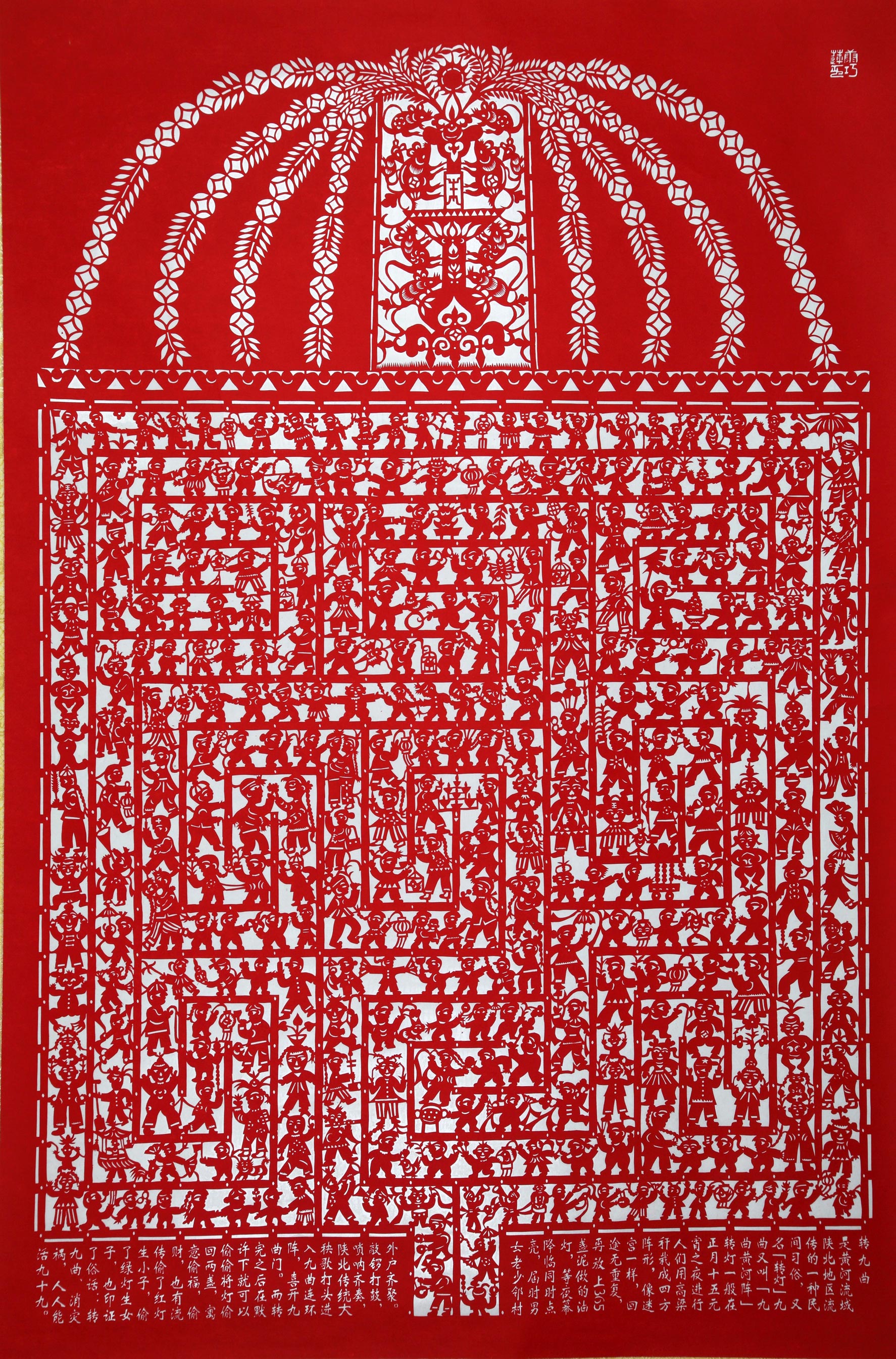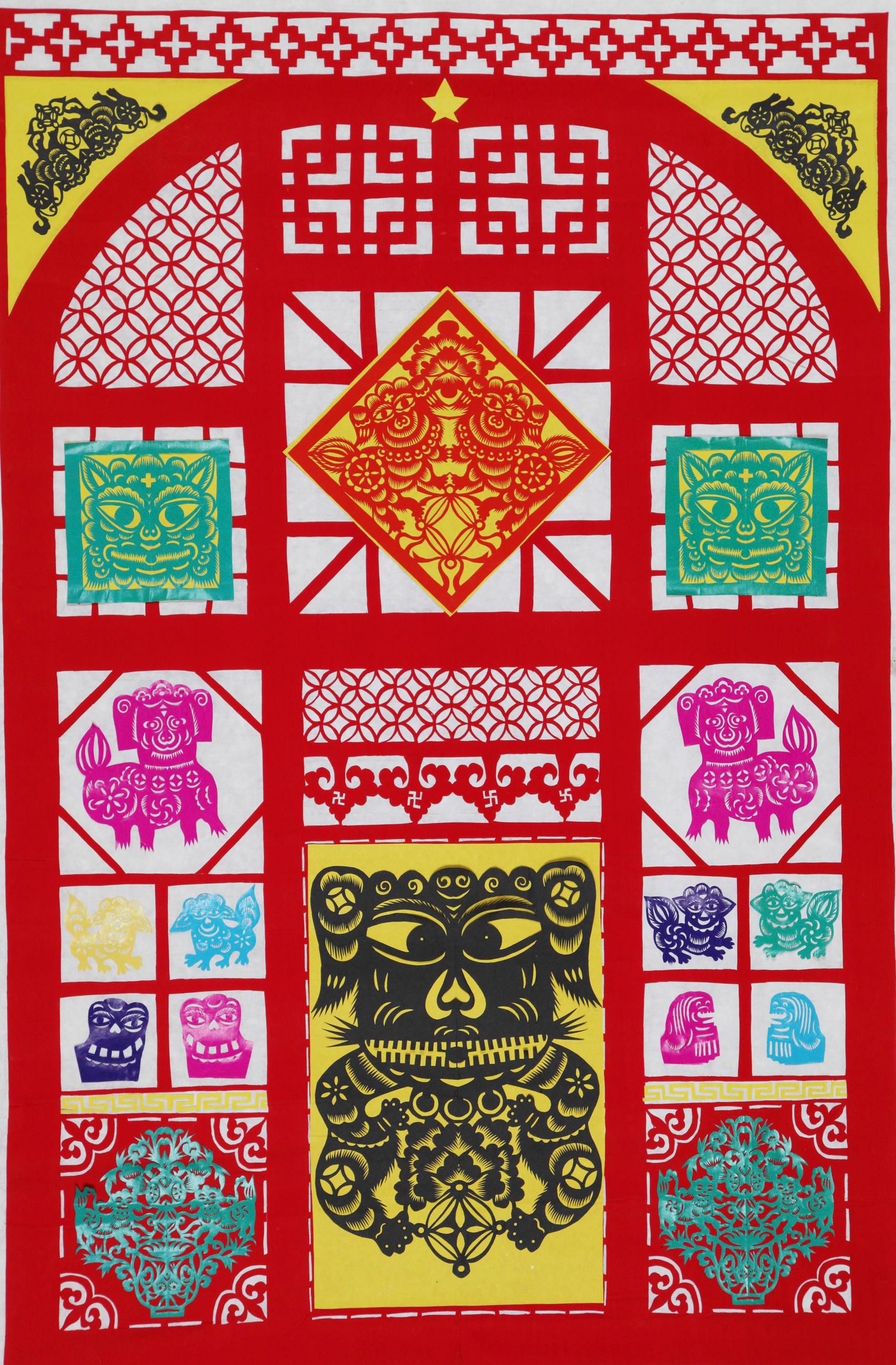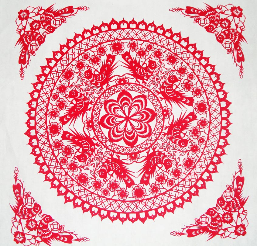 康巧莲的剪纸造型古朴粗犷,简洁洒脱,构图饱满,装饰华丽,剪工精美,灵动自然,较好地传承了绥德剪纸的地域风格。