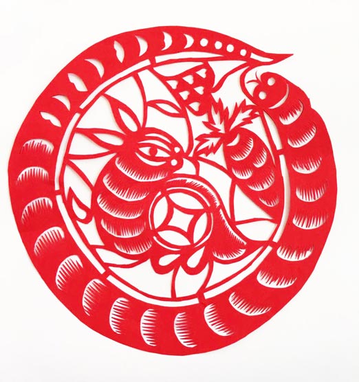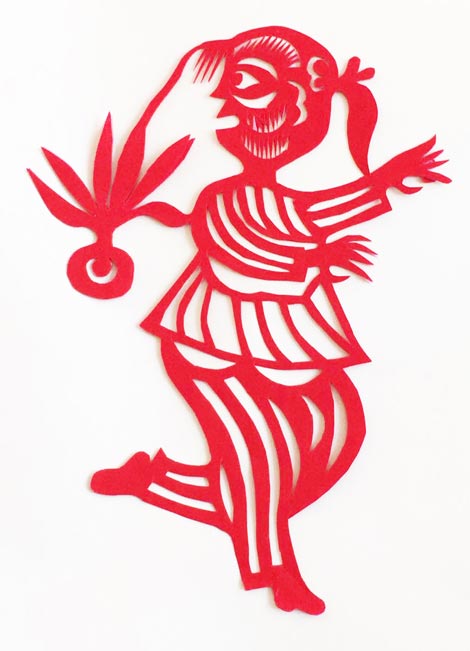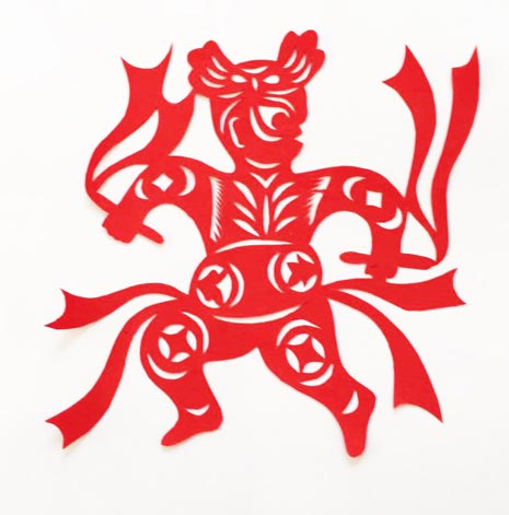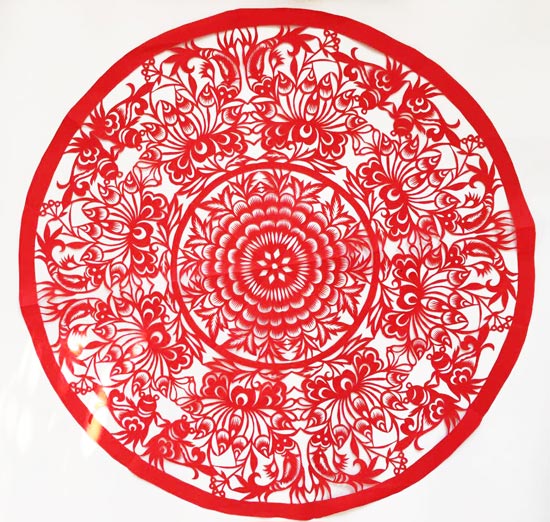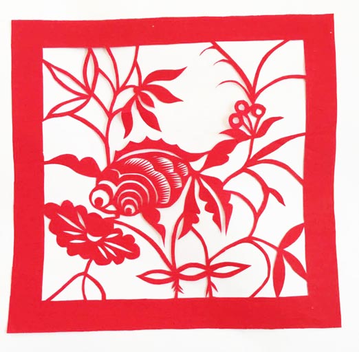 安塞区剪纸能手是马巧霞多年的秧歌腰鼓朋友,她们常让马巧霞一起去剪纸,当时忙着带孩子,裁剪衣服没有时间。2016年11月秧歌朋友推荐她参加安塞区就业局举办为期20天的剪纸培训班,这才又了开始画画和剪纸。在剪纸培训班辅导老师是陈山桥,引导学员们剪纸创作要从简单到复杂,逐步融入到自己思想。她在培训班上创作了石榴、牡丹,团花,大窗花,双葫芦,小女孩,动物等,技法得到很大提高,收获很大。因为是第一次参加培训班,学了很多东西,之后她更有信心的搞剪纸创作。现在忙完做衣服的活,空闲时都在剪纸。和她的秧歌朋友又有更多的共同语言了。