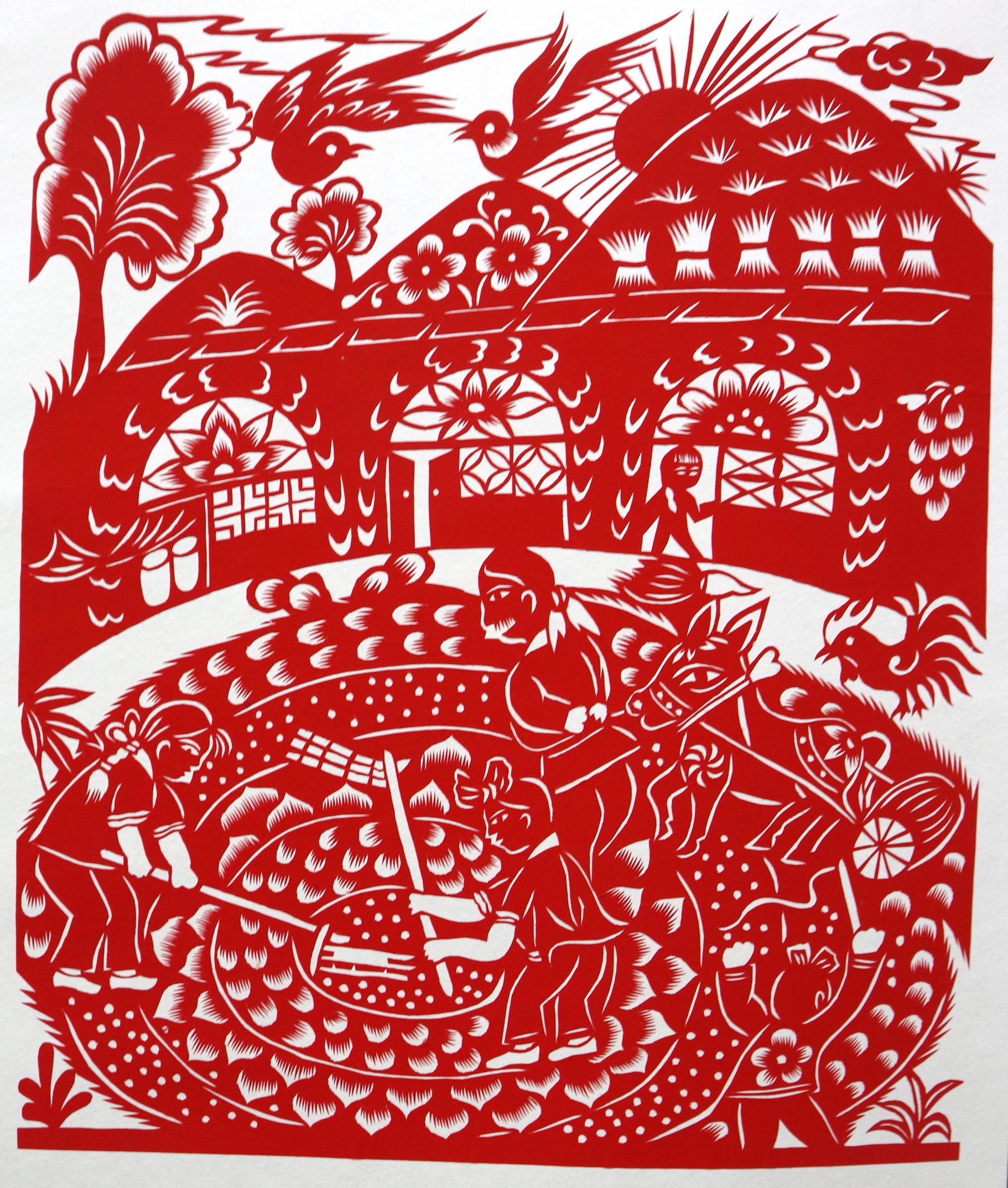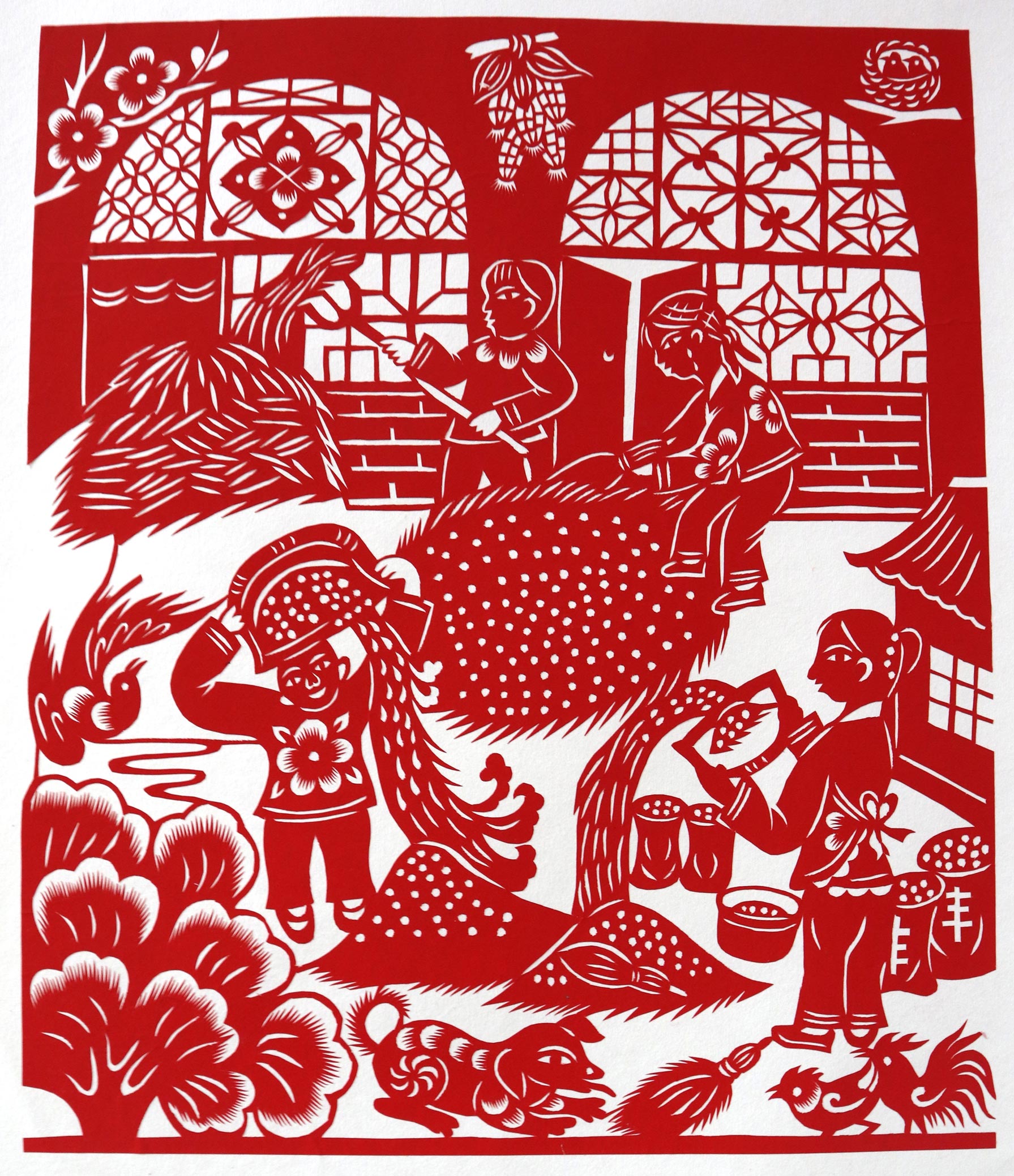 后来,经人介绍给一些从事剪纸生意的商户加工。一次,她老公带着几个样子上门给客户推荐,那人一看特别满意,每个样子都定了10套。激动得她老公出门就给她打电话:“今天没白跑,给你定活儿了,你可有事干了。”在去延安的一次推销中,一客商看了她的作品后,表示大量需要,但给的价钱仅为市场价的三分之一。为了抓住机遇,她果断的签订了合同。接订单之后,她从早上6点一直剪到第二天中午,累得腰酸背痛,但对剪纸的信心更大了。