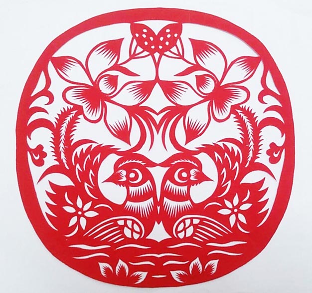 卢艳霞2000结婚,当年21岁。结婚用的剪纸花样都是事先亲手剪好。那年她在小学任教,丈夫没有职业,在家务农。婆家也是清涧县人,公公没有文化,以务农为生,会编筐、扫帚等生活用具。婆婆在家务农,不会什么女工活。丈夫靠打工生活,没有什么手艺,但很喜欢妻子剪纸,不论参加展览、培训他都很支持。婚后生育有2个女儿。两个孩子都很听话,一个爱搞设计,一个爱剪纸。虽然有了孩子很忙,但她没有停下手中的剪刀,在孩子上学后空余时间就动手剪剪。