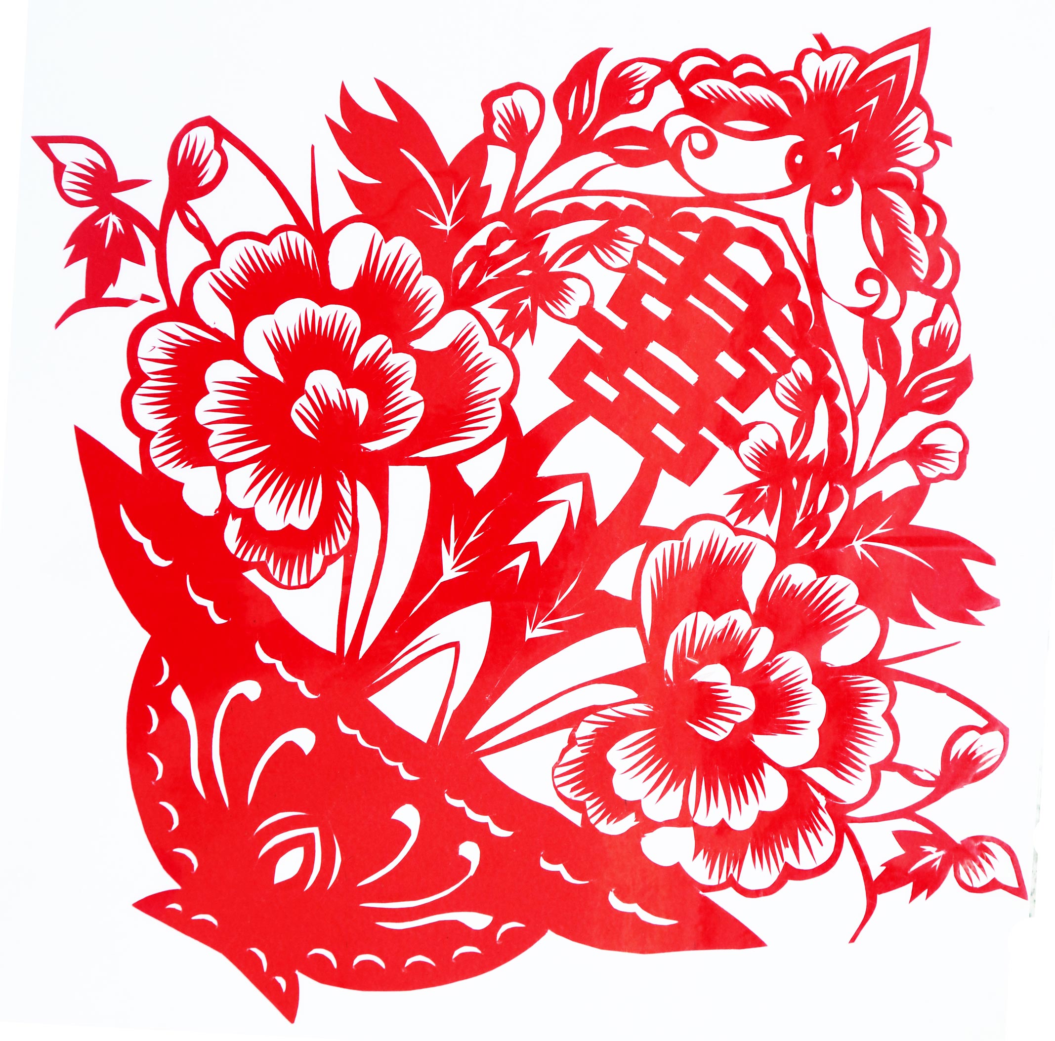 赵文华姊妹4人,她排行老大。上过一年的小学,后来因病停学,在家养病。7、8岁开始学剪一些简单的喜字、燕子、老虎等。开始剪纸是拓样剪的“喜”字。17岁她跟祖母、母亲学习剪纸及其它民间工艺,还帮家里做家务。擅长剪戏曲人物如《三滴血》《火焰驹》等。为了创作新花样,她找人写出时兴的书法字联,再套剪各种花样,创作出花鸟字。过年用的窗花、墙花都是她自己创作。后来把自己创作的窗花进行复剪,腊月跟母亲到集市上卖窗花,以补贴家用。过年时剪的窗花还送给街坊邻居。除了剪纸,赵文花还学会捏面花,婚房布置等。