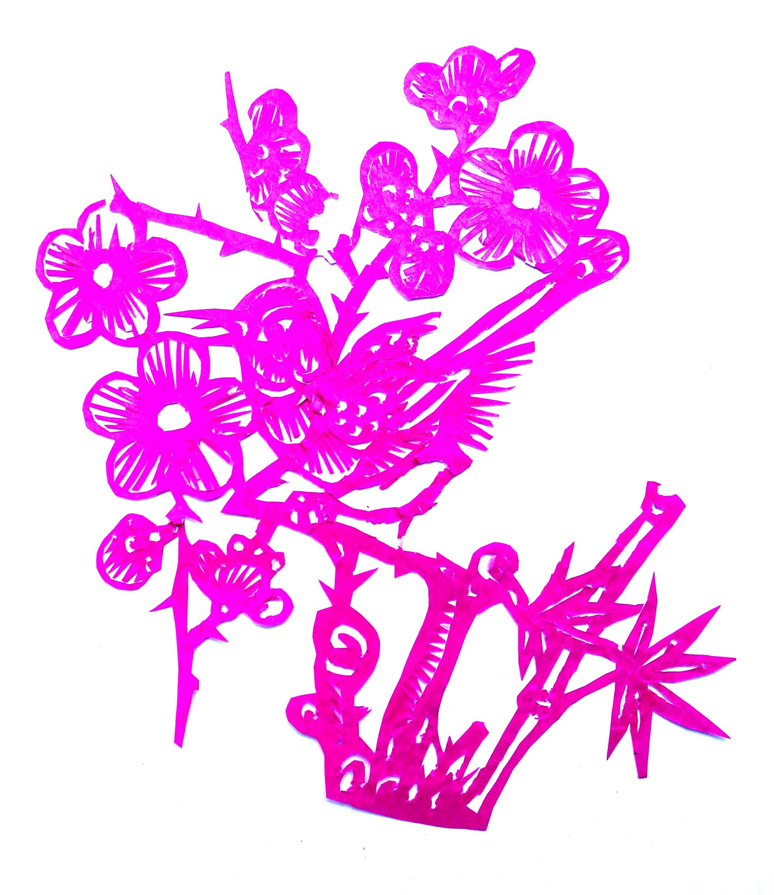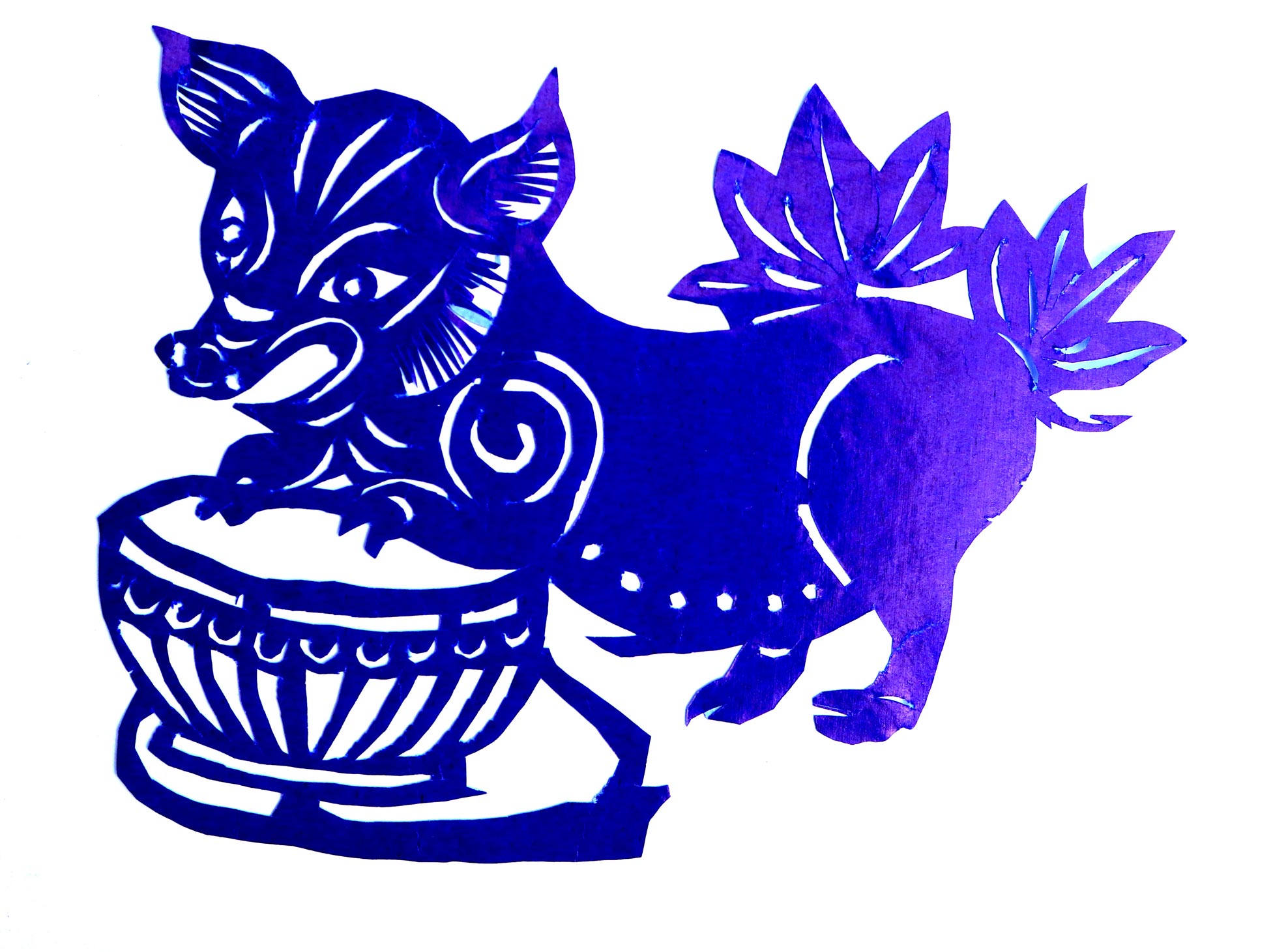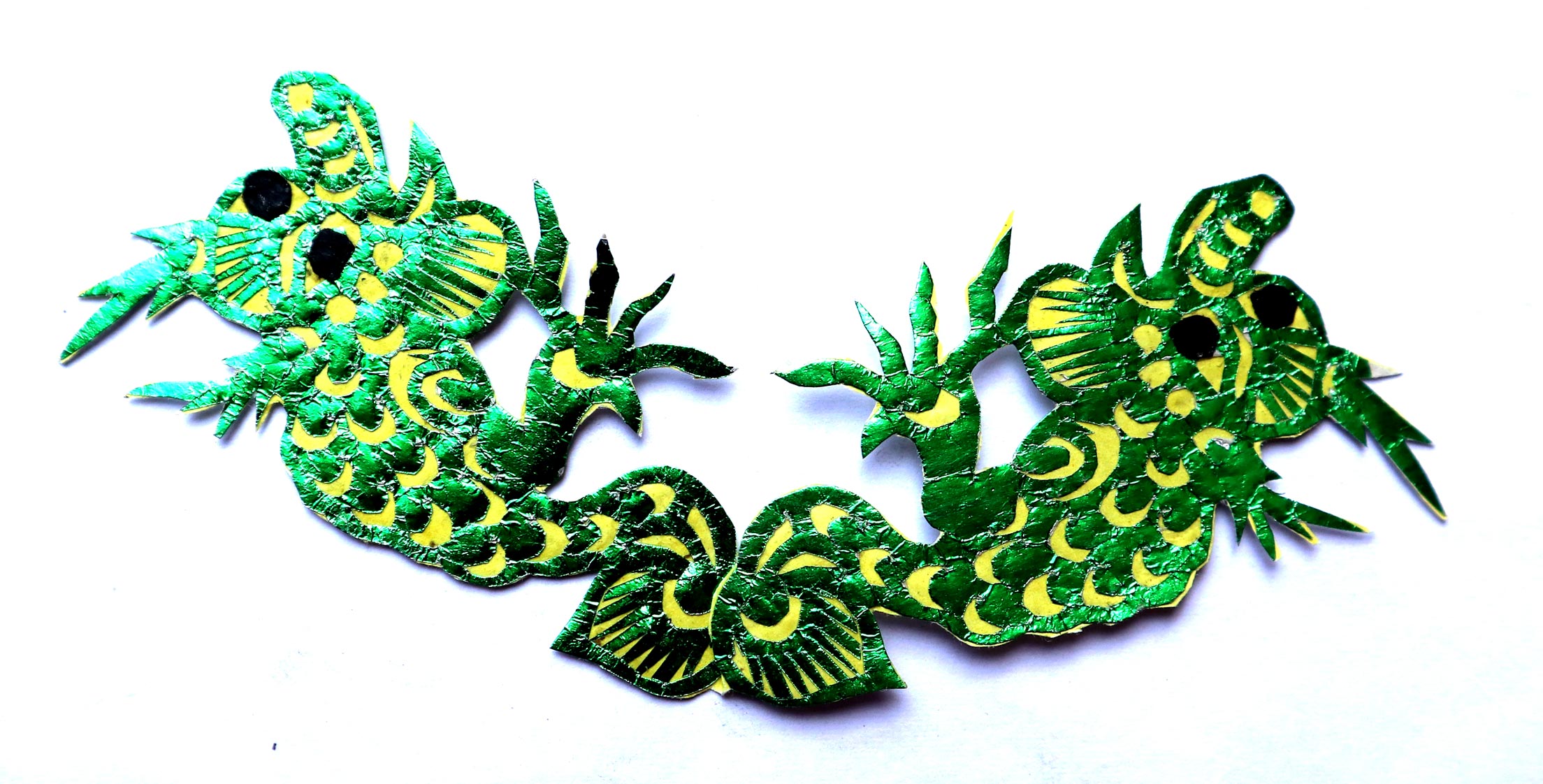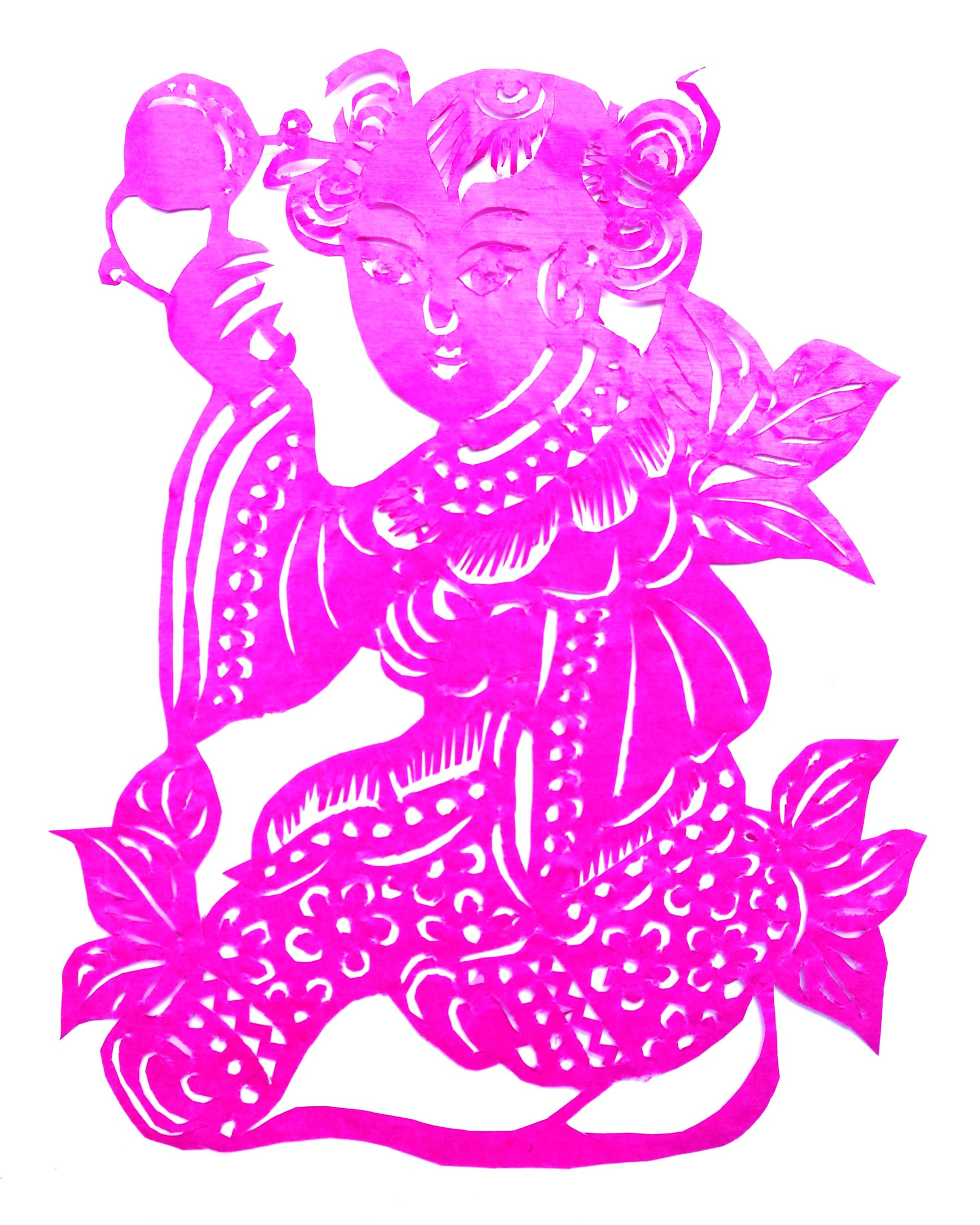 狄忠义没有参加过特别大的展览,所有的剪纸作品都是用于民俗活动,也是为了生活。40岁时作品曾在合阳县文化馆展出,还送到法国展出。狄忠义的剪纸造型生动传神,剪工精巧到位,一丝不苟,特别是用于民俗的金童玉女,其衣服上的每个剪纸纹样精湛细腻,体现出剪纸艺人的工匠精神,让人赞叹。