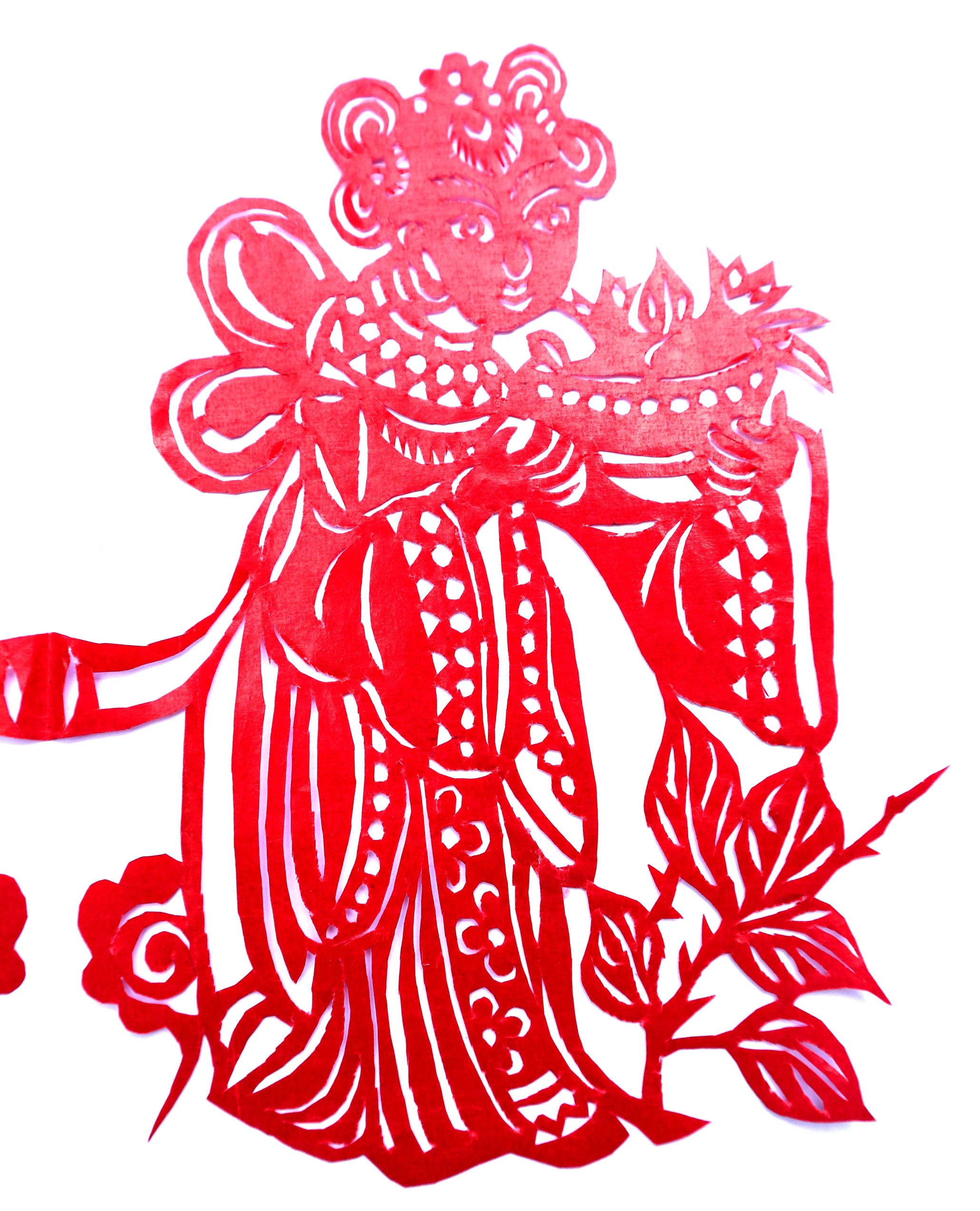 狄忠义的剪纸造型生动传神,剪工精巧到位,一丝不苟,特别是用于民俗的金童玉女,其衣服上的每个剪纸纹样精湛细腻,体现出剪纸艺人的工匠精神,让人赞叹。