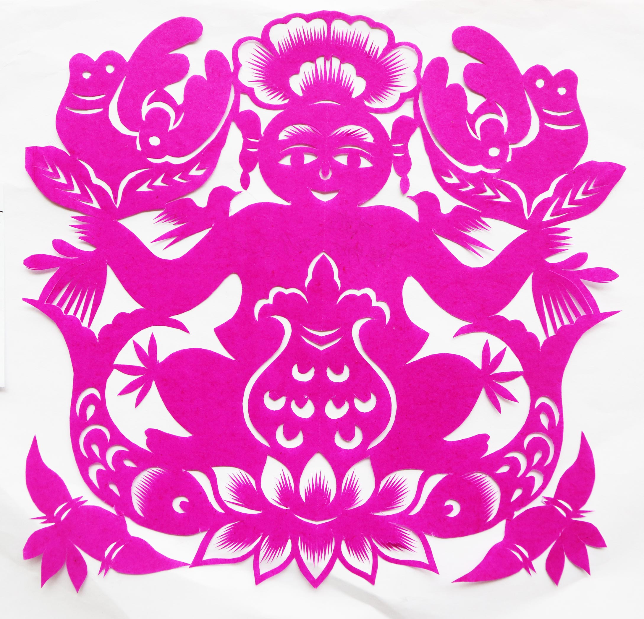 屈丽萍的剪纸风格工巧细腻,淳朴自然,较好地传承着当地民间剪纸的艺术风格。