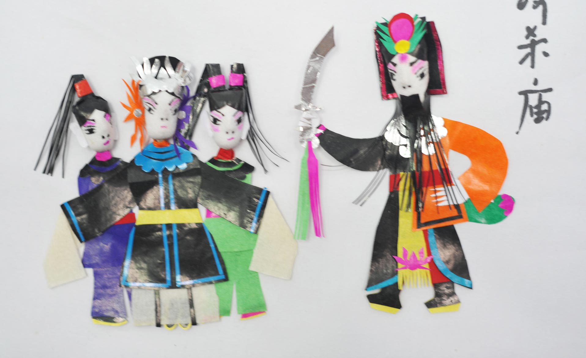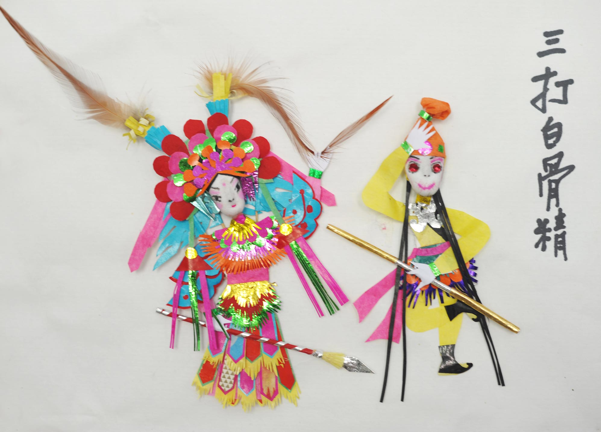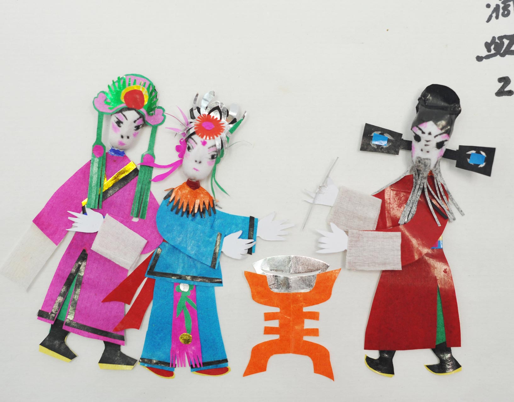 1971年以前剪的花草较多,之后剪的戏文人物较多。罗占花是村上剪人像(纸塑人物)剪纸的巧手,1971年剪人像出了名,就去她家里看,回来就做了一个人像。开始的时候不知道要学,到后来想学了,罗占花不让她看了,怕把手艺学去。罗占花有一幅《四郎探母》作品在洽川珍藏,当时要求是只能展不能销,因为那幅作品的精气神,罗占花自己都无法复制出来。1974年秦牡丹提着点心去让罗老师传授人像剪纸技艺,就是想变相的拜师,但罗老师只把做好的人像拿出来让她看看。开始时秦牡丹在场她就不做了,时间久了才开始在她面前做,给她讲三娘教子,教苏三起解。罗占花做丧葬上的轿子时就把秦牡丹叫上帮她一起,一直学到罗占花去世。后来秦牡丹的剪纸进步很大,村上只要有结婚的村民都请她给剪喜花糊花窗,全村人的喜饭她都吃遍了。丧事给糊扇扇帽,连周边村得人都请她去给帮忙剪花。给别人剪花都是帮忙,从不要任何报酬。
