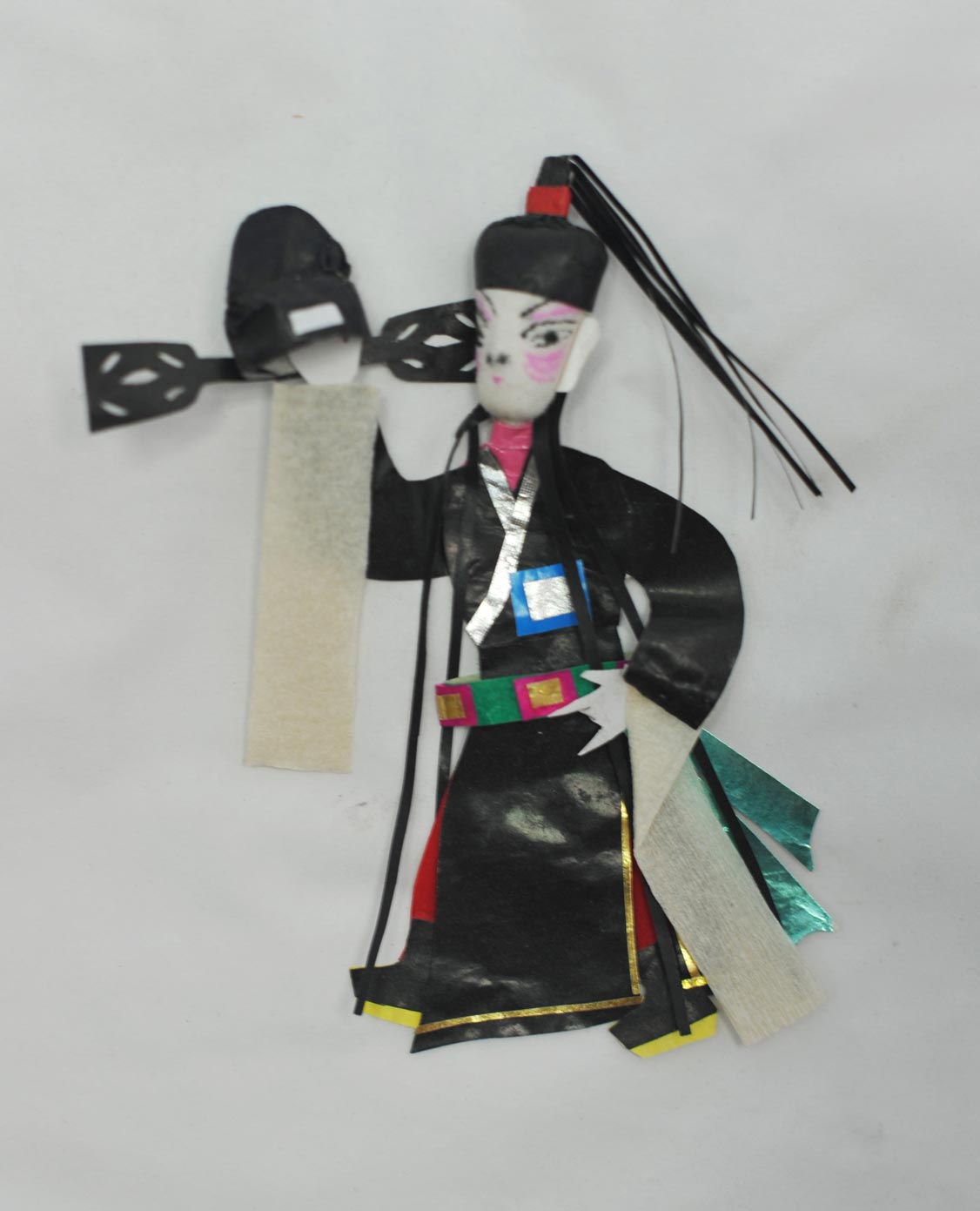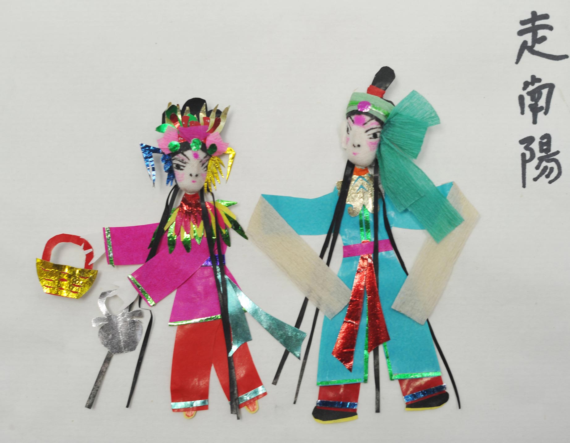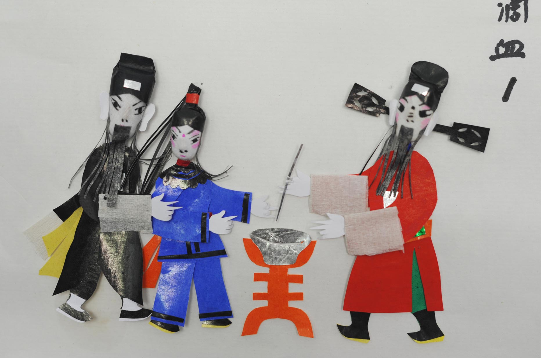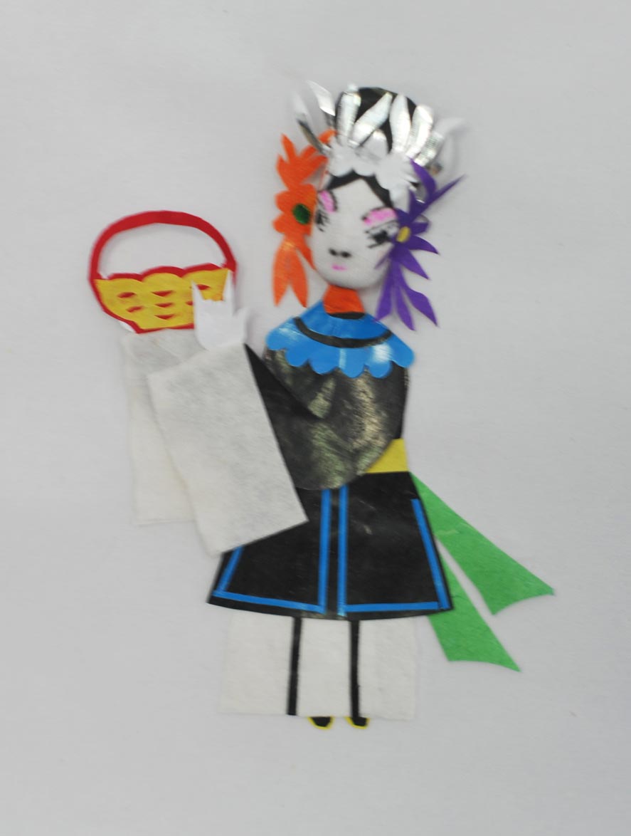 1971年以前剪的花草较多,之后剪的戏文人物较多。罗占花是村上剪人像(纸塑人物)剪纸的巧手,1971年剪人像出了名,就去她家里看,回来就做了一个人像。开始的时候不知道要学,到后来想学了,罗占花不让她看了,怕把手艺学去。罗占花有一幅《四郎探母》作品在洽川珍藏,当时要求是只能展不能销,因为那幅作品的精气神,罗占花自己都无法复制出来。1974年秦牡丹提着点心去让罗老师传授人像剪纸技艺,就是想变相的拜师,但罗老师只把做好的人像拿出来让她看看。开始时秦牡丹在场她就不做了,时间久了才开始在她面前做,给她讲三娘教子,教苏三起解。罗占花做丧葬上的轿子时就把秦牡丹叫上帮她一起,一直学到罗占花去世。后来秦牡丹的剪纸进步很大,村上只要有结婚的村民都请她给剪喜花糊花窗,全村人的喜饭她都吃遍了。丧事给糊扇扇帽,连周边村得人都请她去给帮忙剪花。给别人剪花都是帮忙,从不要任何报酬。