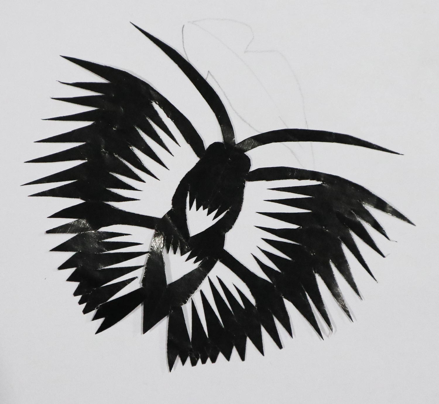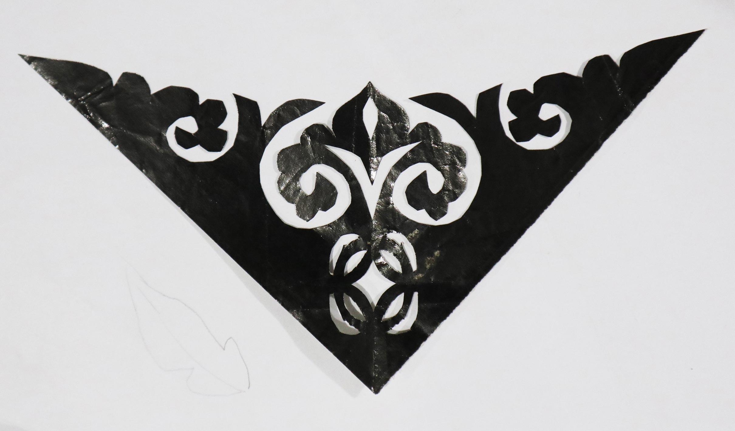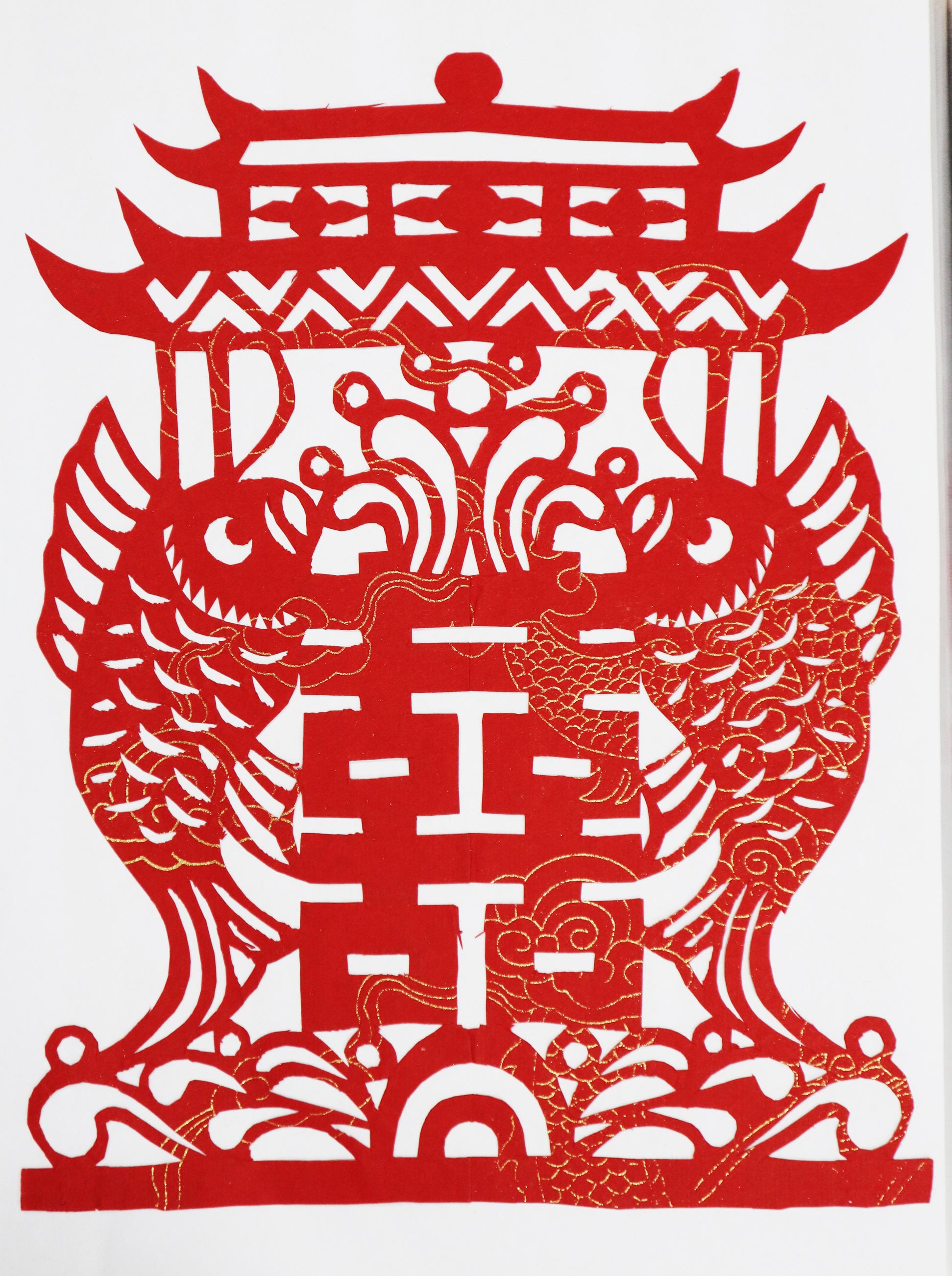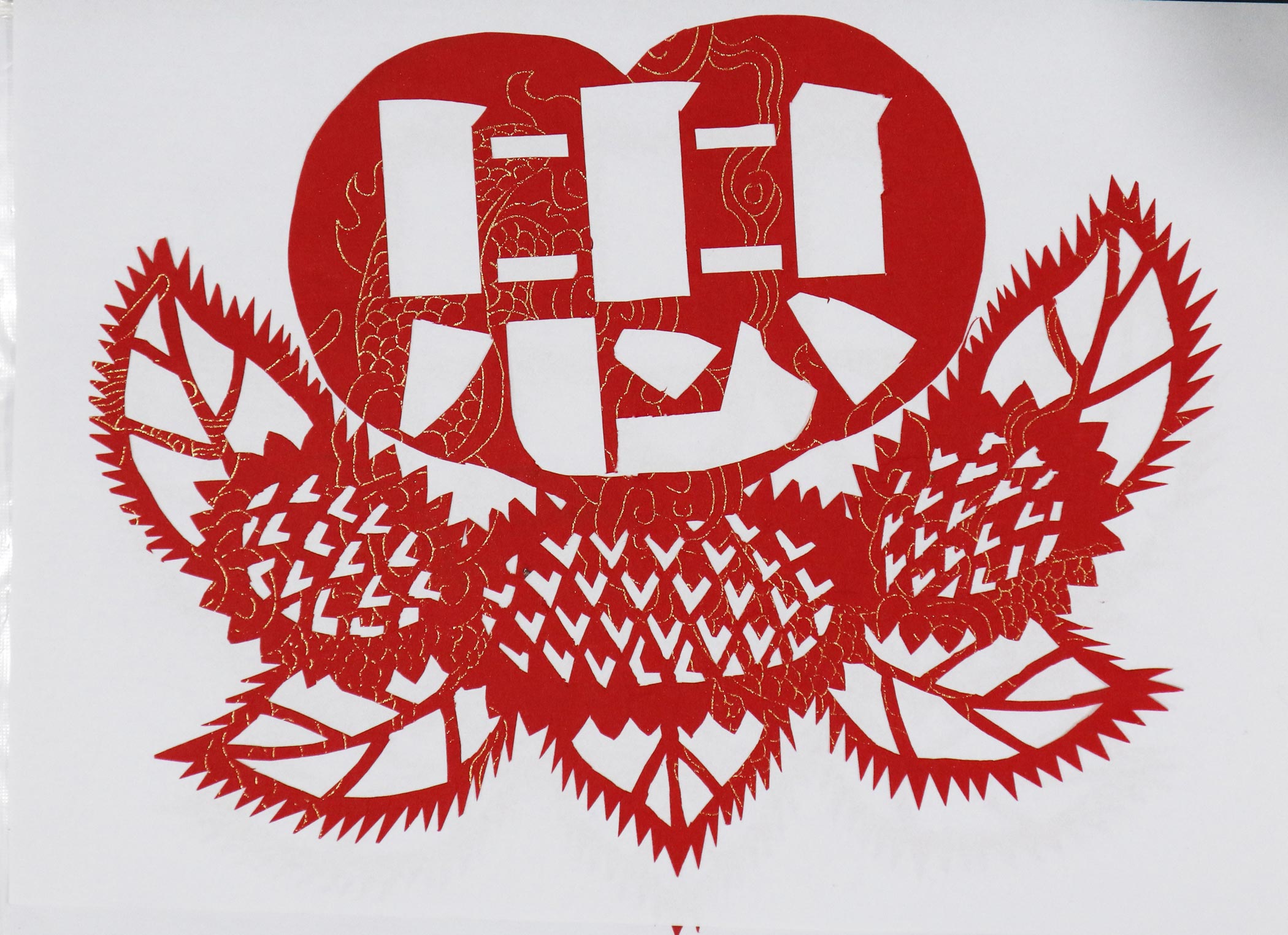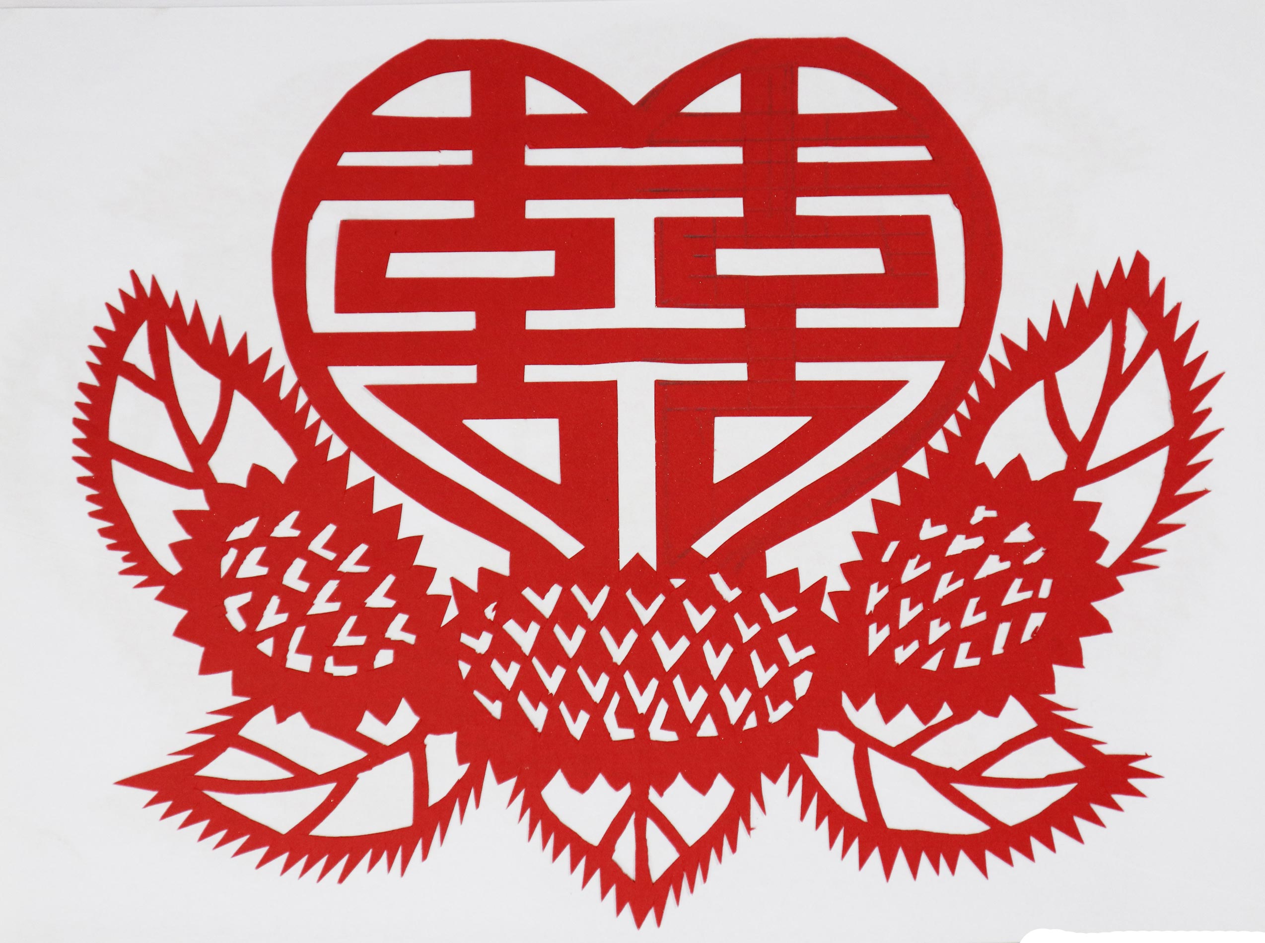当时谁家结婚都给帮忙剪,主家表示感谢送个馍送个手帕。那时窗花都是花草动物,窗子上不贴人物,结婚窗花多是麒麟送子,顶棚花都是黑色,窗花也多是黑色。炕围花主要剪万年青、延安、韶山、五角星、蝙蝠中间加双喜。