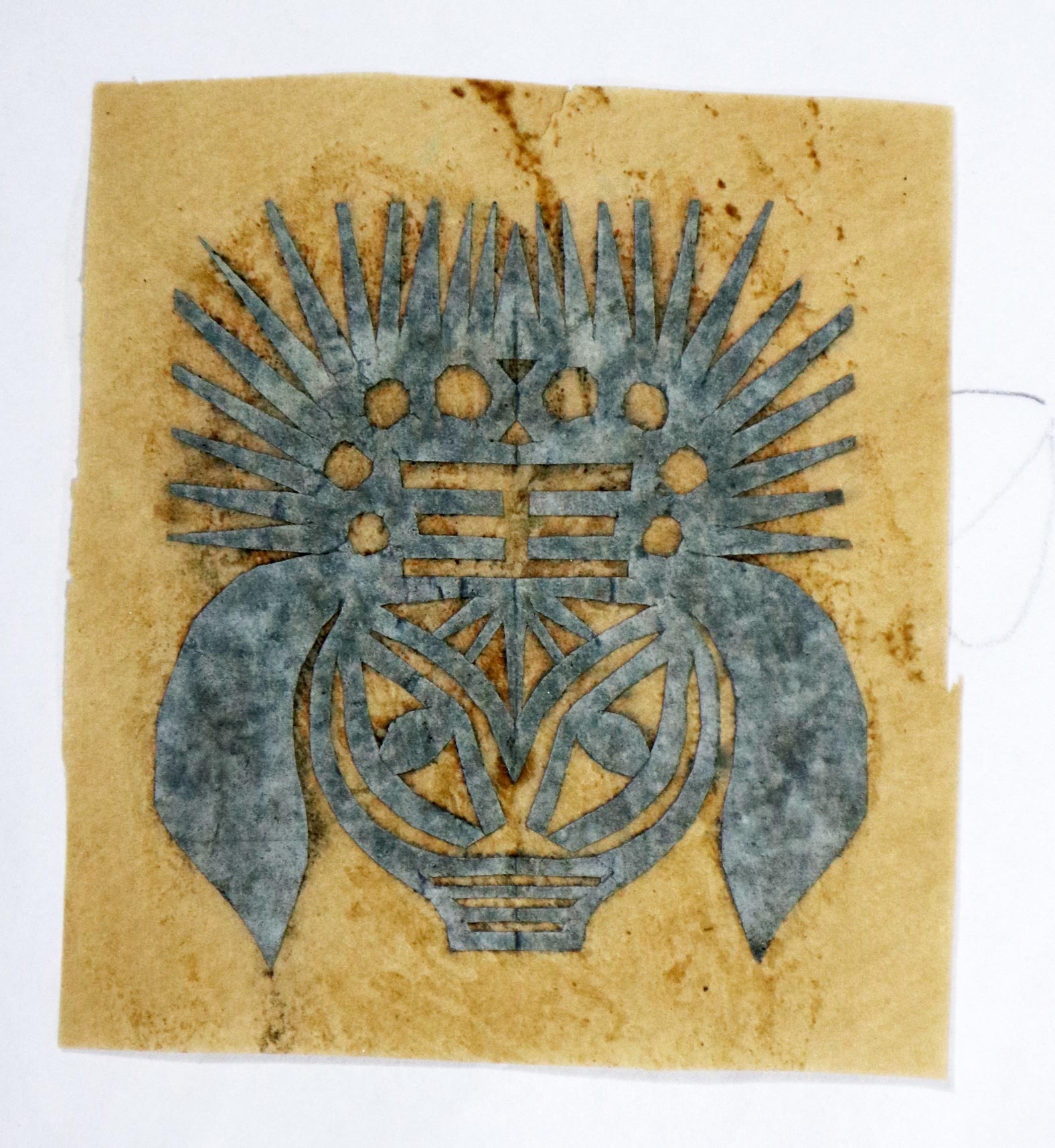 许均科家姊妹9个,他最小,上有6个哥,2个姐。8岁上学,一直上到高中,1973年高中毕业。当时文化大革命,国家停止招生,就回家务农了。15岁开始学剪纸,最初跟着父亲学习,父亲在村上的影响很大。父亲剪自己看,到18岁时开始自己画自己剪。但是正处在文革时期,剪“忠”字,剪毛主席像,给村里人剪喜花,那时的喜花是向日葵上加双喜字,花盆里种万年青,都是自己画,即便有样子也是先画出来再剪,没有拓样子剪过。当时在学校给同学结婚剪喜花,同学结婚都早,没有现在的大龄学生。在学校办黑板报、墙报上多剪回纹装饰。在学校喜爱画画,画样板戏,画农业学大寨,工业学大庆,画主席像。过年用的窗花都是自己剪自己贴,腊月28日前贴好。剪窗花的内容多是花草,忠字,花草有石榴、桃、佛手、牡丹、莲花等。