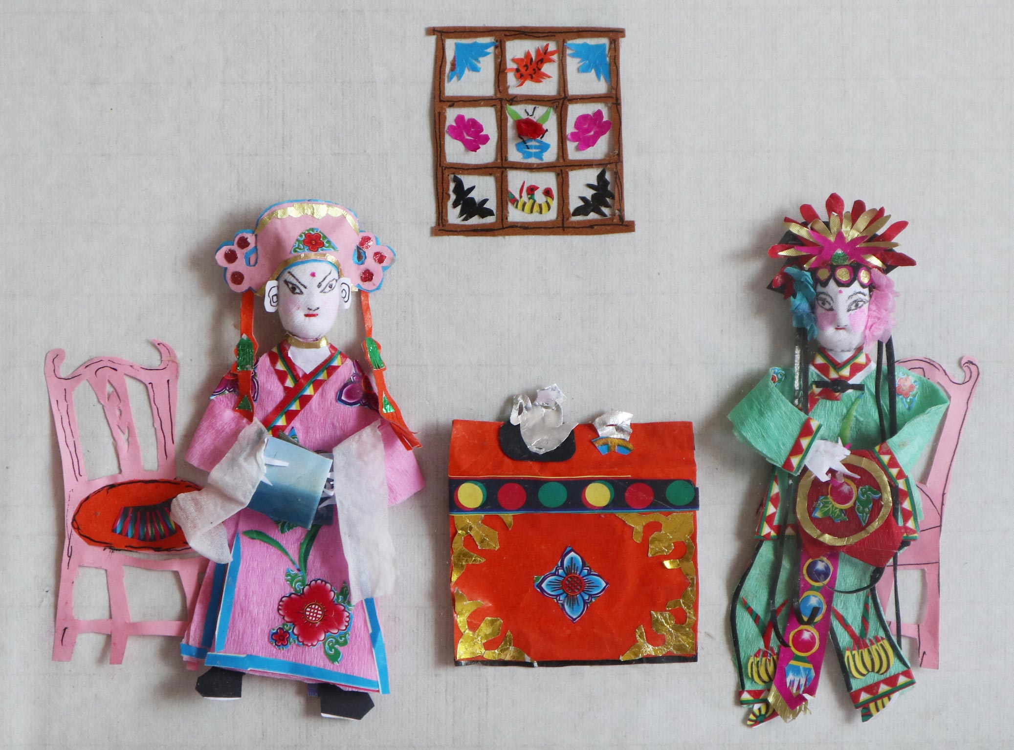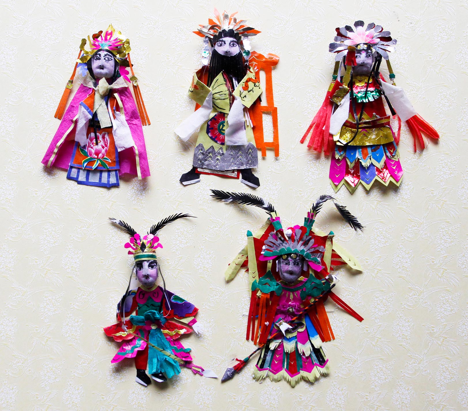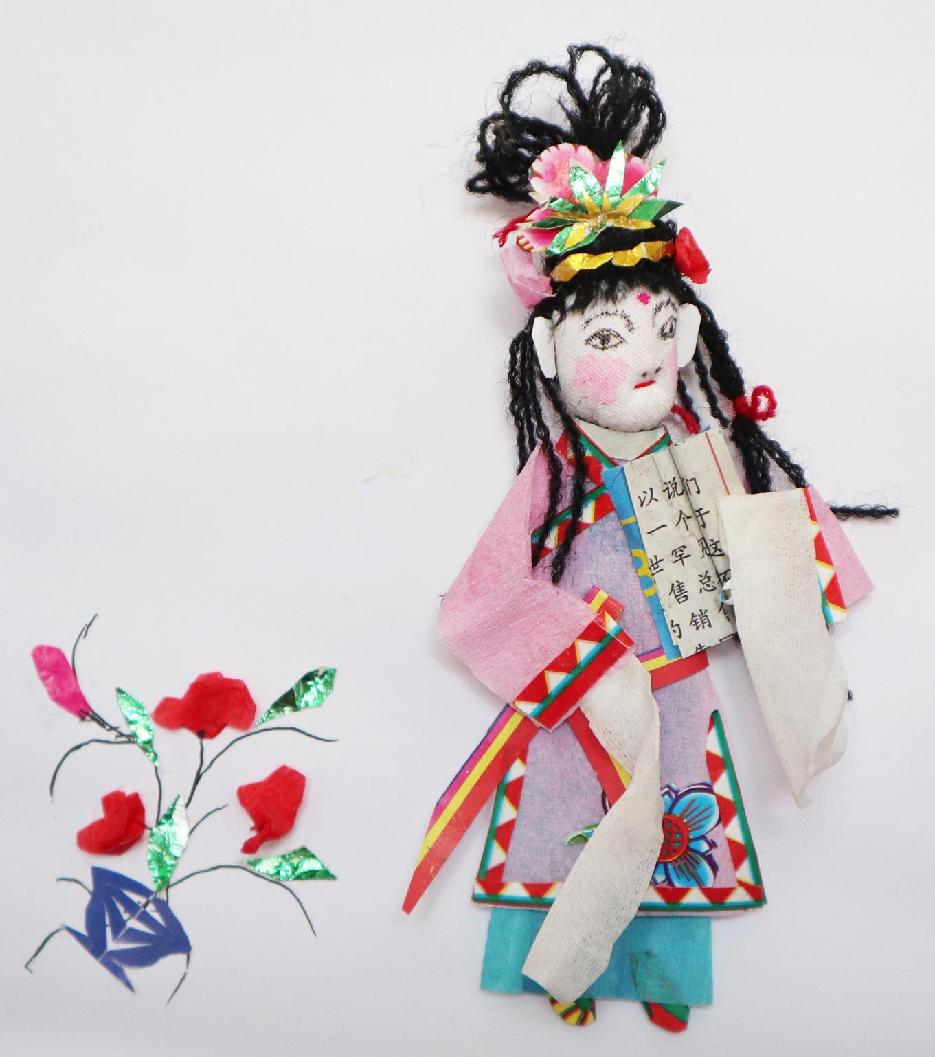 刘民芳兄妹四人,她排行第二。8岁上学,初中毕业。15岁跟随奶奶、姑奶奶、母亲学习剪纸纸塑窗花艺术,受姑奶奶刘月肖的影响最大。当时拓着样子剪了第一幅剪纸,内容是大红公鸡,第一幅纸塑窗花上的人物是三娘教子,是仿照姑奶奶的作品做的,姑奶奶都是现场边做边指导。还在上初中时,因受家庭剪纸艺术环境的影响。每年冬季学校放寒假时就跟着奶奶、母亲和姑奶奶身后,由他们指导学习,开始仅限于剪窗花,后来慢慢独立设计剪窗角和窗眼,熟练之后慢慢又做纸花塑,人物塑,也因为不用心而挨过母亲的责备。小时候尽管农村生活艰苦,物质条件较差,但家庭文化气息相对较好,没有影响到学习剪纸。合阳过年比较讲究窗花,重视纸塑窗花。窗花中的窗角窗眼全部为冒剪,其它部分会剪用于观赏的纸折人物塑、纸花塑。20岁已经学会冒剪窗花。还学会裁剪衣服,刺绣、织布纺线、制作面花,这些都是跟奶奶、母亲学的。1974年参加合阳县文化馆创作班,当时一边参加劳动,一边进行创作,创作了《兄妹开荒》《十二生肖》,辅导老师为史耀增,史老师是合阳民俗界的重量级人物,对剪纸工艺及民俗有很深的研究,他认可刘民芳的作品,给予很大的鼓励。
