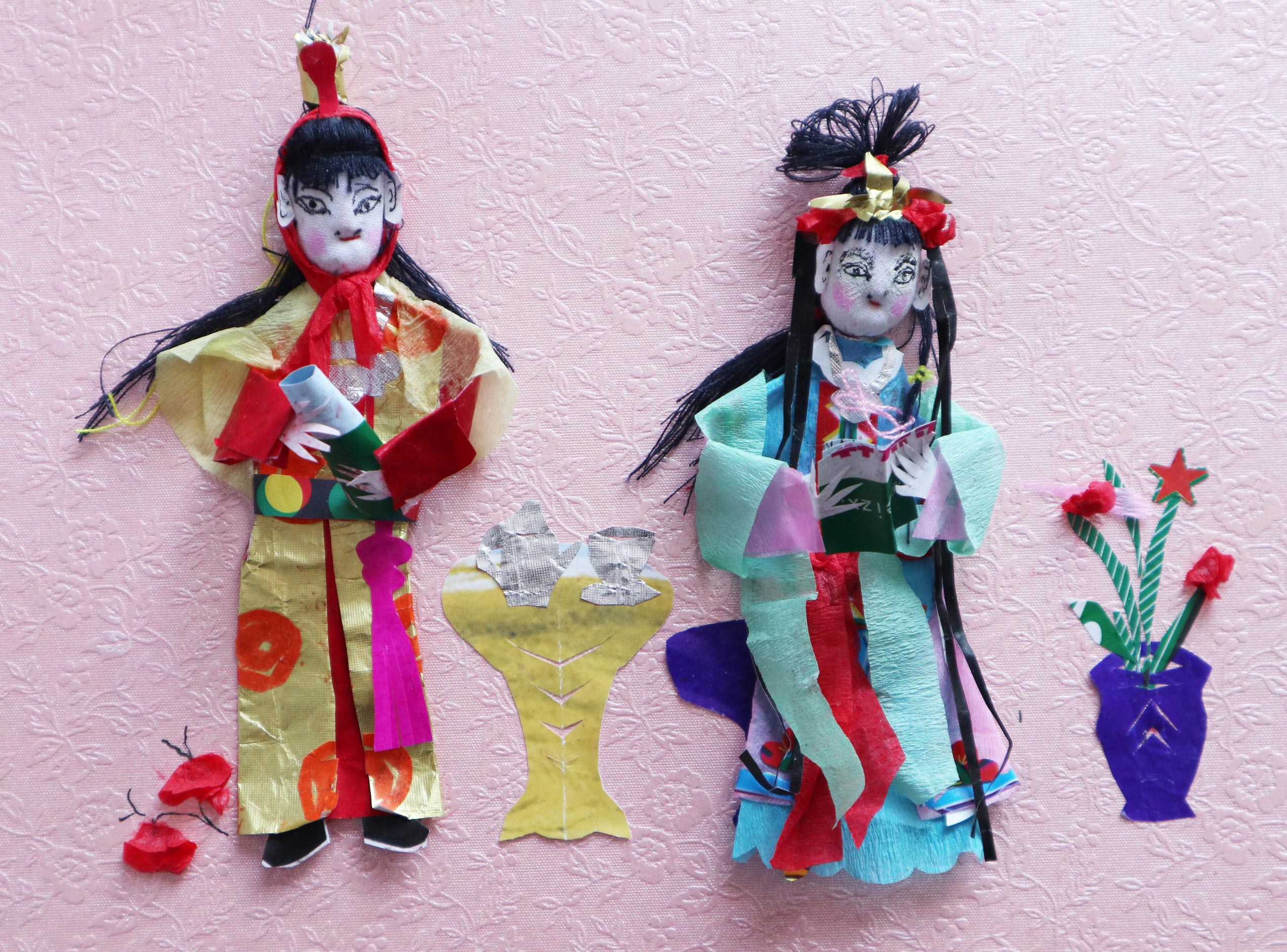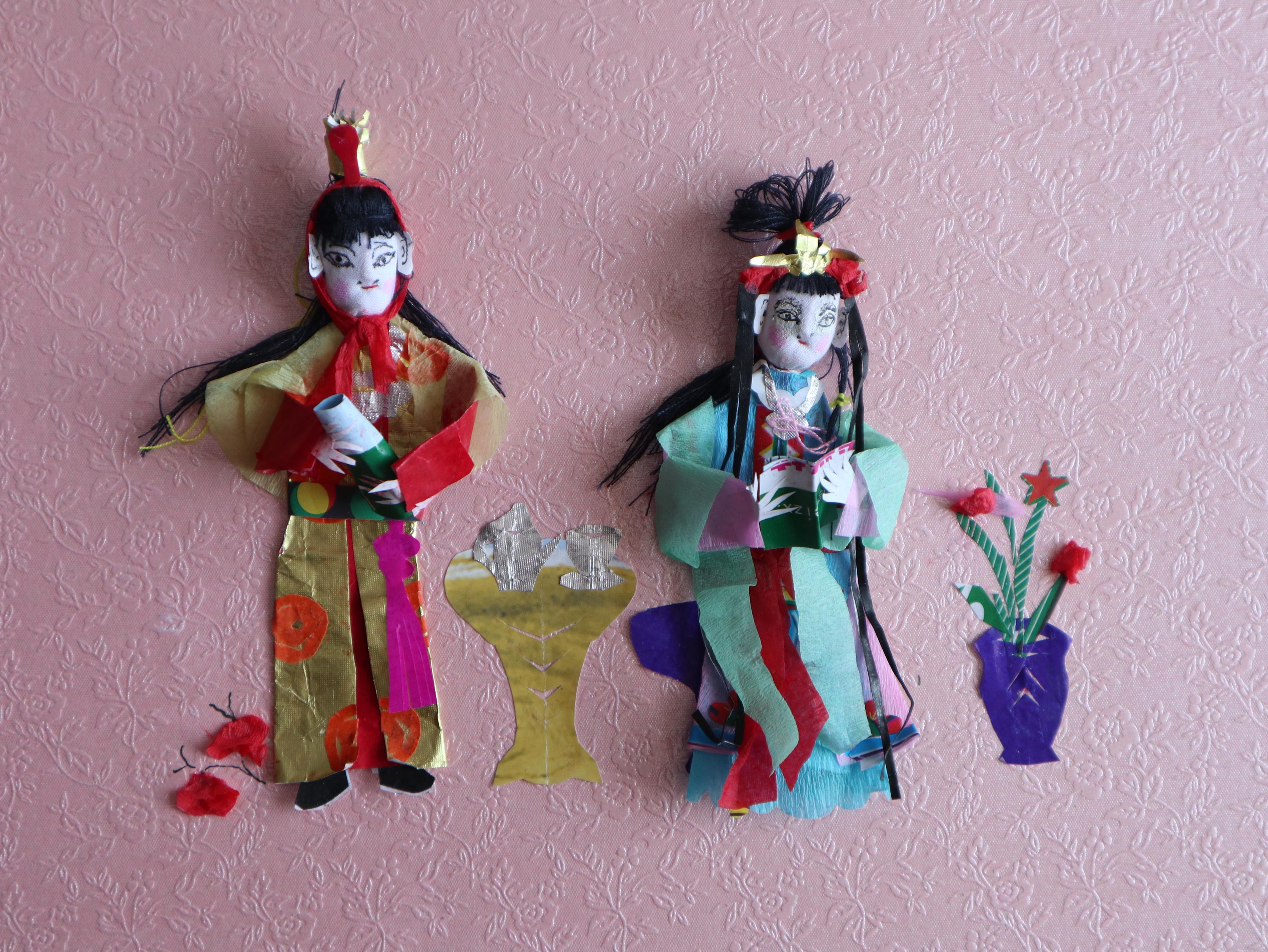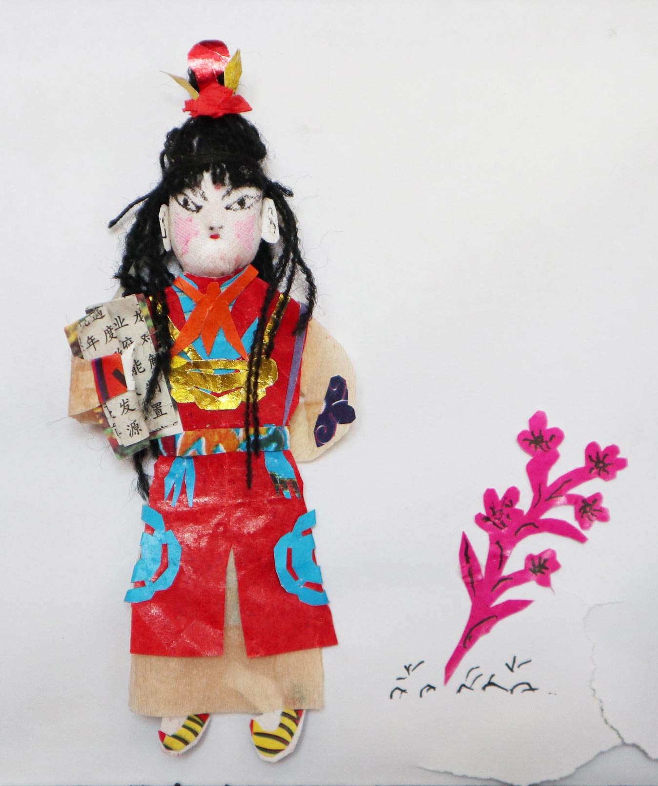 刘民芳兄妹四人,她排行第二。8岁上学,初中毕业。15岁跟随奶奶、姑奶奶、母亲学习剪纸纸塑窗花艺术,受姑奶奶刘月肖的影响最大。当时拓着样子剪了第一幅剪纸,内容是大红公鸡,第一幅纸塑窗花上的人物是三娘教子,是仿照姑奶奶的作品做的,姑奶奶都是现场边做边指导。还在上初中时,因受家庭剪纸艺术环境的影响。每年冬季学校放寒假时就跟着奶奶、母亲和姑奶奶身后,由他们指导学习,开始仅限于剪窗花,后来慢慢独立设计剪窗角和窗眼,熟练之后慢慢又做纸花塑,人物塑,也因为不用心而挨过母亲的责备。小时候尽管农村生活艰苦,物质条件较差,但家庭文化气息相对较好,没有影响到学习剪纸。合阳过年比较讲究窗花,重视纸塑窗花。窗花中的窗角窗眼全部为冒剪,其它部分会剪用于观赏的纸折人物塑、纸花塑。20岁已经学会冒剪窗花。还学会裁剪衣服,刺绣、织布纺线、制作面花,这些都是跟奶奶、母亲学的。1974年参加合阳县文化馆创作班,当时一边参加劳动,一边进行创作,创作了《兄妹开荒》《十二生肖》,辅导老师为史耀增,史老师是合阳民俗界的重量级人物,对剪纸工艺及民俗有很深的研究,他认可刘民芳的作品,给予很大的鼓励。