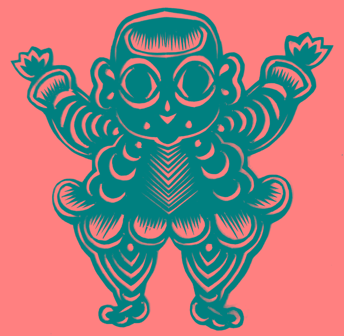 贺强,2000年8月生,从8岁起自学剪纸、面塑等多种民间手工艺。2011年,拜渭南剪纸能手栾旭初为师学习剪纸技艺, 2012年入洛川著名民间艺术大师杨梅英门下学习民间艺术。杨梅英老婆婆,不识字,但是一位民间艺术的巧手,擅于剪纸、面花、刺绣、农民画、泥塑。她用朴素的语言,向贺强讲述世界、宇宙、神灵,给他带来无限灵感。