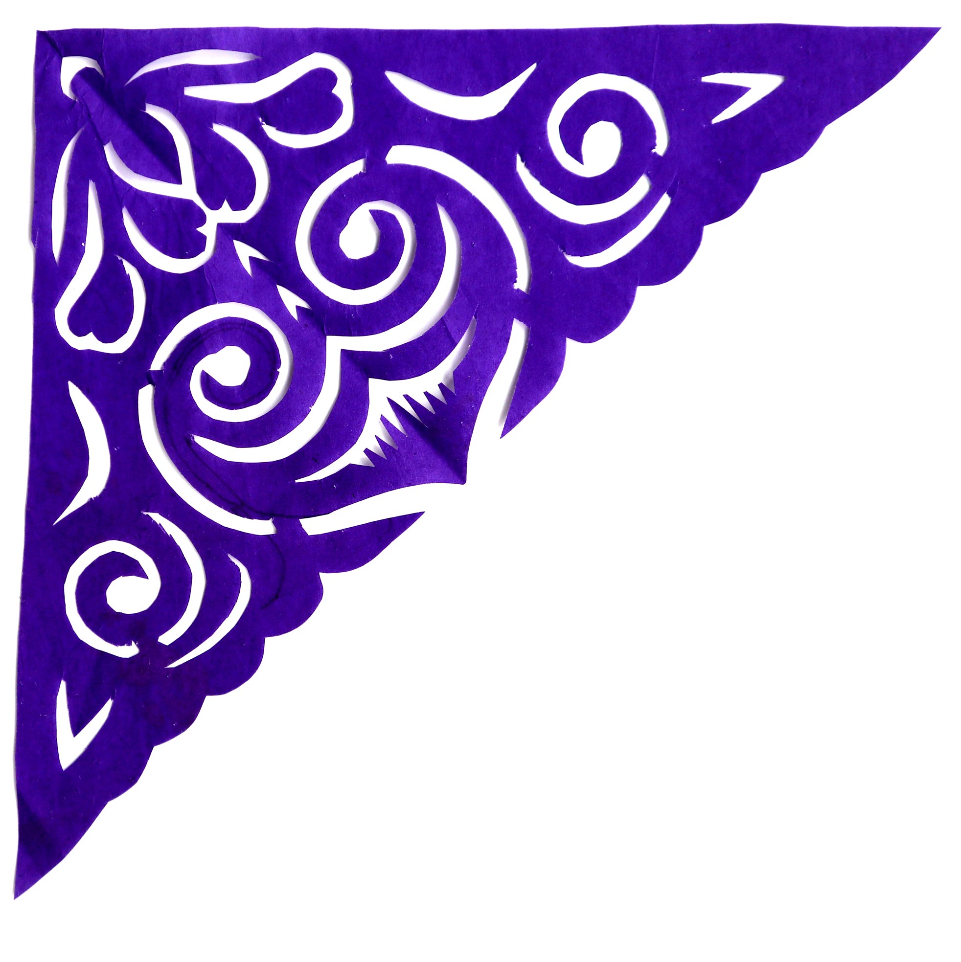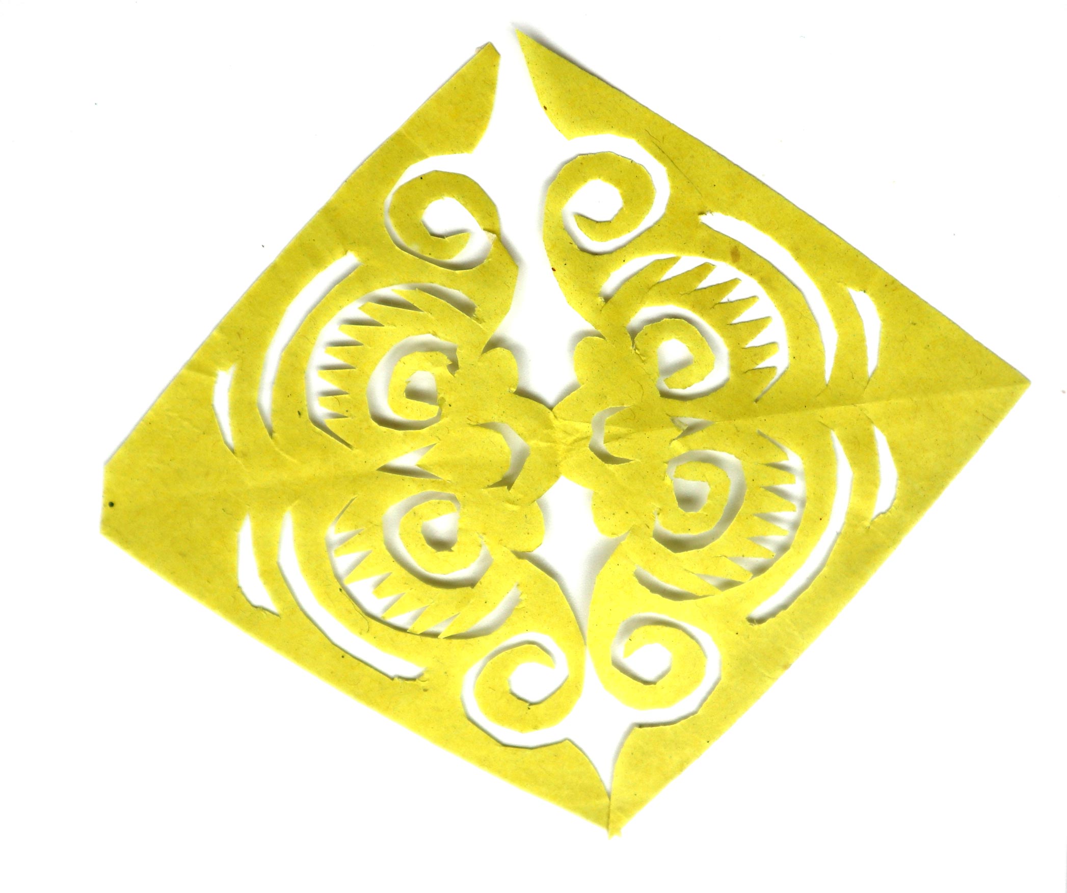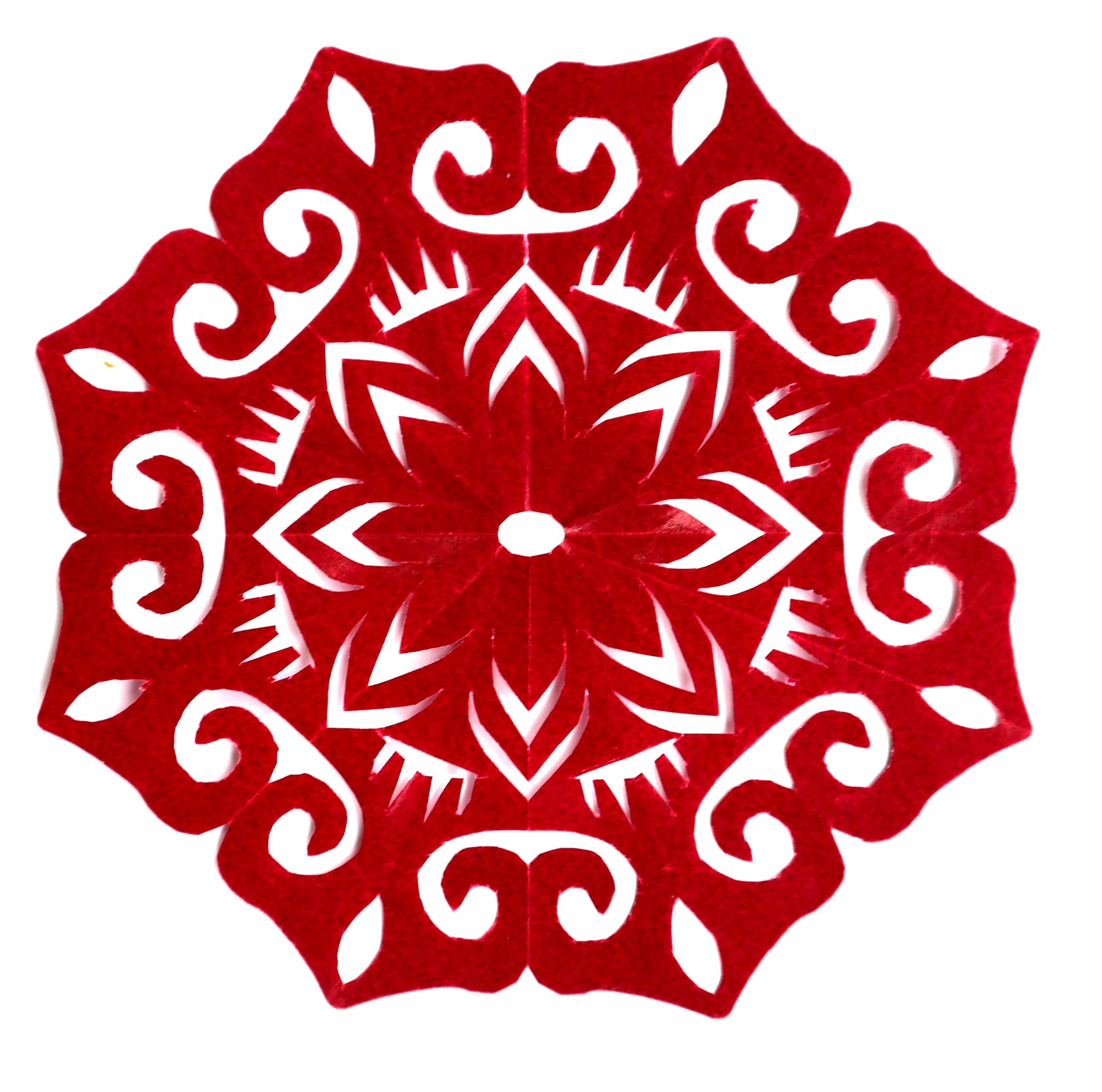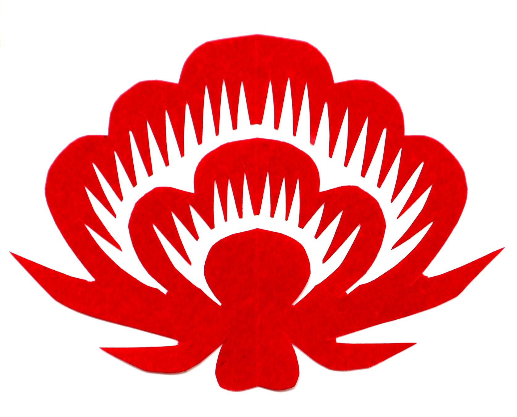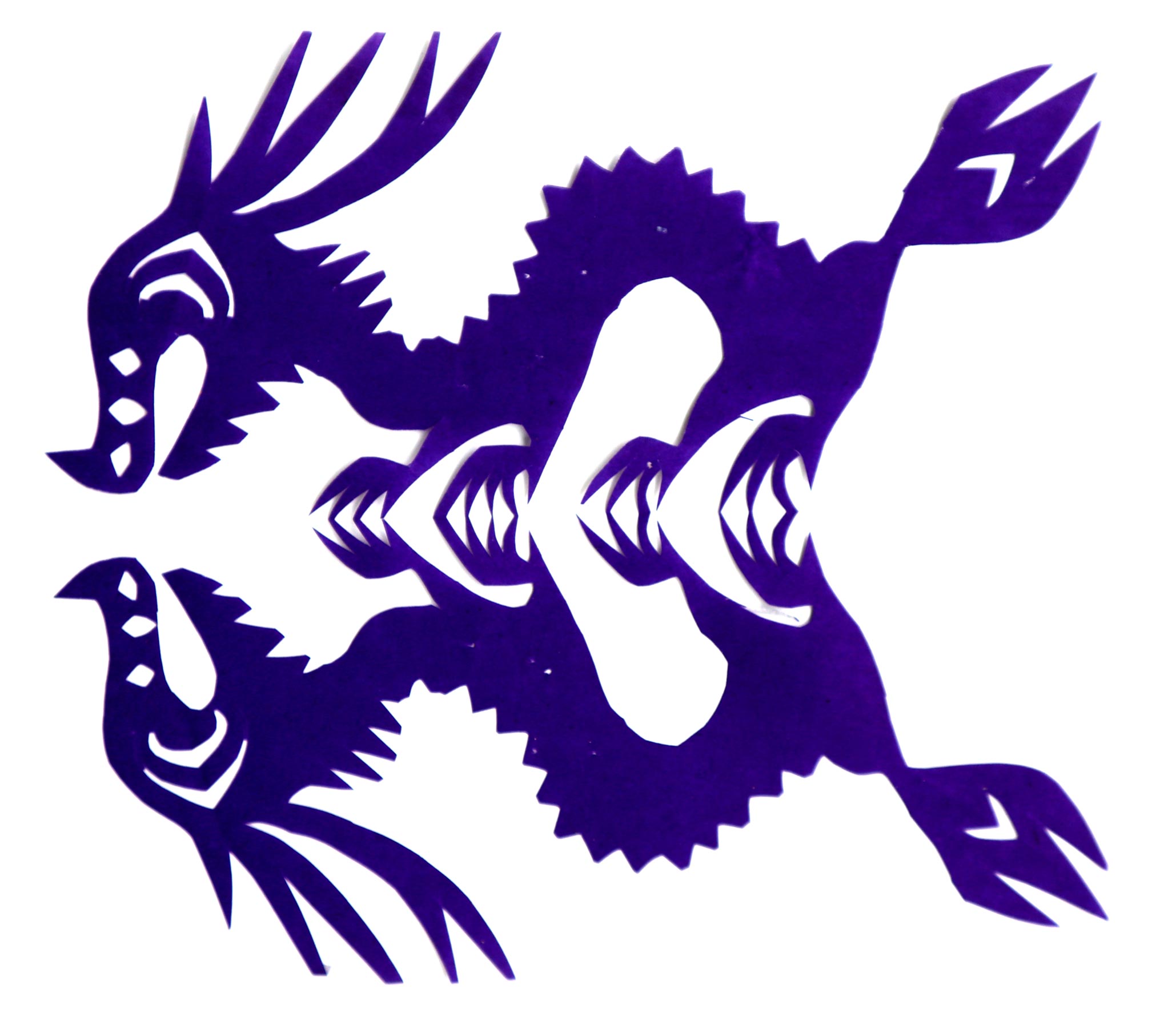 唐玉莲的剪纸作品主要用于庙宇活动。她剪的门符,寿字团花等,造型古朴厚重,有陵墓石刻的艺术气质。