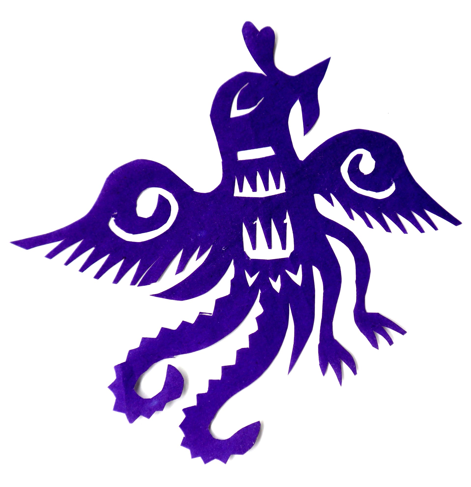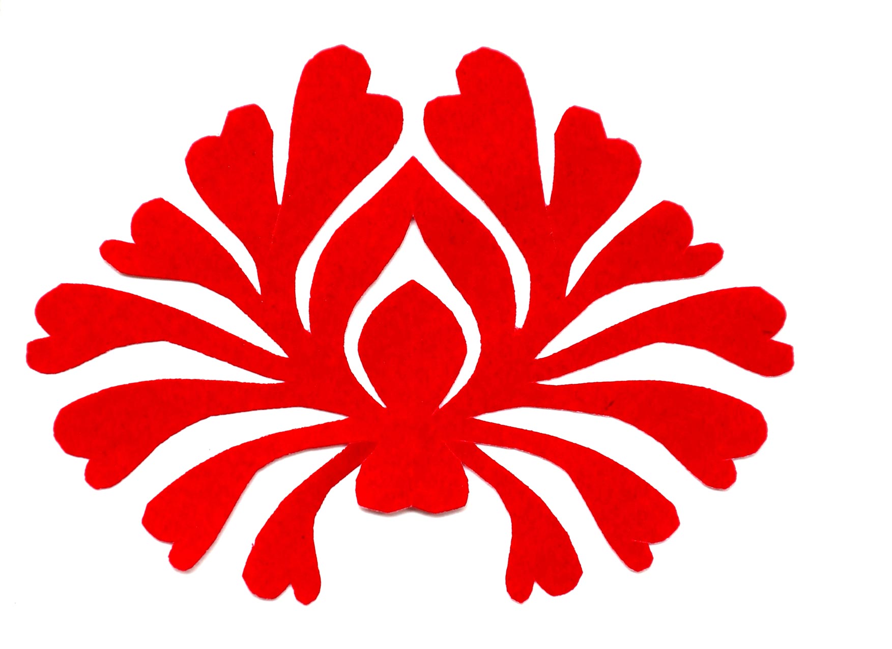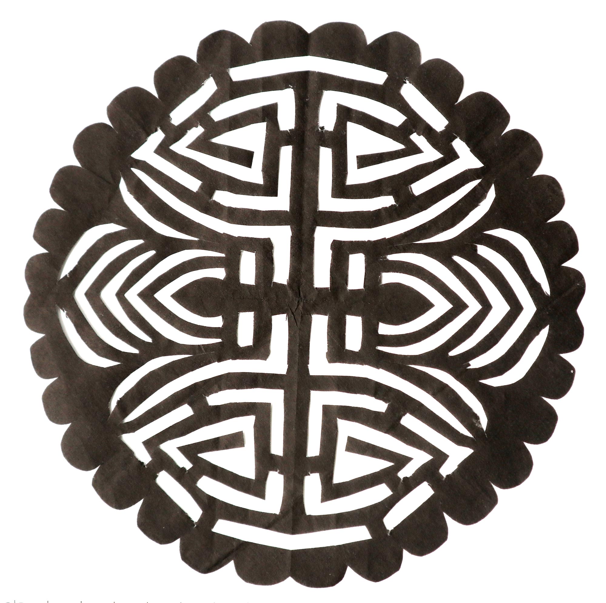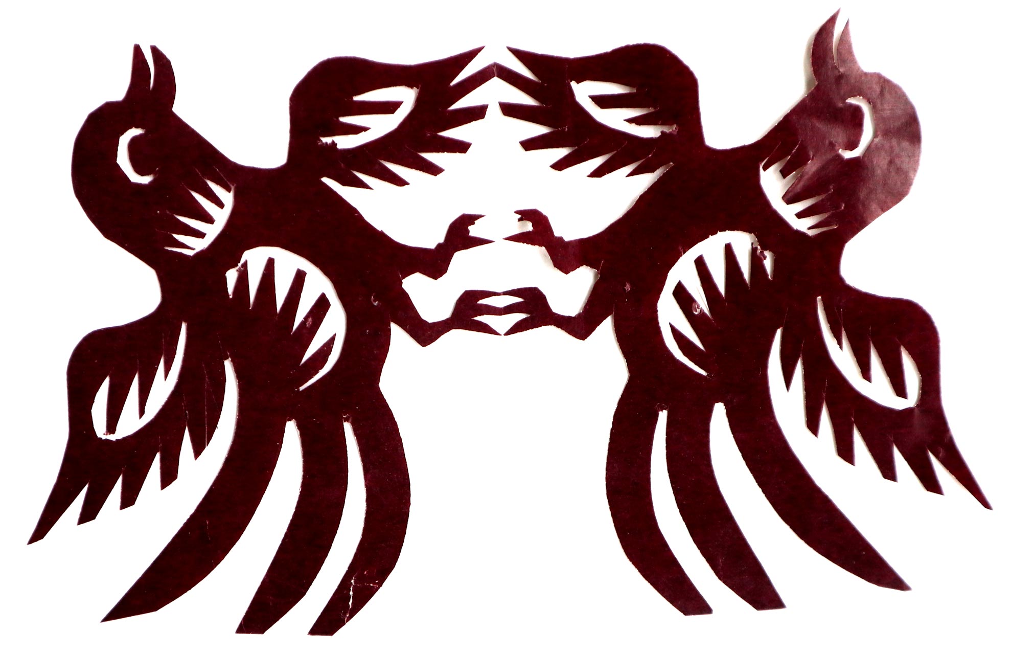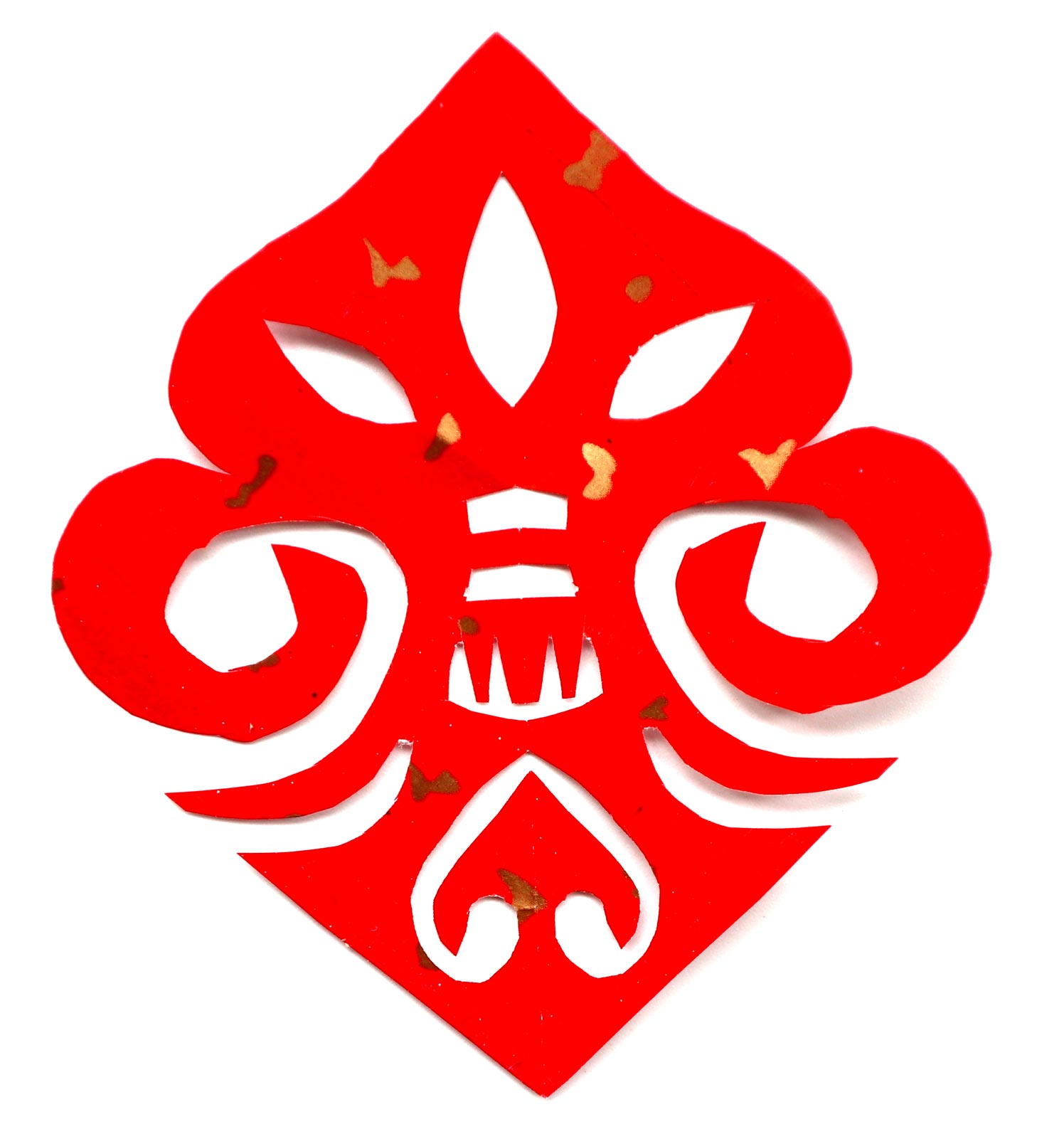唐玉莲的剪纸作品主要用于庙宇活动。她剪的门符,寿字团花等,造型古朴厚重,有陵墓石刻的艺术气质。