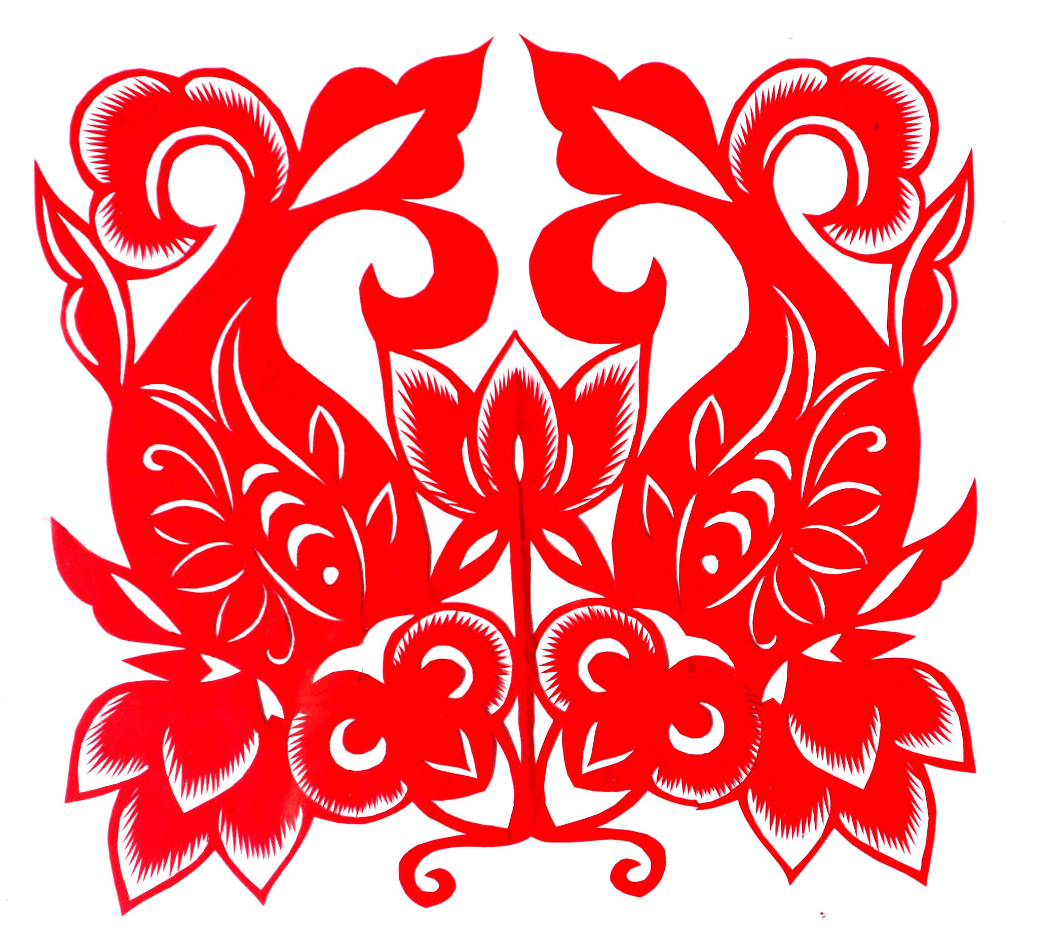12岁时开始自学剪纸。常与村上不上学的女娃娃聚在一起剪纸扎花,主要是拓着样子剪窗花。人家有啥好样子,拿回来用油灯薰样,自己就开始剪。村上有个媳妇儿手特别巧,刺绣花样都能行,她们常常让这个媳妇给画样子,再拿回家剪。当年就开始自己家过年剪窗花,贴窗花。