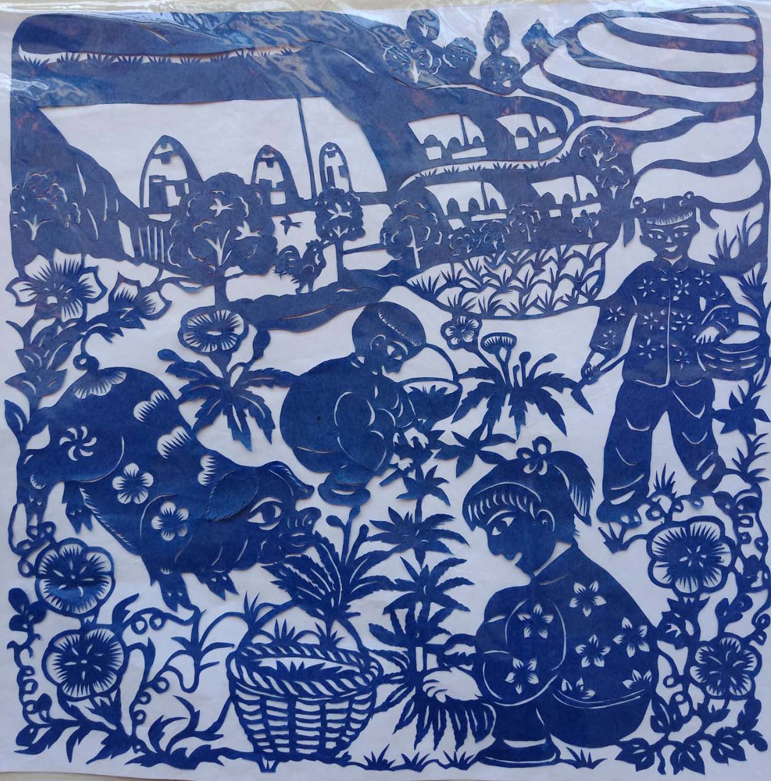 刘文,女,1964 年出生于甘肃镇原——陇东文化的重要地区。受陇东文化的影响和熏陶,在祖辈技艺的传承下,从小就酷爱刺绣,剪纸等手工艺品制作。在方圆十多里地,人家婚丧嫁娶都来请她剪纸,作为装饰和送丧的贡品(当地习俗)。 她刺绣继承陇绣的传统特点:古朴,敦厚,还带细腻情感和现代生活的艺术文化。剪纸也继承山塬派的特点:粗中有细,细中有粗,块面与线条,虚与实像结合,将粗犷,奔放,夸张,古朴细腻,工稳结合在一起,构象独特,生意盎然。把自己对人物,花卉,景色,动物及各种景象的观察作为作品的题材,把生活化为艺术,把艺术作为生活来展示给人们。