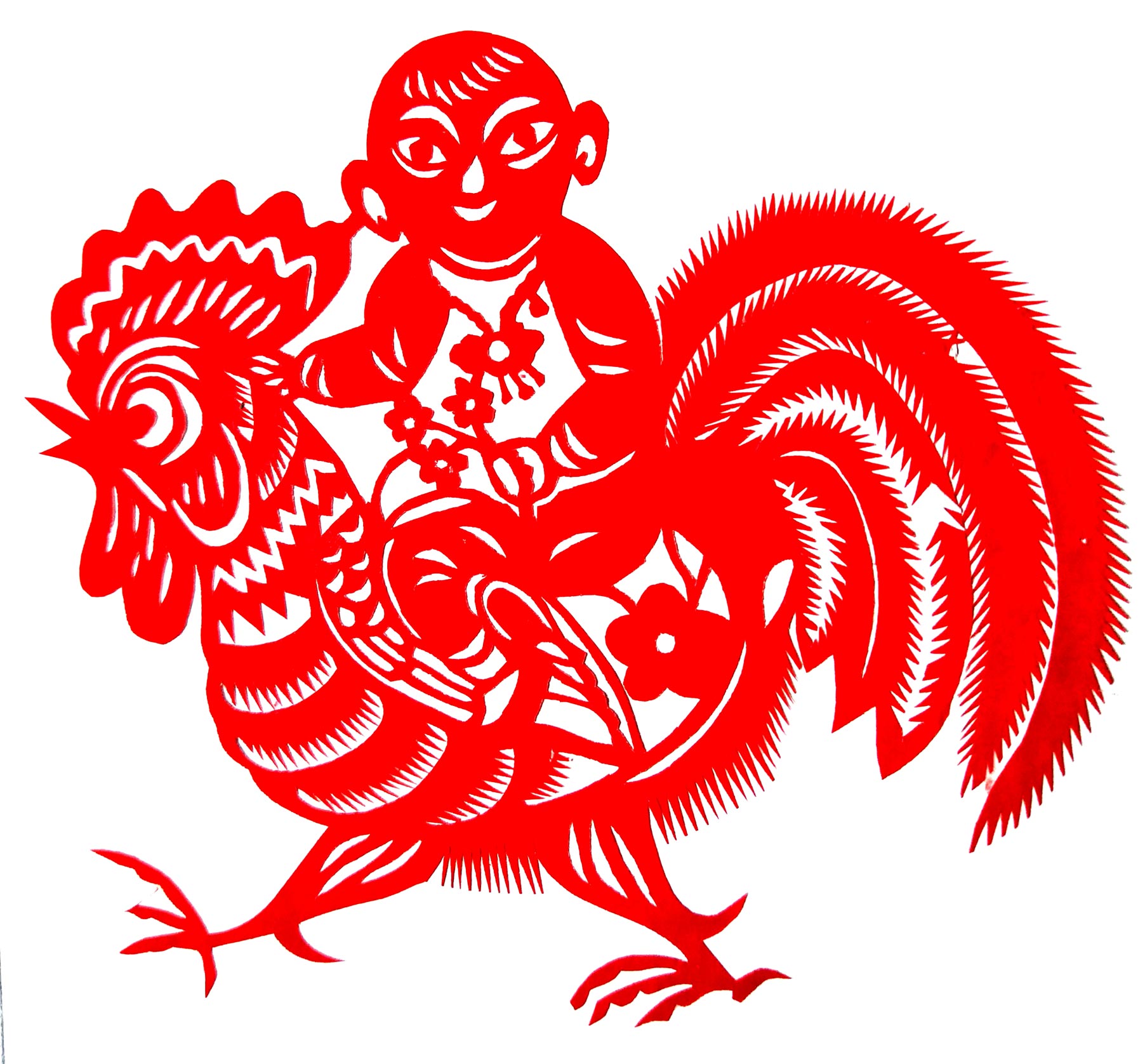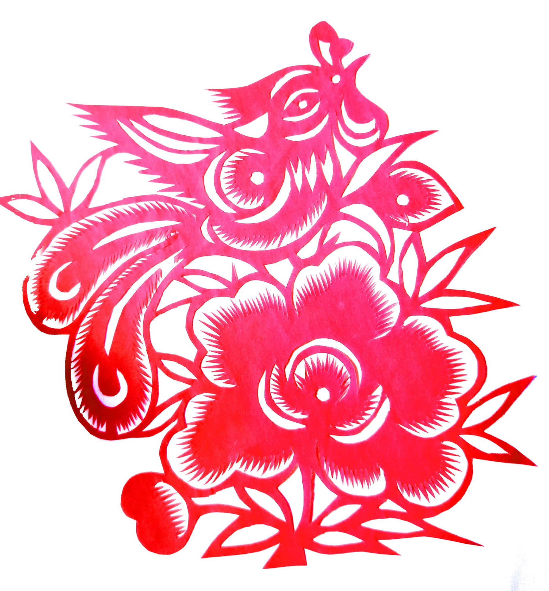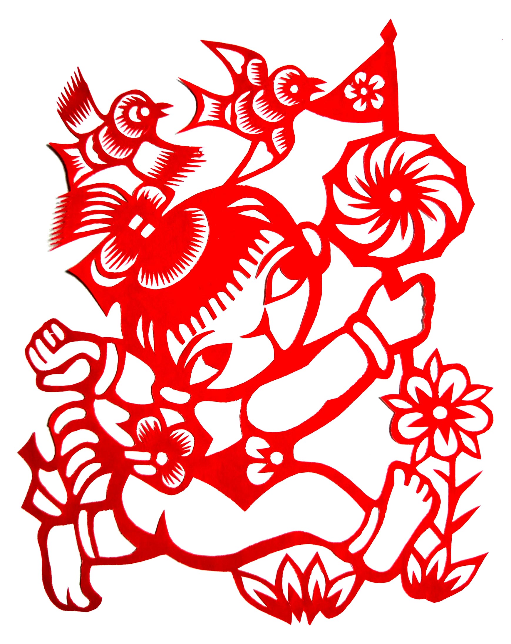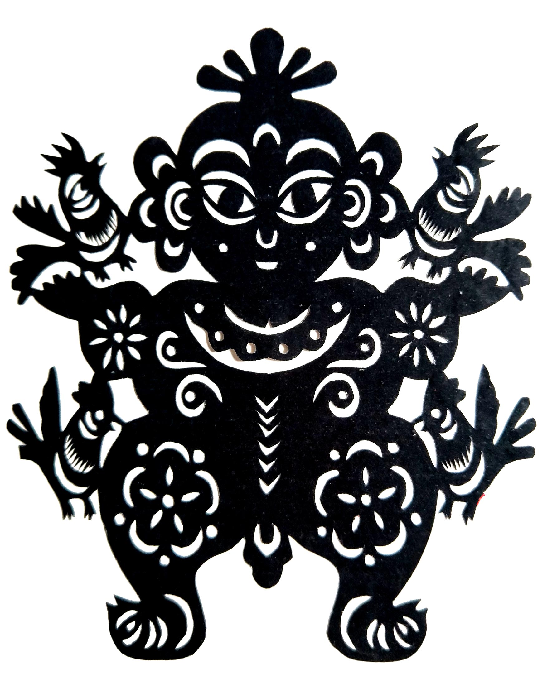张华,女,1973年1月生,家中姐弟三人,她排老大,7岁上学,初一时,因家境贫困辍学回家,在家里干农活替父母分担经济压力。11岁时,受外祖母与母亲的影响开始学习剪纸,都是拓样剪的。上小学时剪纸作品在学校举办的手工艺大赛中展出,得到老师和同学们的夸奖。之后,拜何爱叶、李玲为师,何爱叶老师擅长剪团花、彩贴剪纸,在当地影响很大。现为陕西省非物质文化遗产旬邑彩贴剪纸代表性传承人。老师教她从简单的纹样入手,传授一些剪纸技法,并教她层层深入。