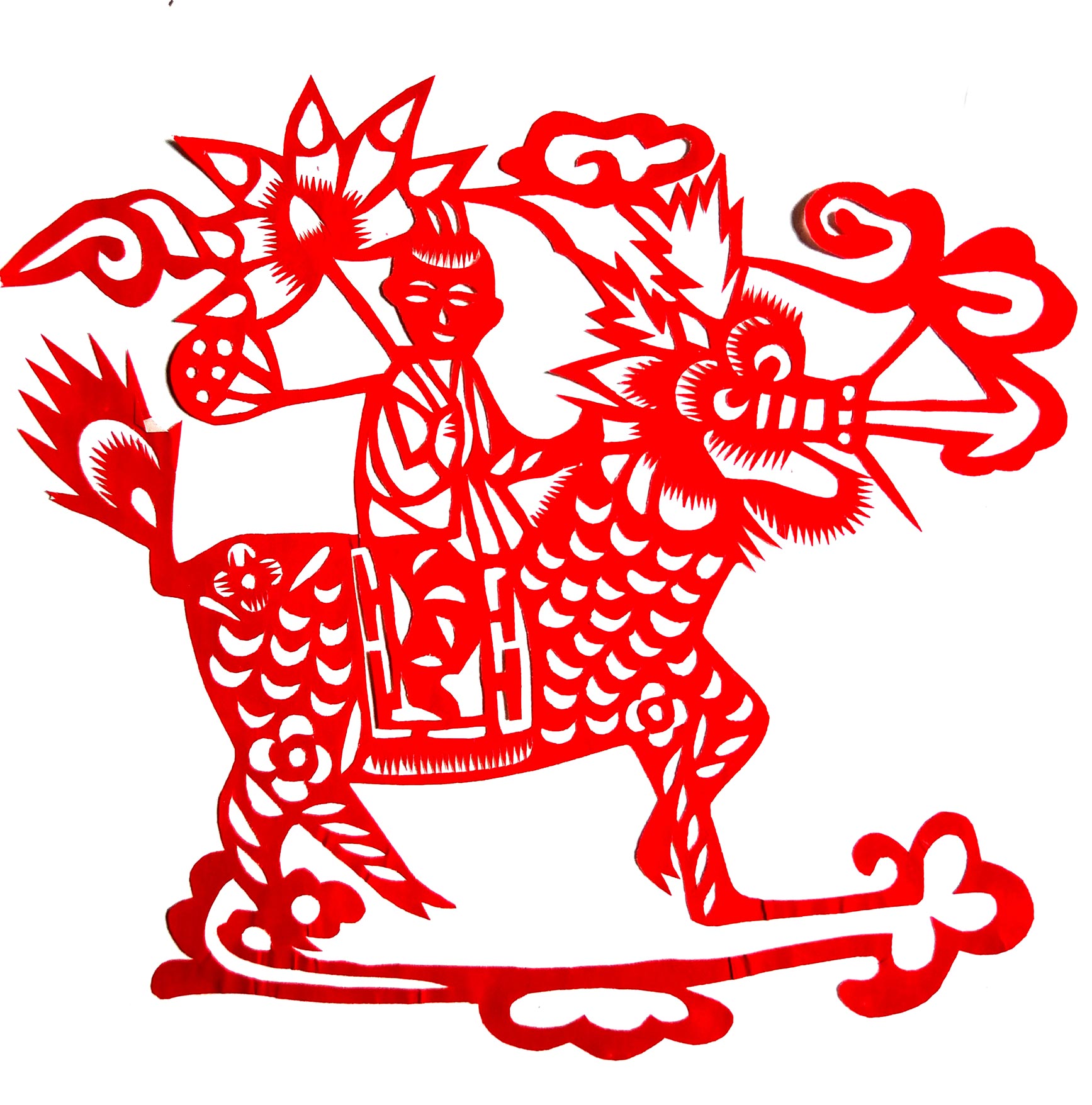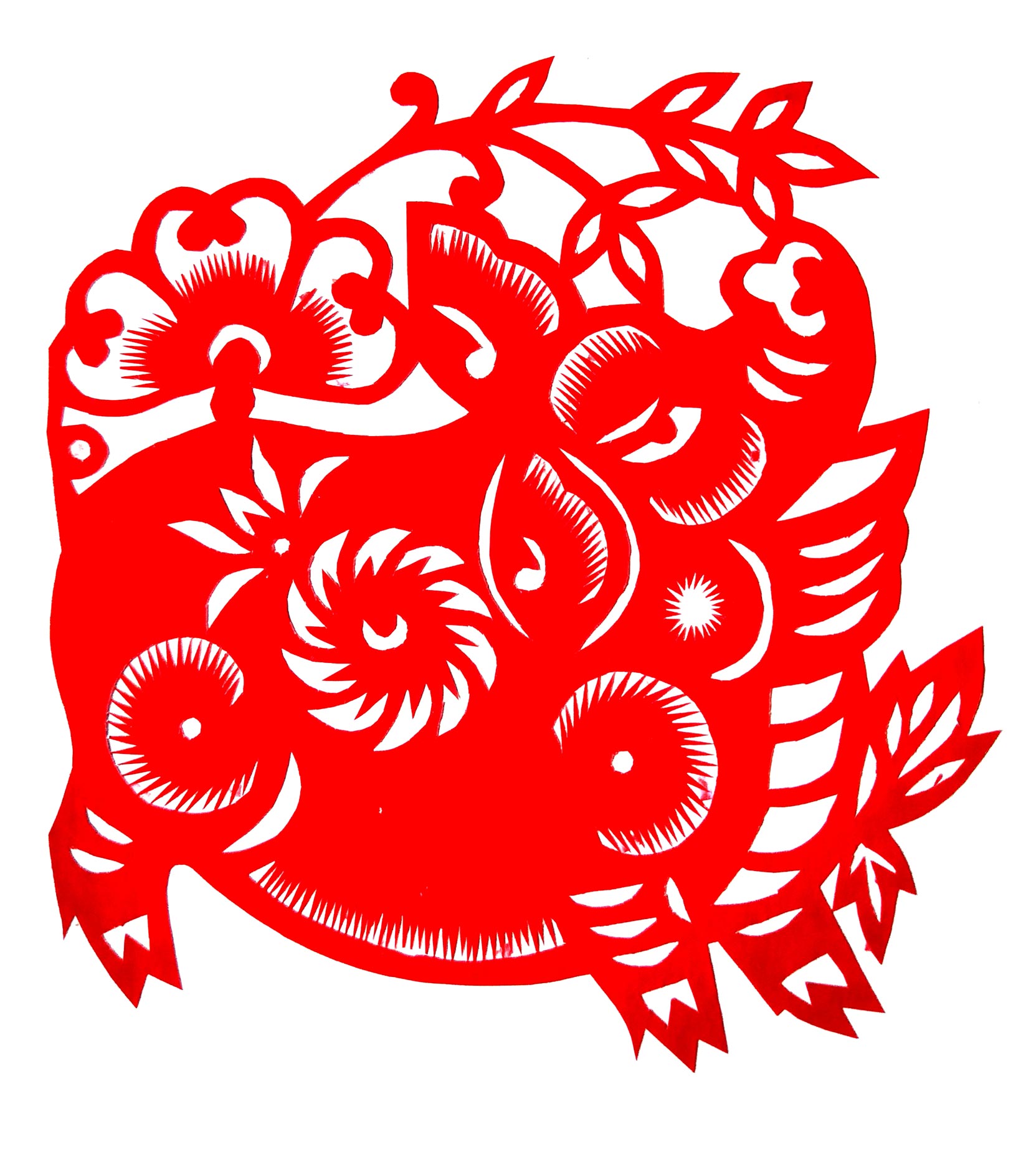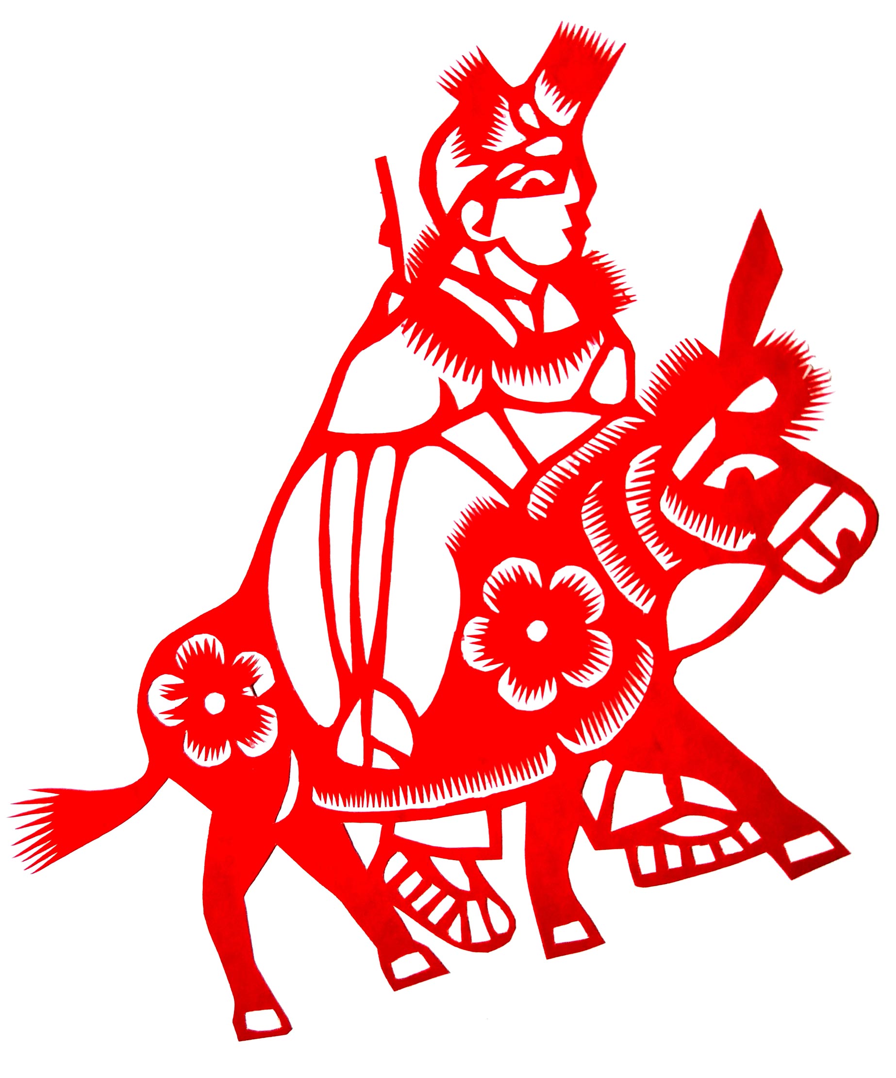 张华,女,1973年1月生,家中姐弟三人,她排老大,7岁上学,初一时,因家境贫困辍学回家,在家里干农活替父母分担经济压力。11岁时,受外祖母与母亲的影响开始学习剪纸,都是拓样剪的。上小学时剪纸作品在学校举办的手工艺大赛中展出,得到老师和同学们的夸奖。之后,拜何爱叶、李玲为师,何爱叶老师擅长剪团花、彩贴剪纸,在当地影响很大。现为陕西省非物质文化遗产旬邑彩贴剪纸代表性传承人。老师教她从简单的纹样入手,传授一些剪纸技法,并教她层层深入。