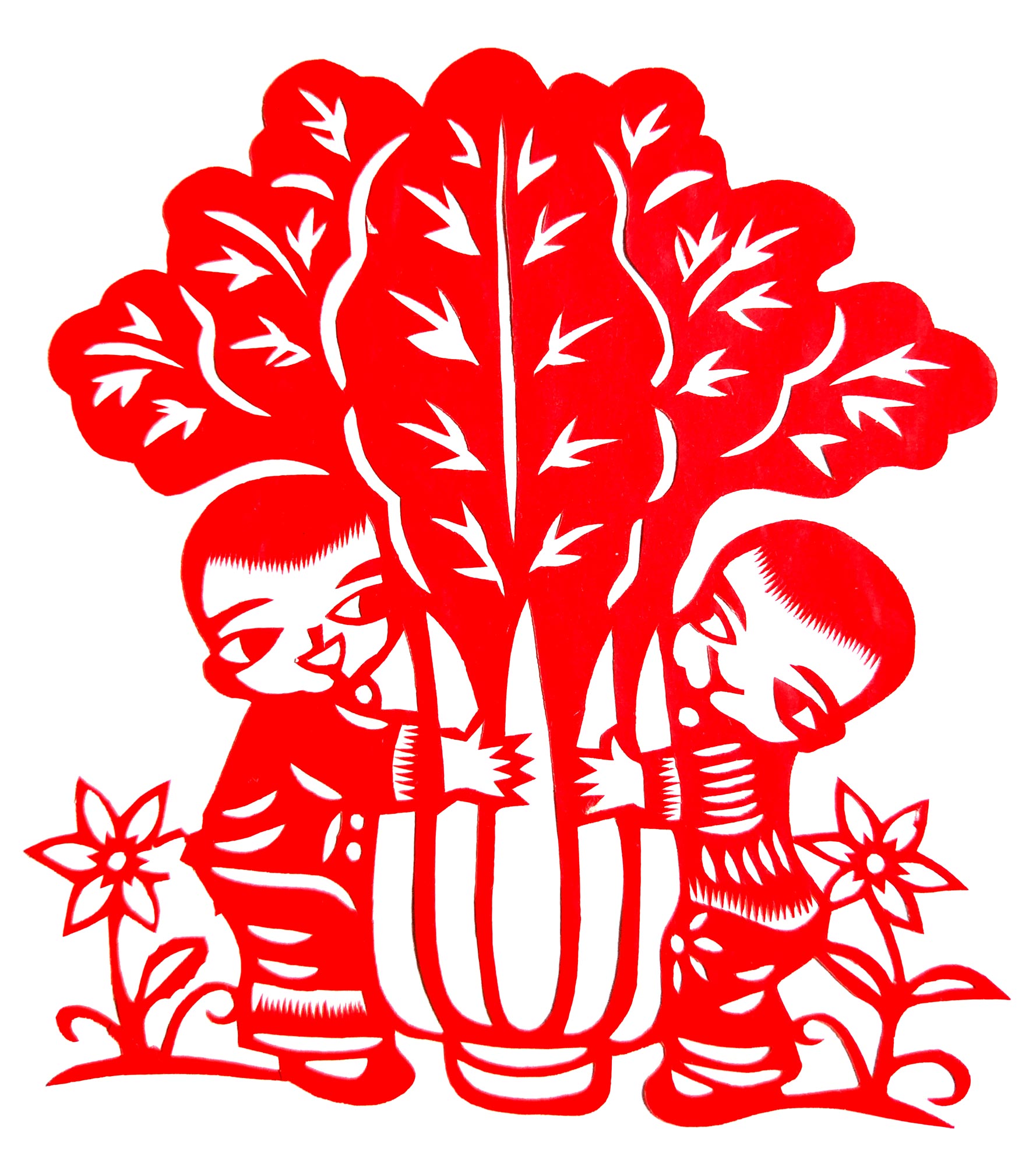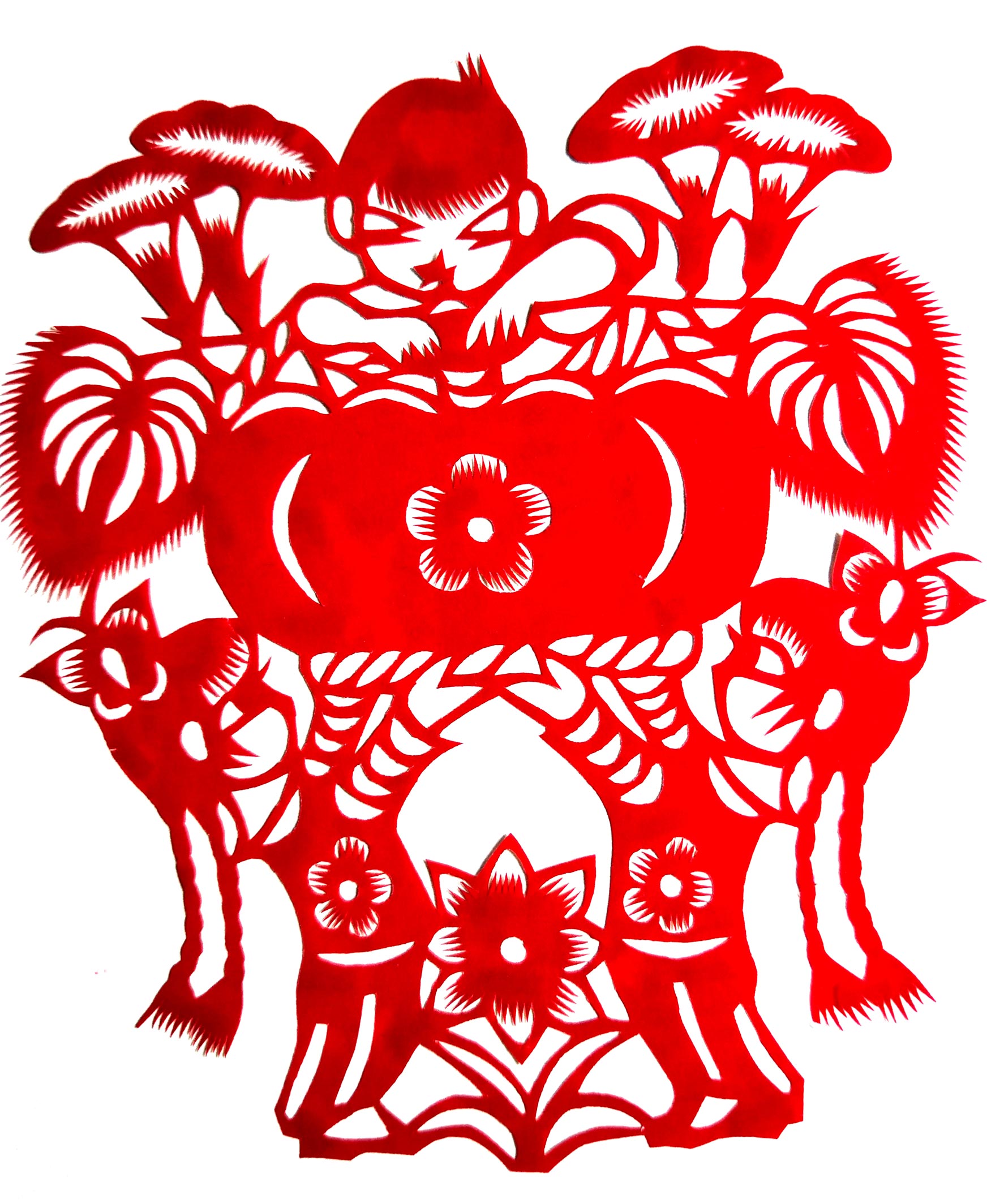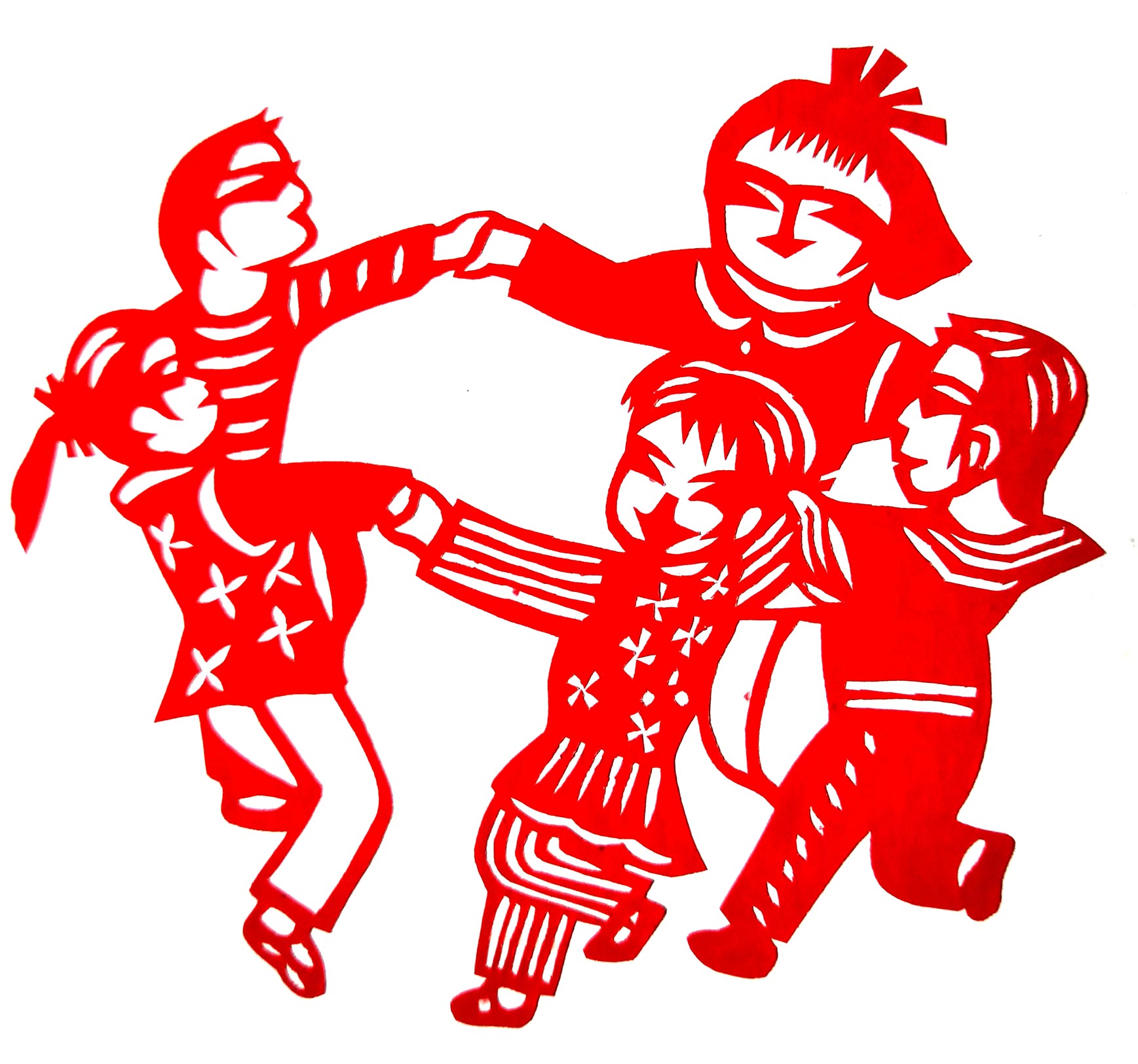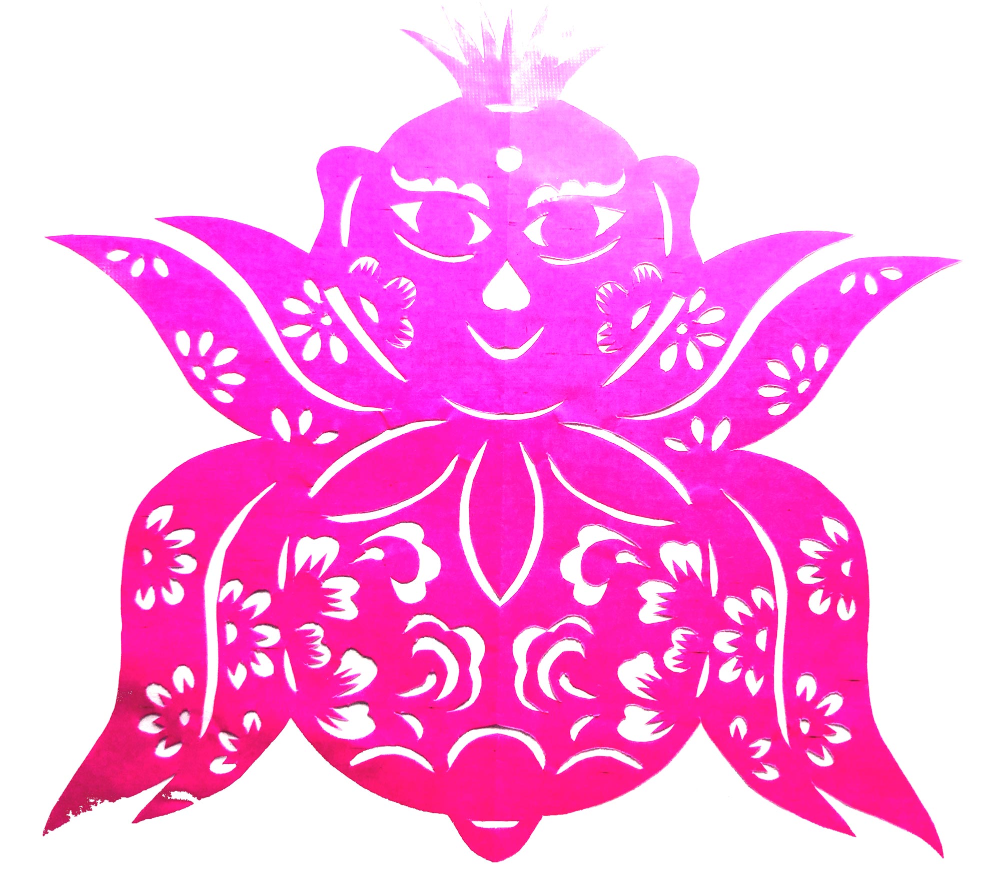 张华,女,1973年1月生,家中姐弟三人,她排老大,7岁上学,初一时,因家境贫困辍学回家,在家里干农活替父母分担经济压力。11岁时,受外祖母与母亲的影响开始学习剪纸,都是拓样剪的。上小学时剪纸作品在学校举办的手工艺大赛中展出,得到老师和同学们的夸奖。之后,拜何爱叶、李玲为师,何爱叶老师擅长剪团花、彩贴剪纸,在当地影响很大。现为陕西省非物质文化遗产旬邑彩贴剪纸代表性传承人。老师教她从简单的纹样入手,传授一些剪纸技法,并教她层层深入。