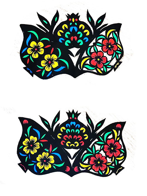 从艺经历:韩雷雨对于民间文艺的酷爱仿佛是与生俱来的,从六七岁开始拿起剪刀就想剪东西,村西头有位剪纸的老人韩丁氏,小时候的雷雨经常去老人家看老人“绞花子”。慢慢自己也能剪一些。后来学业繁忙,作为爱好陆陆续续也剪一些。高考过后,跟随韩萍老师系统学习剪,刻,衬色,染色等剪纸技艺。