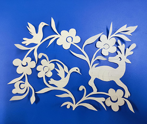擅长创作题材:脱稿民俗剪纸,大幅刀刻剪纸。