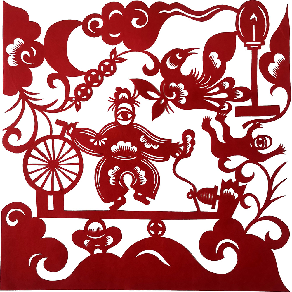 擅长创作题材:董太岭受家庭的影响自由学习剪纸,面塑,布艺,泥塑,脸谱绘画。剪纸题材以花鸟人物为主。