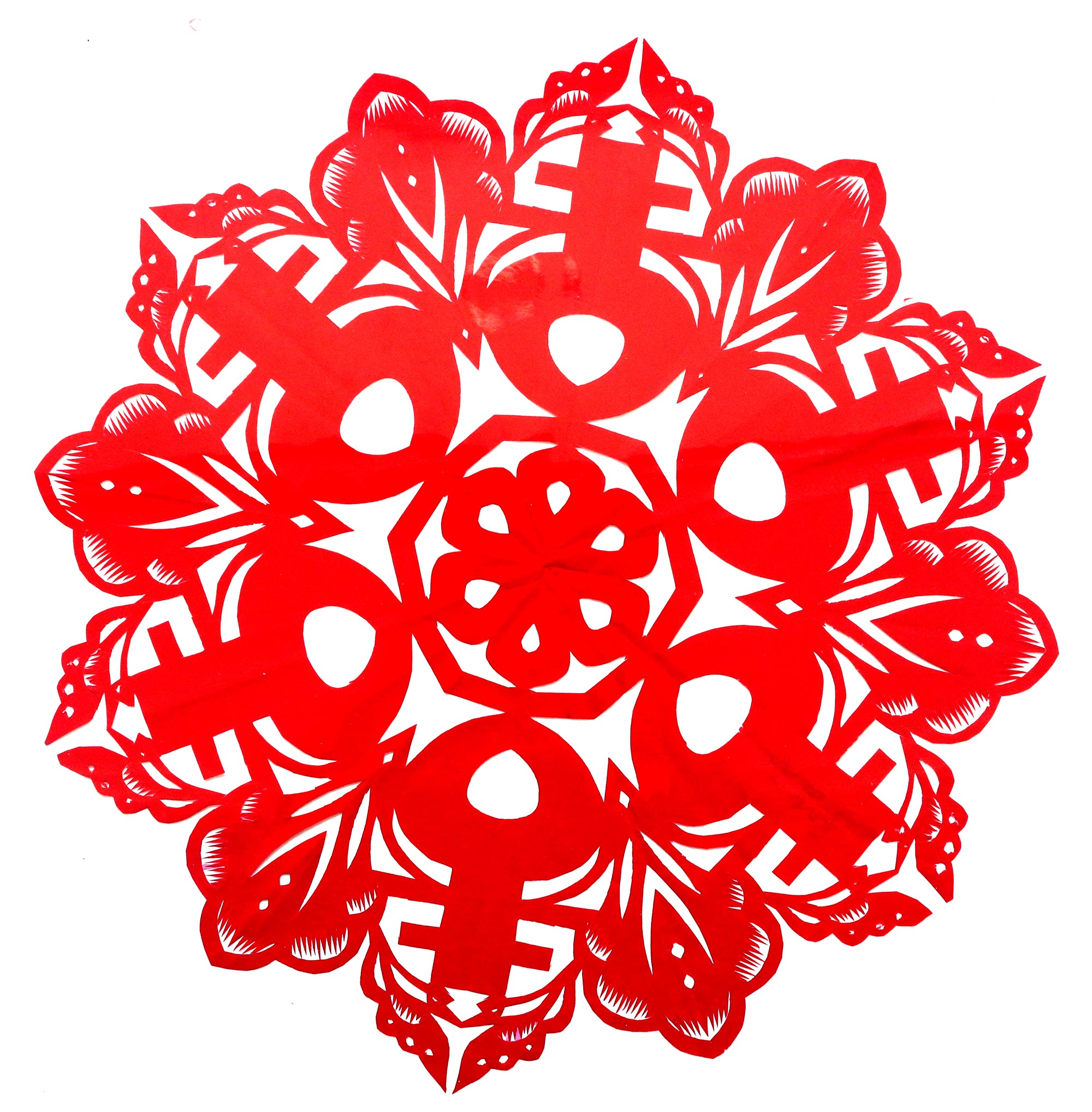 1991年,雷钢琴结婚,那时24岁。结婚时的嫁妆都是自己设计自己制作。婆家在志丹县顺宁镇,1989年迁移至志丹县城居住。公公在志丹县交通局工作。婆婆会做些衣服鞋帽,对剪纸很少涉及。丈夫初中文化,对妻子剪剪纸,也不是特别支持。因婚后家庭生活富裕,只要亲朋好友有婚嫁喜花这方面的需求,常常会邀请她剪制一些喜花。
