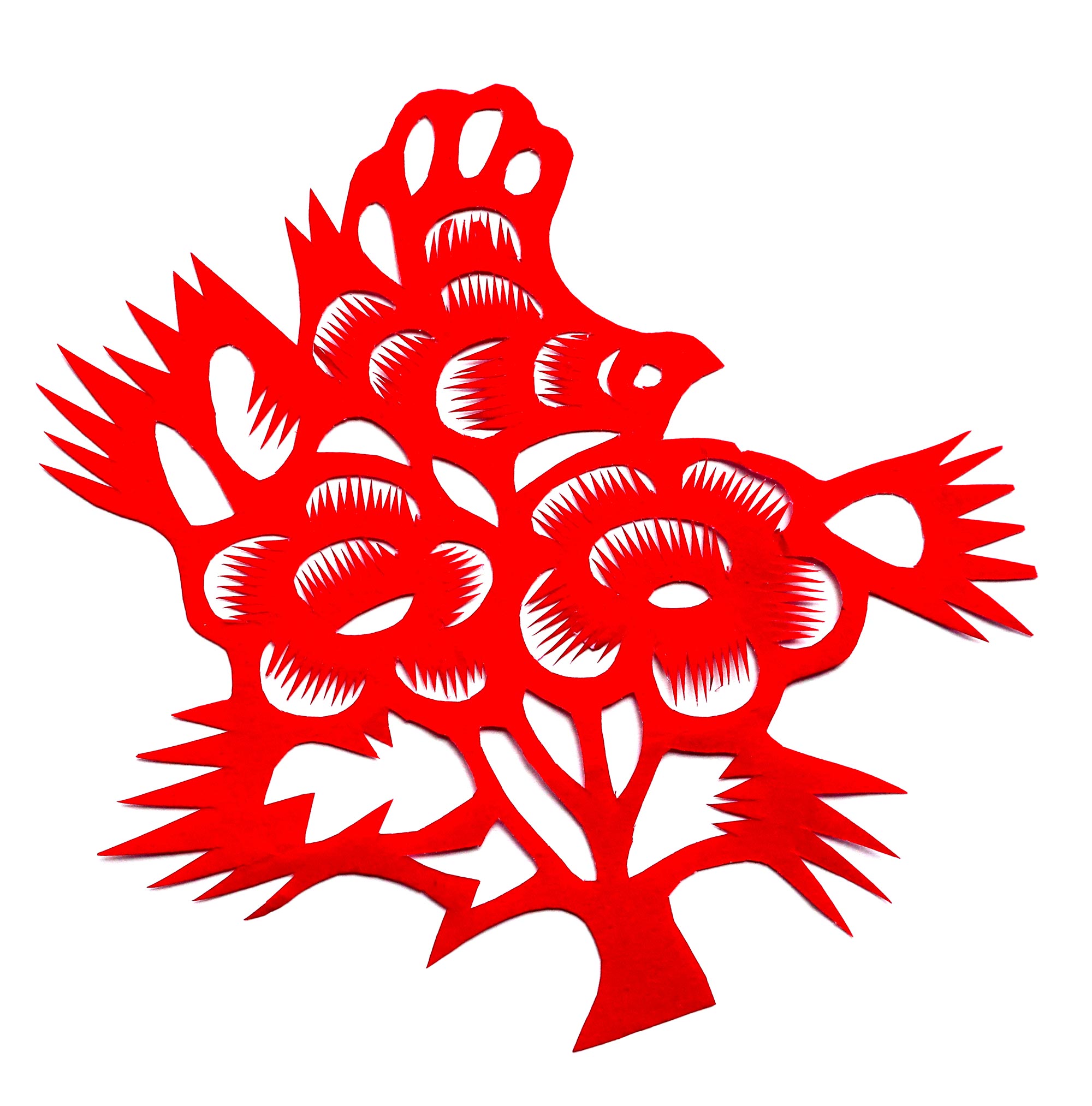 朱欣玉七岁上学。四年级时,她要学绣花,母亲觉得她年龄太小,就先教用旧毛线织了一双手套。十多岁的时候经常看见奶奶剪纸,便在一旁观看,但动手的时候并不多。那时候,剪纸水平不高,过年的窗花都是由奶奶来剪。