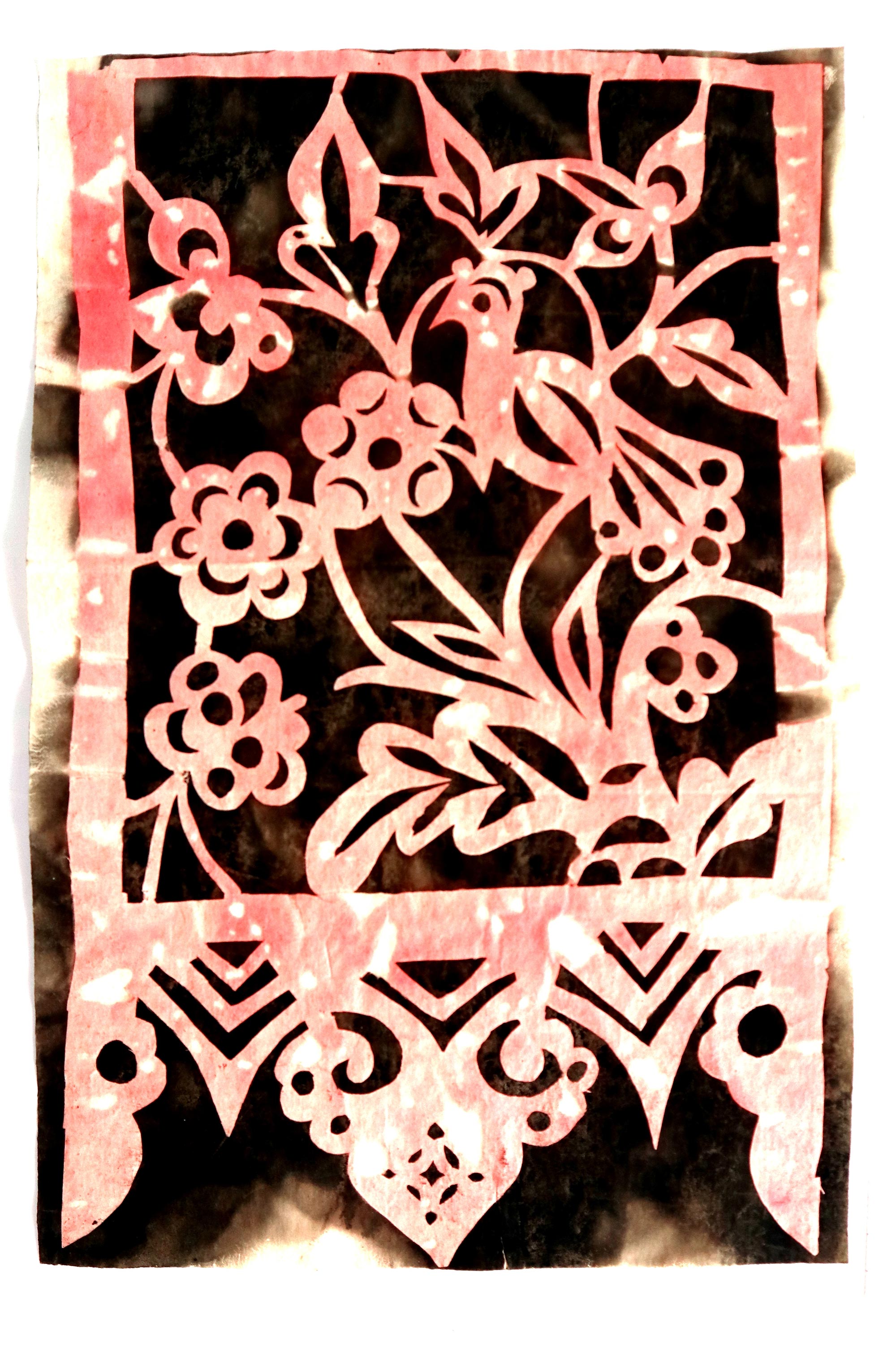 剪纸纯粹是个人爱好,没有任何的经济收入,他有时走亲戚串门,注意收藏一些有关宗教、丧葬、春节窗花等方面的民俗活动用的剪纸。目前他收藏有几百幅传统剪纸作品。其中收藏的淳化丧葬吊子,是淳化、旬邑一带营造白事气氛,最典型的一种剪纸样式。这种丧葬吊子一套九组,上面分别有文字、图案、花草等。有入葬前用的,也有三年用的。