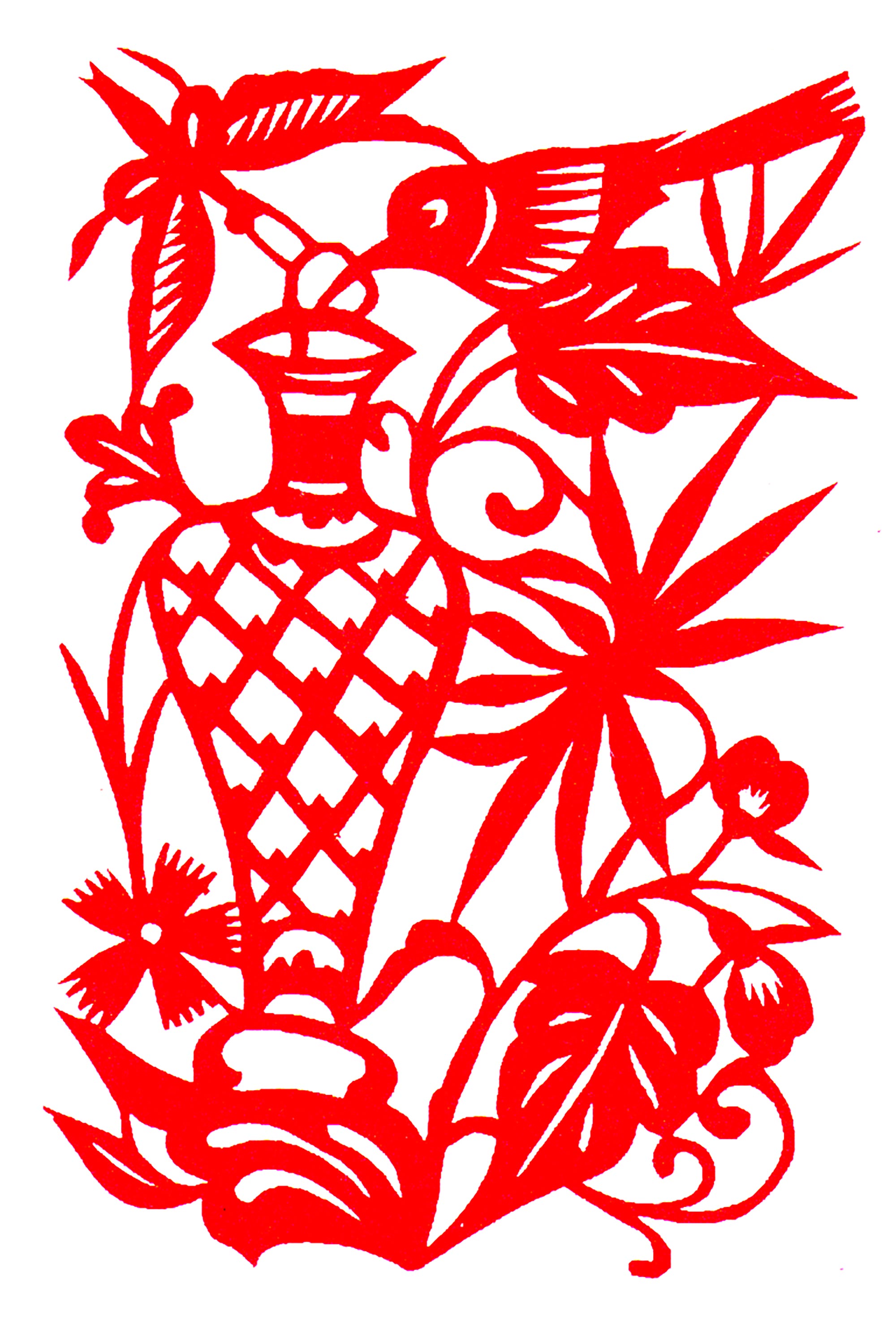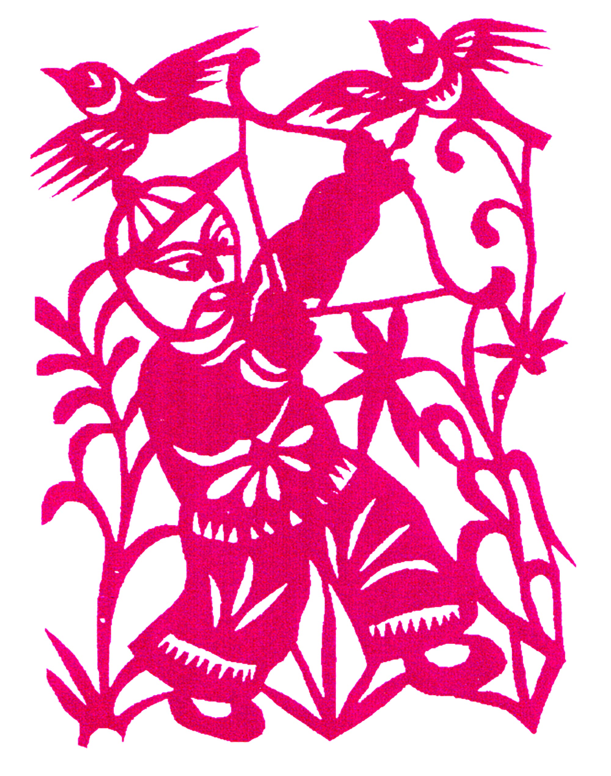 擅长创作题材:从剪纸的内容上看,较多表现传统题材,如表现生殖繁衍为主题的《鱼戏莲》《狮子》《绣球娃娃》《娃娃金瓜》等;表现吉祥幸福的题材有《三多图》《鹿鹤同春》《官上加官》等。在她剪的《二十四孝》图中,都充分表现出了传统的思想观念。