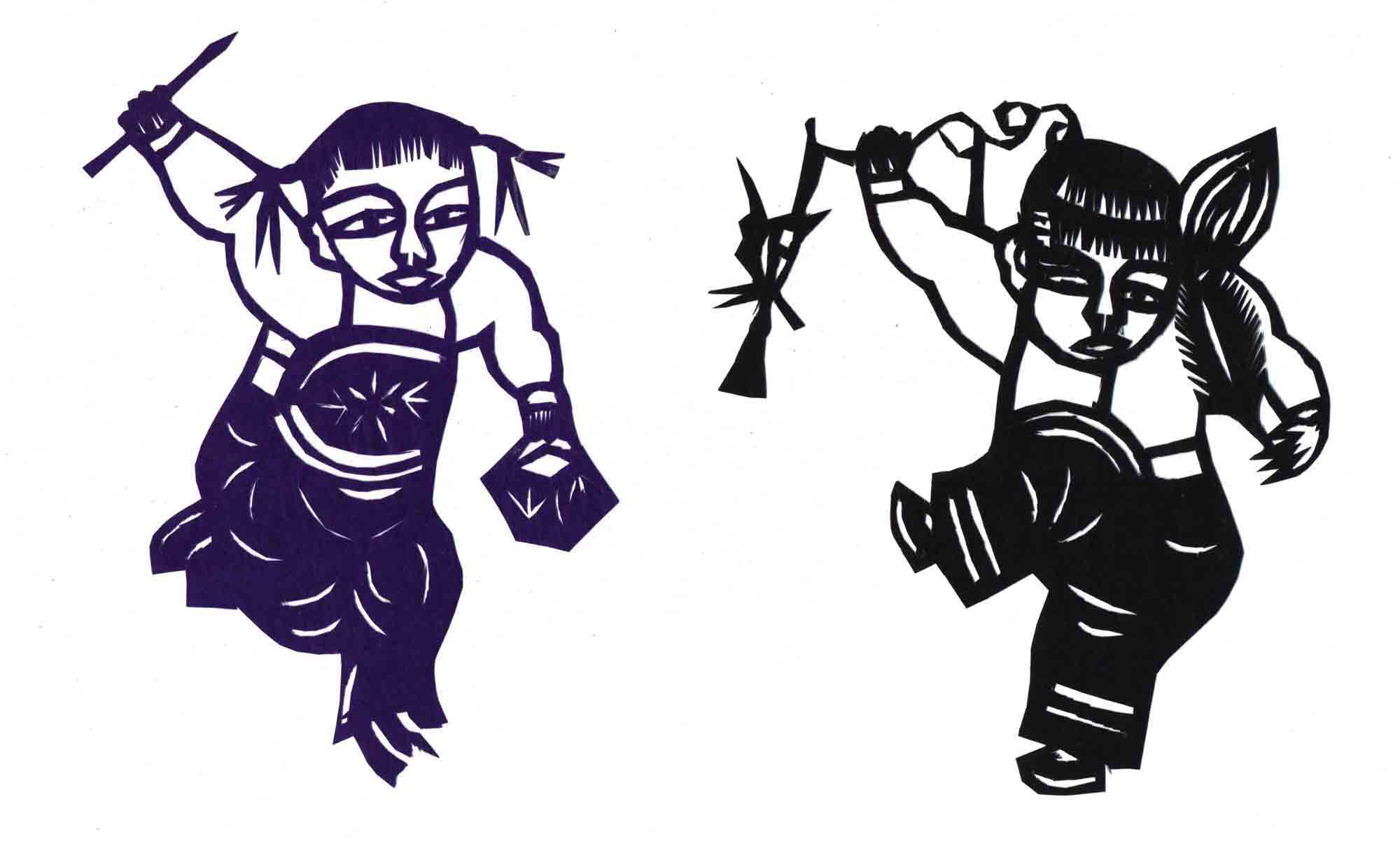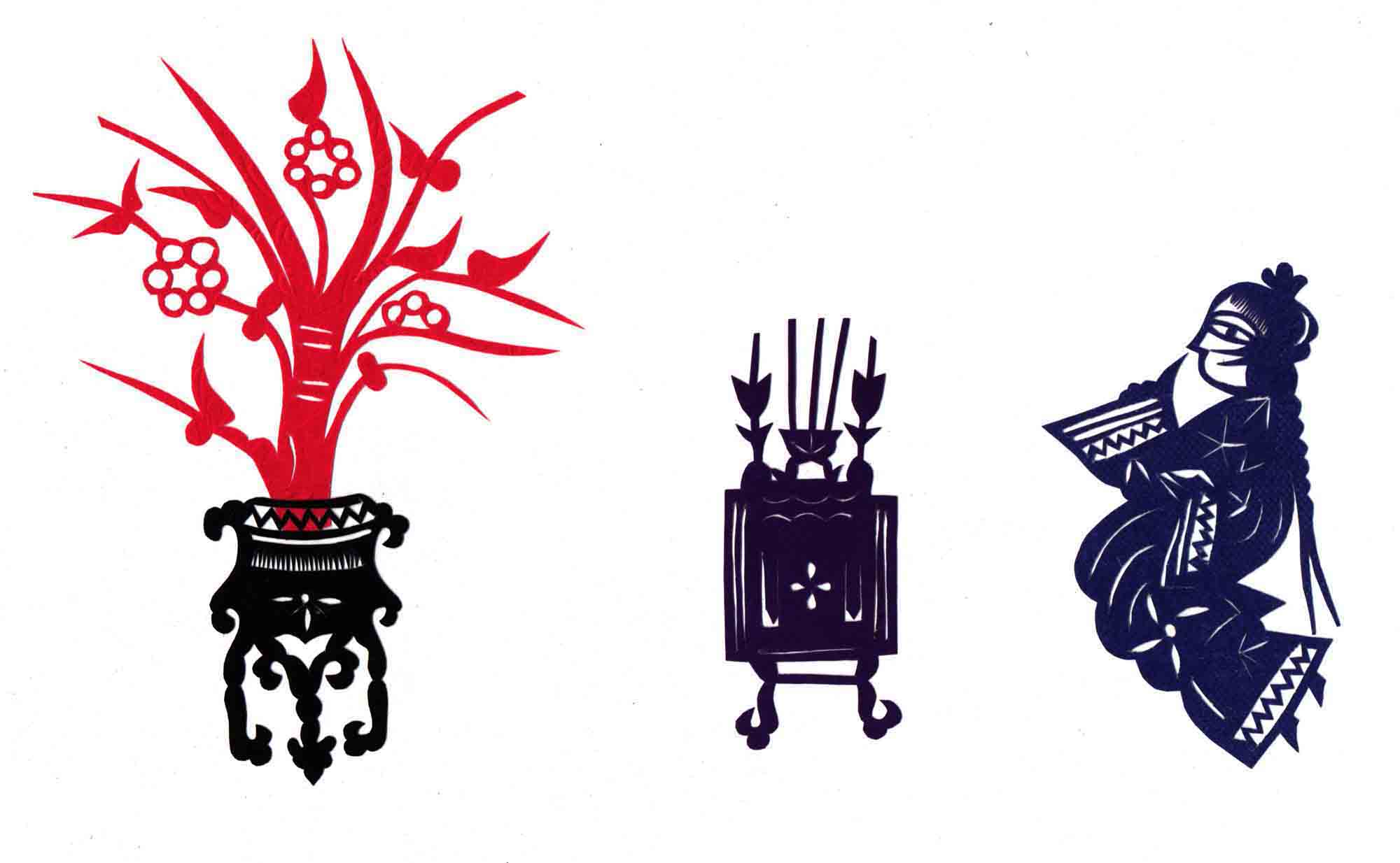 聂芳琴的剪纸较好地呈现出朝邑剪纸的地域风格,线细若发丝,孔小如针扎,工巧细腻,作品有花草、动物,特别是戏文人物构思巧妙,剪技娴熟,能够用剪纸的艺术形式把戏文故事表现得活灵活现。