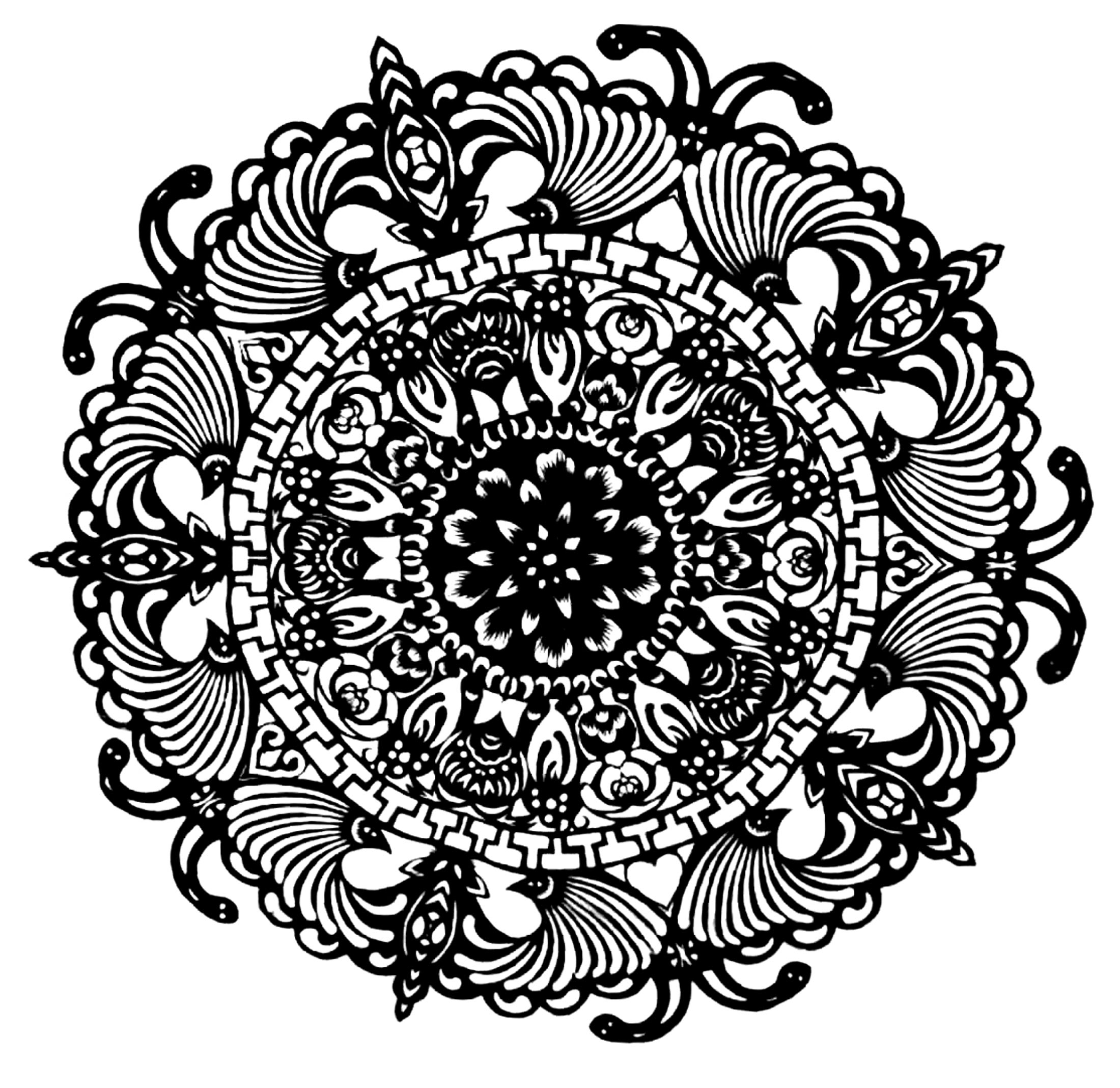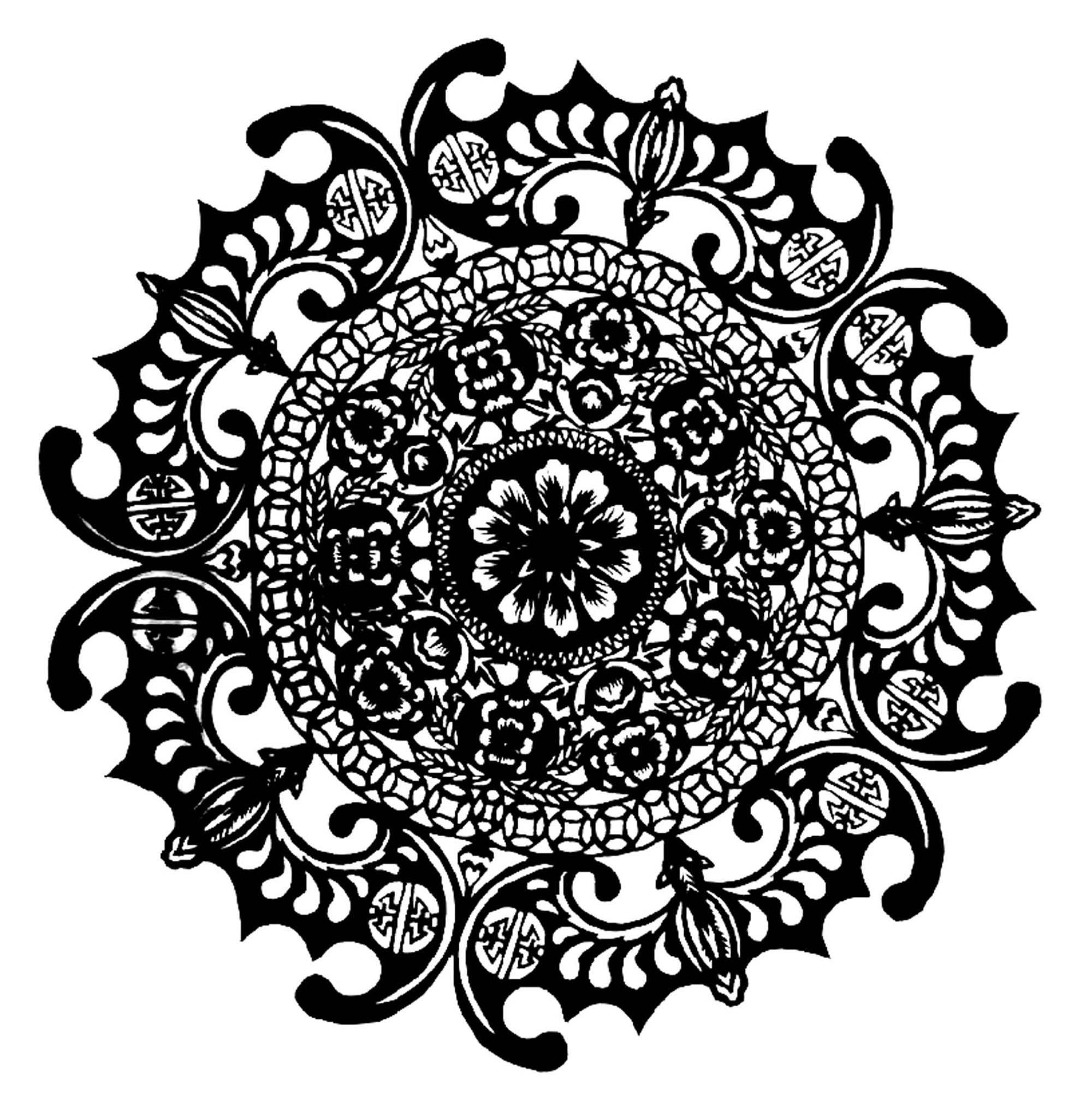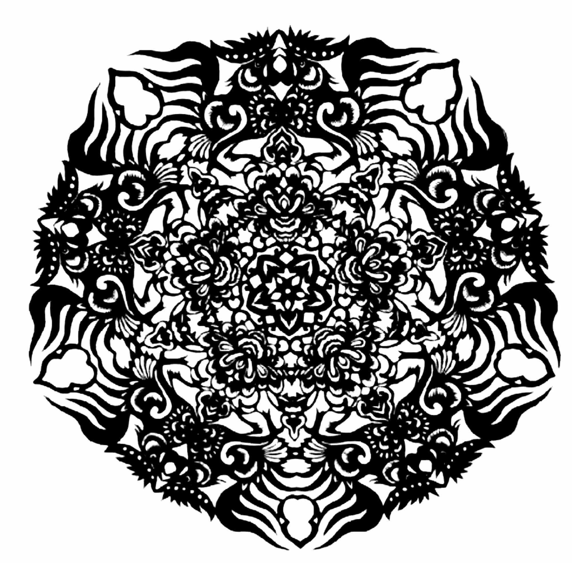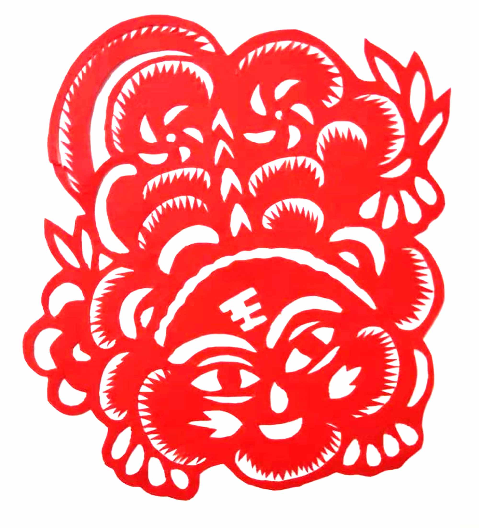 霍佳伟,男,1996年生,汉族。从小对剪纸非常感兴趣,并让祖母教自己剪纸。到高中时,每年学校都要举办文化艺术节书画展览,老师们让他剪纸花装饰展板。文化宿舍月,老师让他剪纸装饰宿舍。每逢村里庙上过会,他都要剪五色旗、五色幡、门笺等,这些代表五方五帝,寓意保佑一方水土平安,风调雨顺。他向祖母与庙会上的经师学习剪纸图案,包括五方童子、石榴、娃娃坐莲花、牡丹花等。