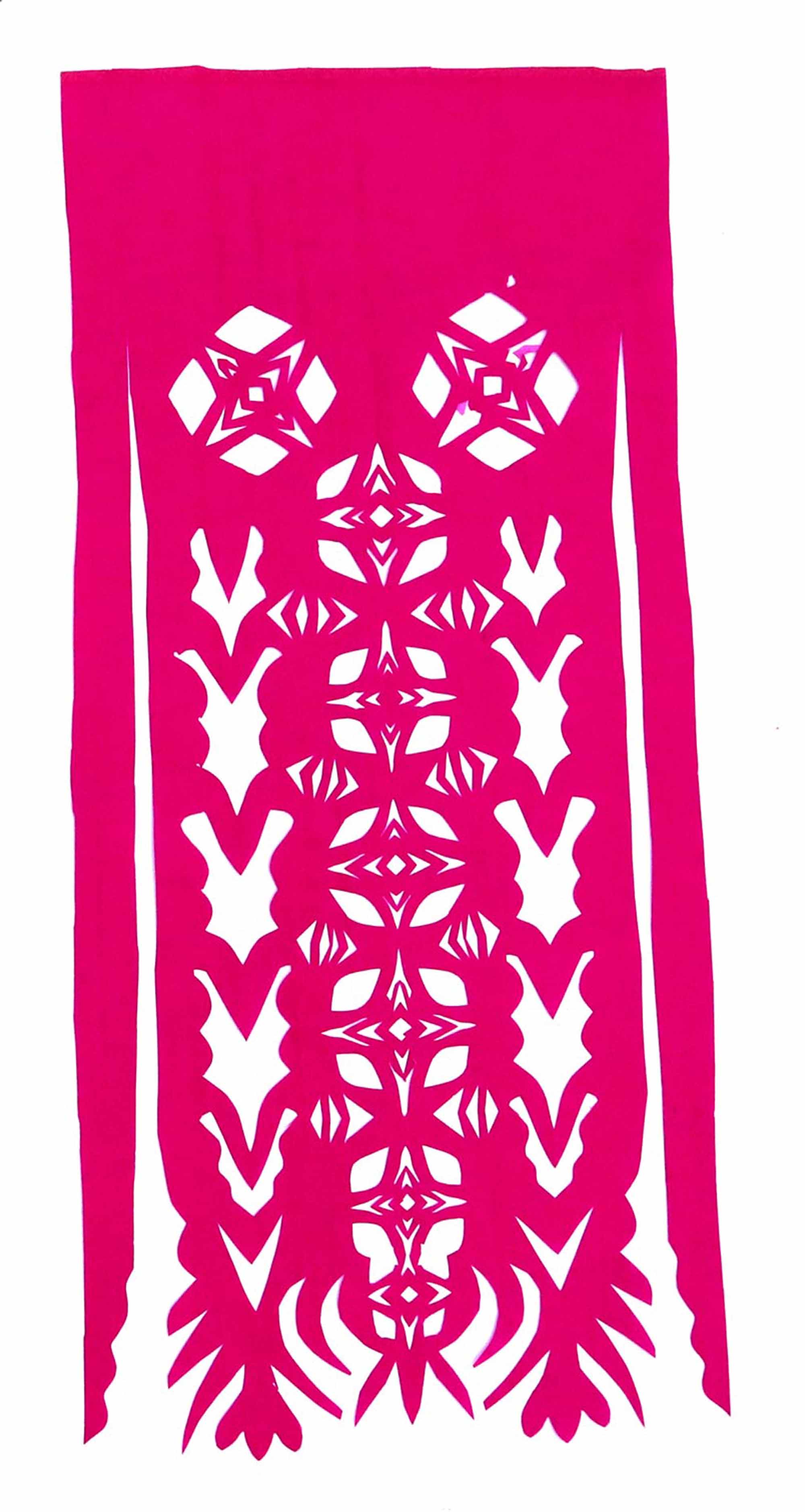 擅长创作题材:庙会剪纸,如门笺、神幡、五色经幡、五色旗等。