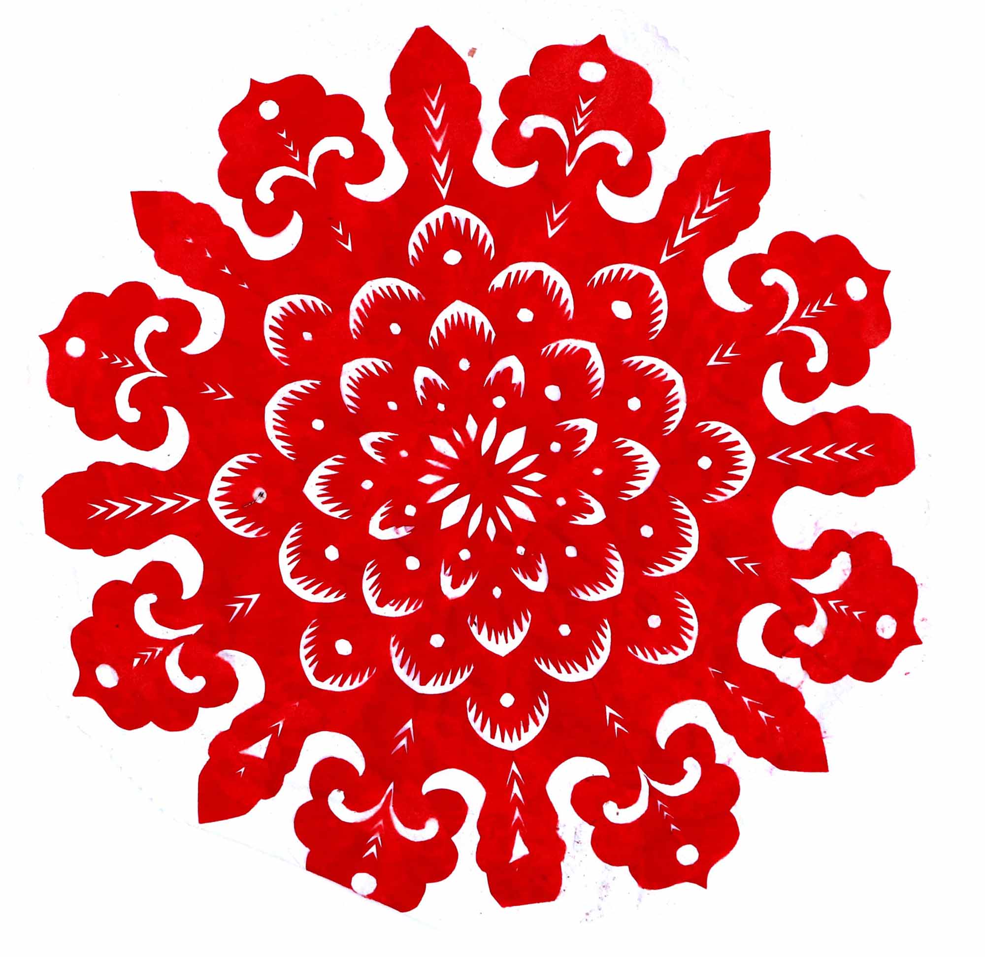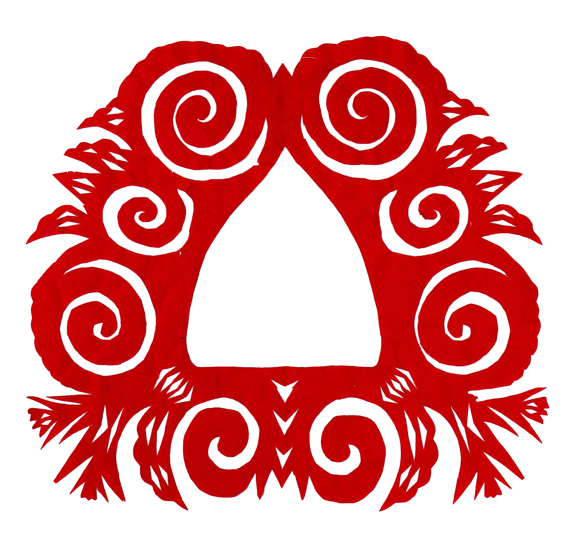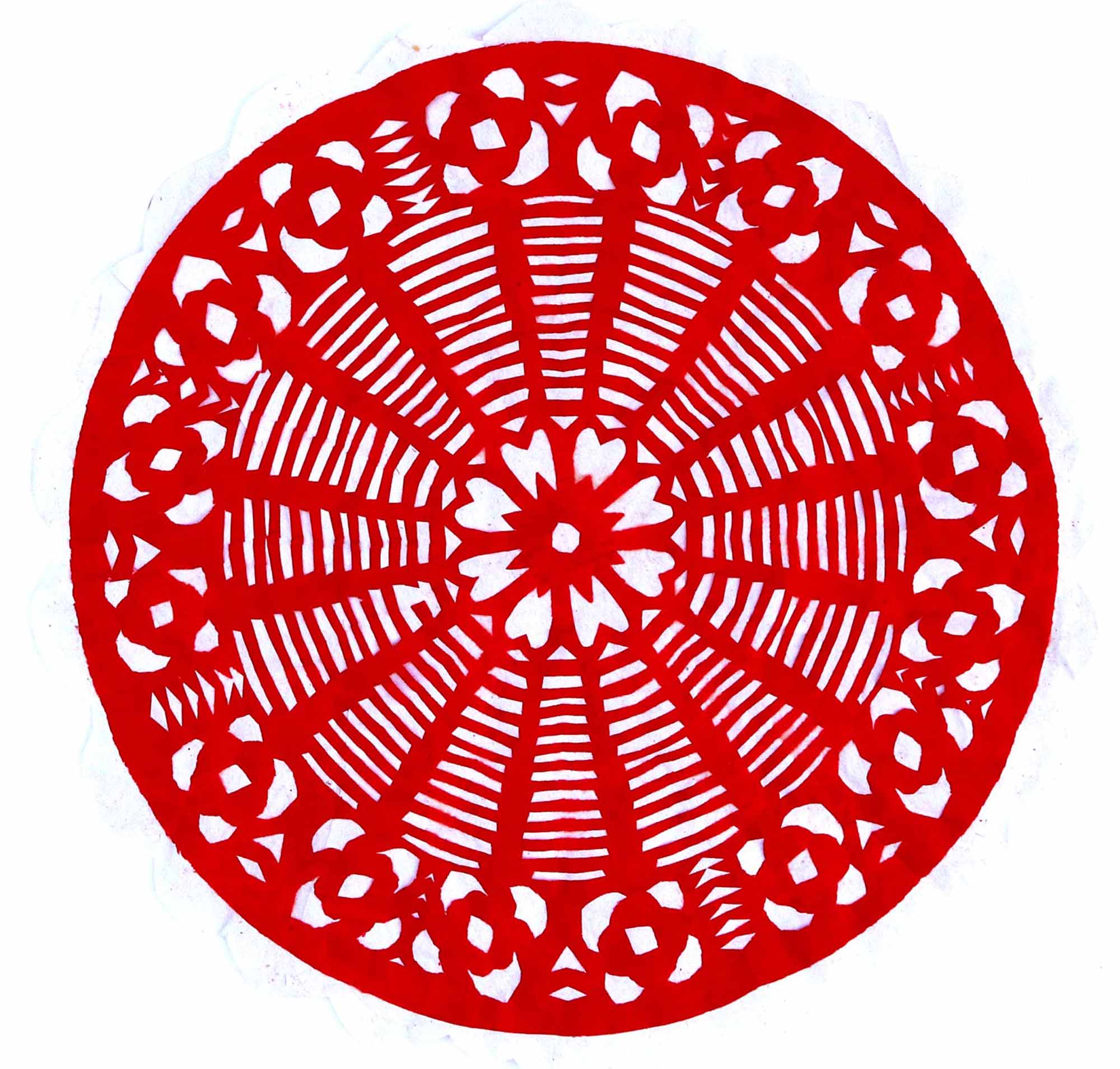 卢玉爱的庙会剪纸风格粗犷大气,淳朴庄重,内容传统,纹饰变化丰富,较好地保留了当地宗教剪纸的艺术特色。