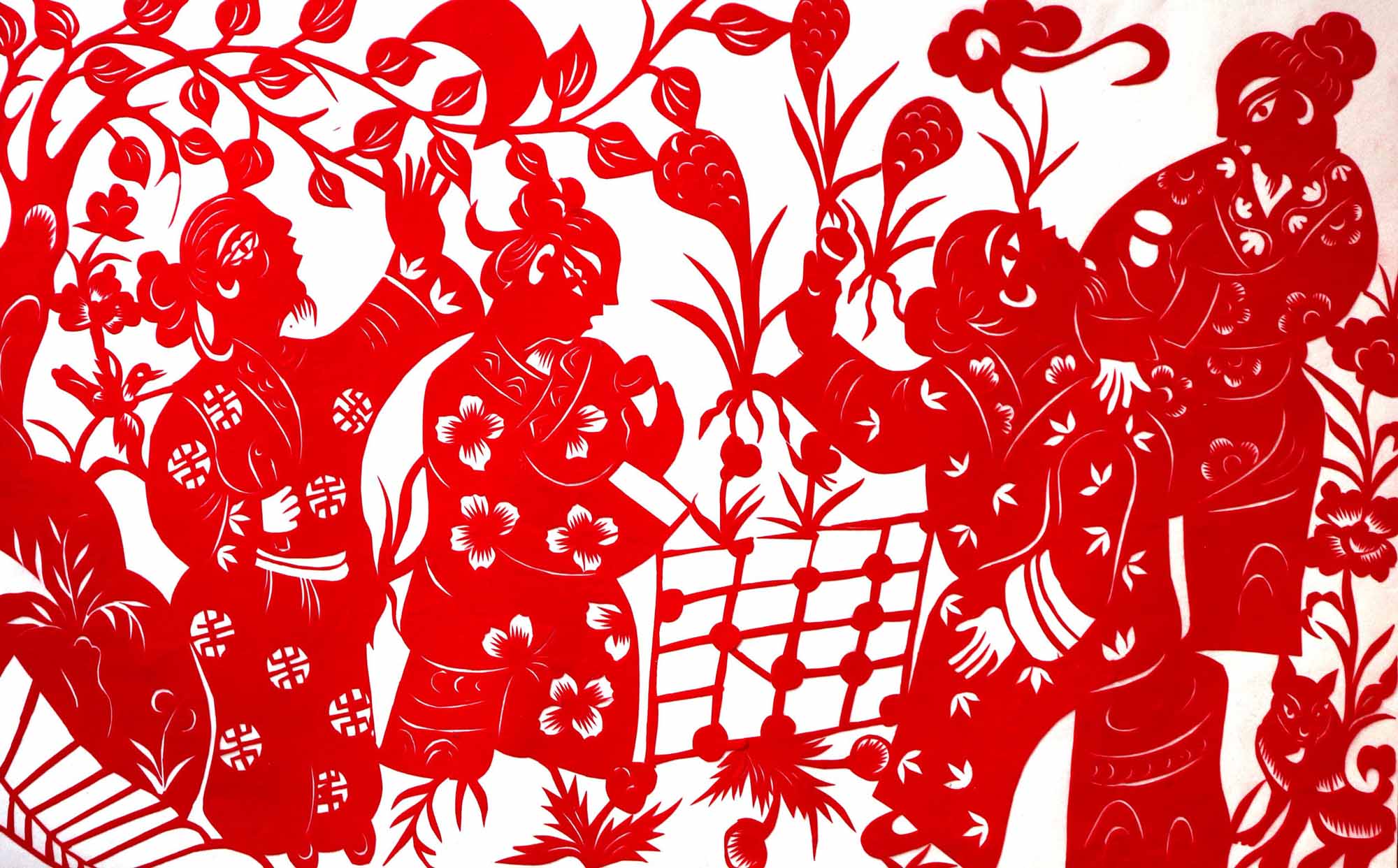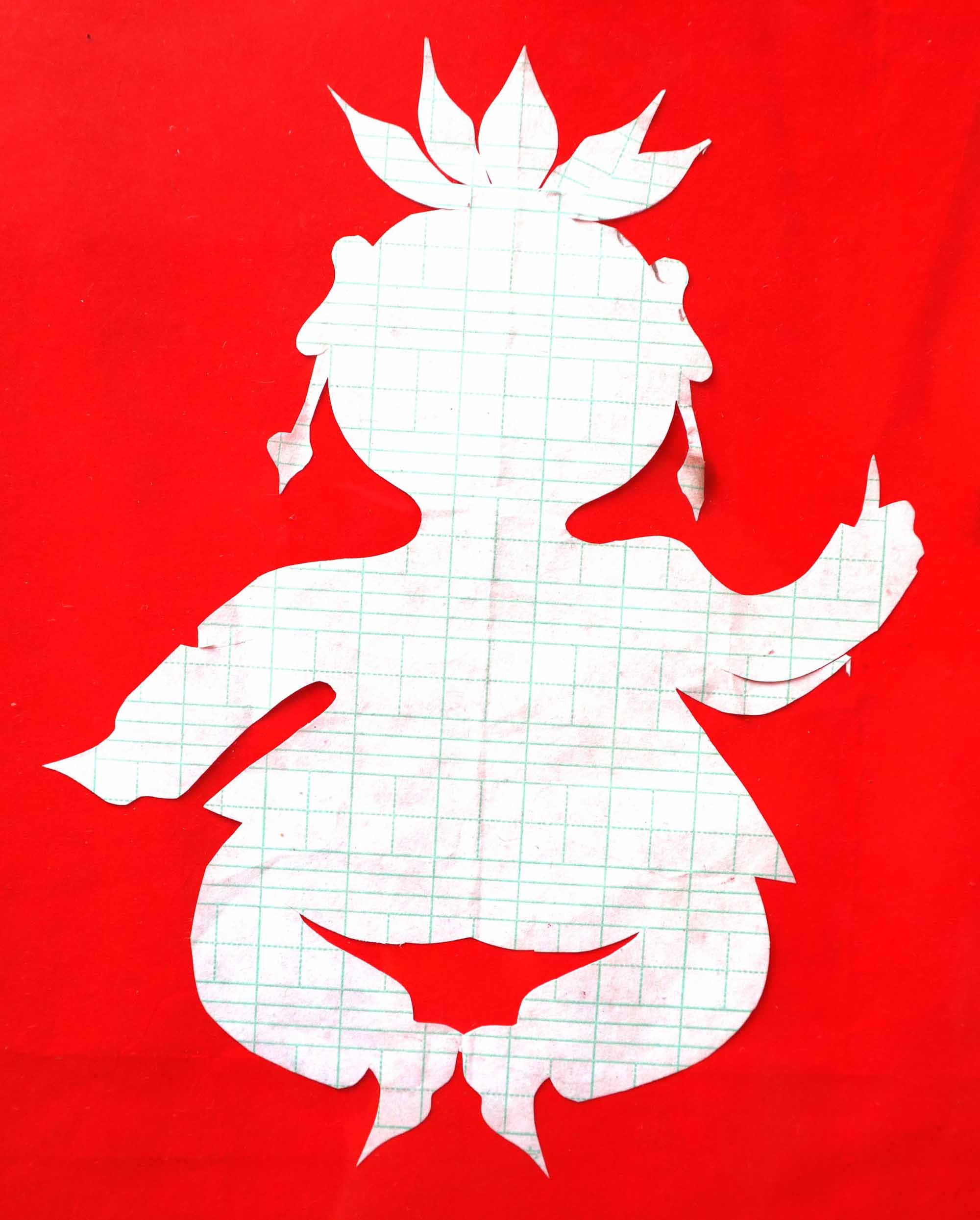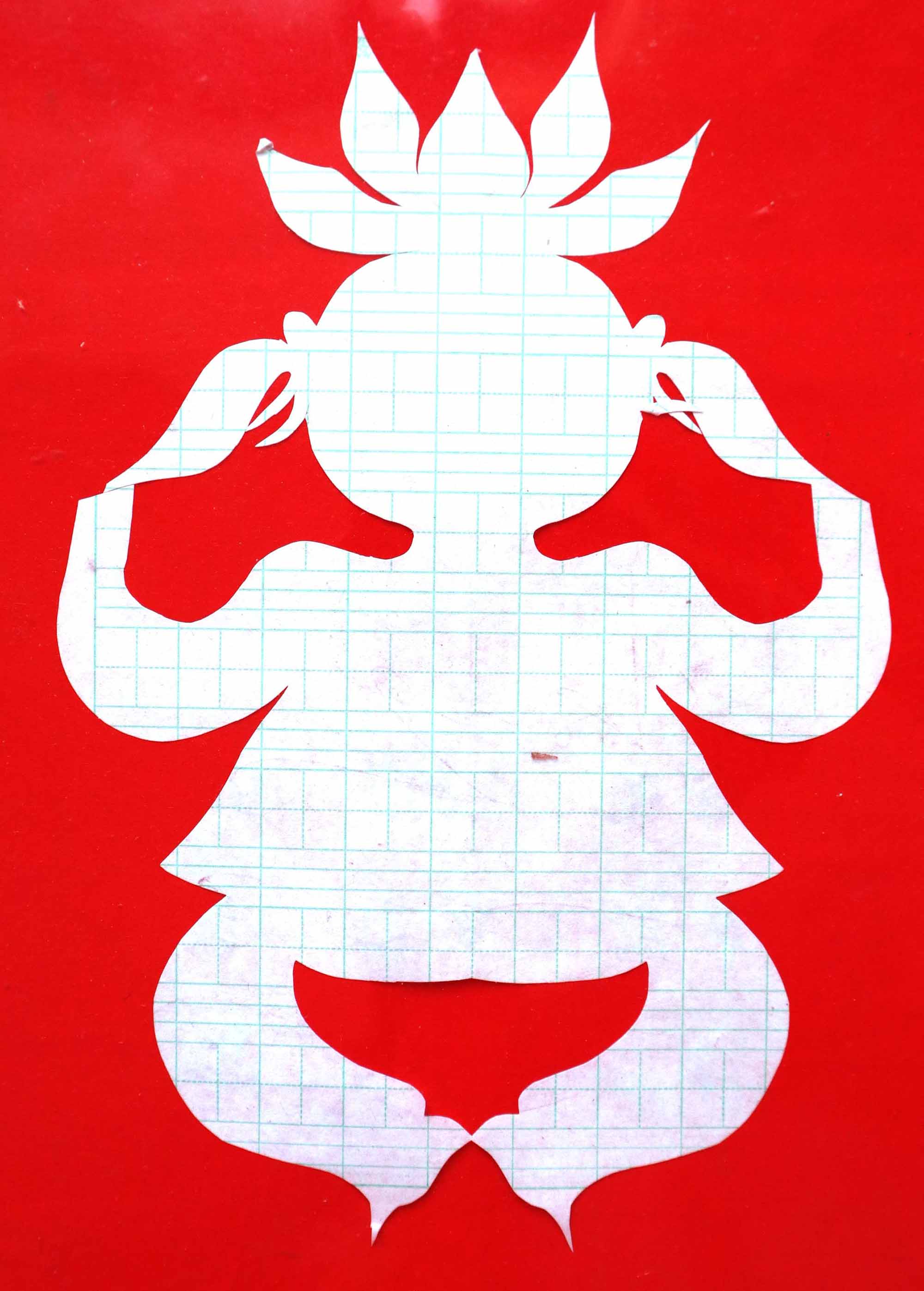鲁跃芳在学窗花时,没有拓过样子,拿剪刀直剪,内容多是花草,对折起剪的莲花、牡丹、菊花、梅花,叶子多是变形的样式。富县的窗花兴时对花,花叶和枝叶分开来剪,然后拼贴成一幅完整的纹样,枝干用毛笔画成。自从16岁会剪窗花后,家里过年的窗花都是鲁跃芳来完成。在玻璃窗上贴窗花更为费事,先剪出花叶枝干,然后在玻璃上涂浆糊,再在窗子上拼贴。拼贴完后再一点点擦去浆糊,把7个窗子的窗花贴完需要半个多月。除剪窗花外,还要剪碗架云子、板架对子。一个寒假要制作100多幅,分别送给亲朋好友。