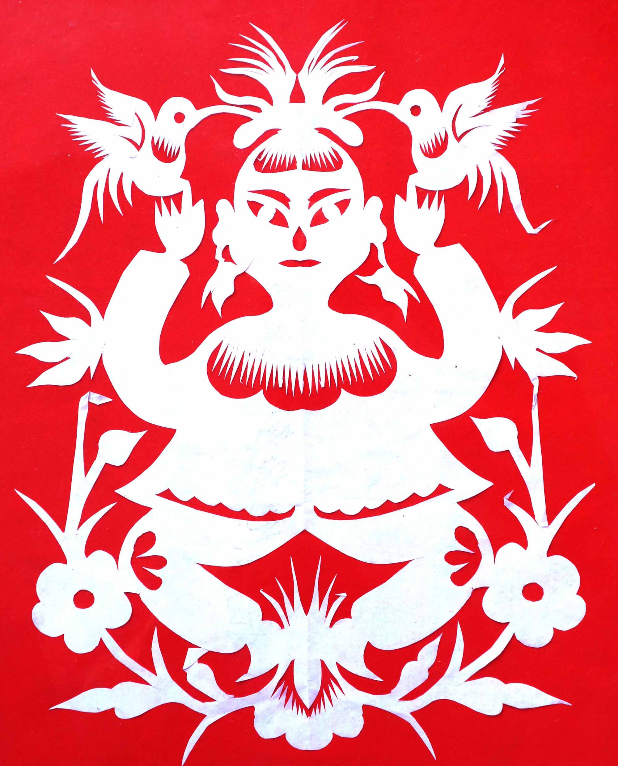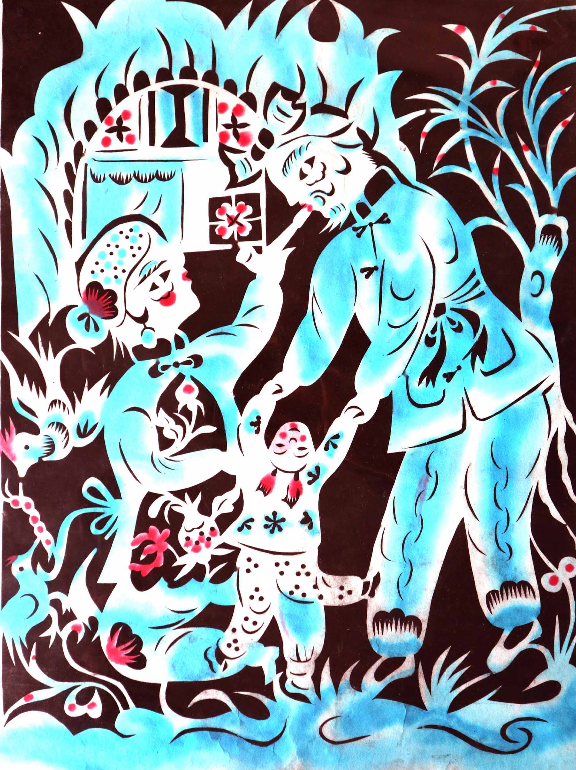 鲁跃芳,女,1961年1月27日生,汉族,高中文化程度。祖父农民,高中文化程度,民国时期曾当过县长,喜欢书法、绘画、文学。祖母出生于大户人家,心灵手巧,受过良好的传统文化教育,擅于剪花、绣花、捏面花、裁衣服等女红活。外祖父是老红军,解放后当过洛川县邮电局局长。父亲鲁中华,自学识字,国家干部,是一位老革命。母亲是当地有名的剪纸巧手,精通各种民俗剪纸,最擅长剪花草与绣花。